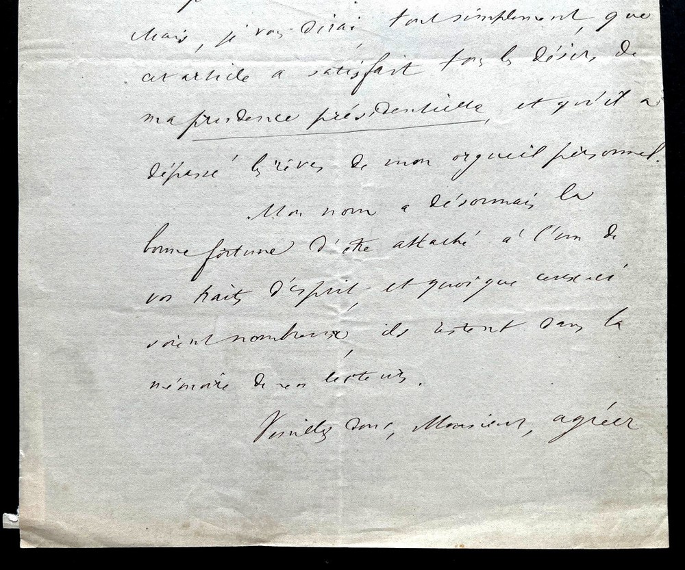 $ 22.42VEUILLOT Louis Belle LETTER AUTOGRAPH SIGNED, L'UNIVERS REDACTION Bluette Duel