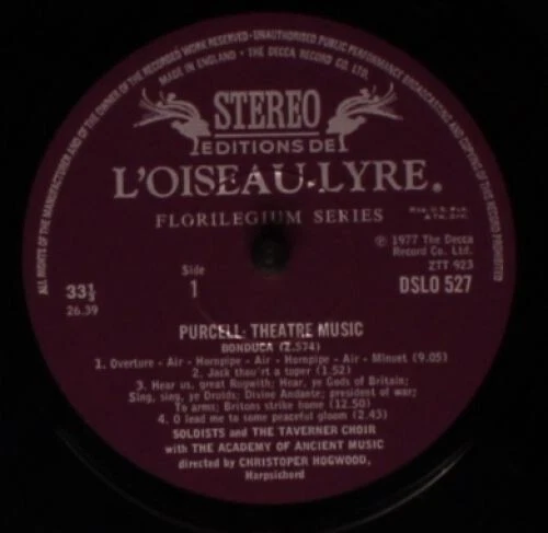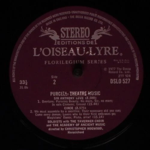 Henry Purcell - The Academy Of Ancient Music, Theatre Music Vol II (Bonduca • Sir Anthony Love • Circe), LP Comment(s) and Condition Notes specific to this listing: ***Record shows no obvious signs of wear. Cover is nice but may have small amount of writing or small sticker. *** Media Condition: Near Mint (NM or M-) Based on visual inspection. Album Cover / 7" Picture Sleeve (GENERIC = NONE) / CD Insert Condition: Very Good Plus (VG+) STOCK PHOTOS HAVE BEEN USED WITH LISTING: Photos shown have been pulled from an online database. A picture / company sleeve / CD insert in the photo does not guarantee it is included. If a picture sleeve / insert is included, its Condition will be filled in above this line. SPECIFICATIONS ARE AUTO-FILLED: If there is something specific you require, please ask us to confirm. Thank you for having a look at our collection! Be sure to follow us so you're notified when we post new items. IMPORTANT NOTE: A picture sleeve in the stock photo of a vinyl record does not guarantee a picture sleeve is included with this item. If the vinyl record sleeve condition specifies "Generic" THERE IS NO PICTURE SLEEVE (item will come in a company sleeve or plain sleeve.) Track List : . Bonduca (Z. 574) . Sir Anthony Love (Z. 588) . Circe (Z. 575) Catalog Number: DSLO 527 Notes on shipping: All items are packed carefully and shipped quickly. Domestic postage is included with the price. International customers buying multiple items: Please group items into a single order and hold payment until package weight/dimensions can be adjusted. Notes on Media Grading (visual inspection only): Mint: Only used for sealed items. Near Mint: As close to Mint condition as any used item can be. The media shows no obvious signs of wear. Part of an exceptional collection, curated with care, carefully handled, and properly stored. Very Good Plus: A minimal amount of storage or play wear, if present, will be superficial, difficult to see, and will not detract from sound quality. Very Good: Pronounced storage or play wear and, maybe, a few superficial scratches are present. There may be some noise during playback but no skips. Good Plus or Good: Significant noise can be expected on playback due to visible scratches and/or groove wear. LP Record Cover Grading: Mint: Only used for sealed items. Near Mint: Sharp spine with crisp edges. May have age-related (but minor) wear & tear. A very nice sleeve suitable for most collectors. Very Good Plus: Sleeve may have a small sticker or bit of writing but looks great. Minimal ring wear. Very Good: Acceptable cover but may have drill hole or cut corner. May have split sides, large sticker, or prominent ring wear. Good Plus: Obvious wear and tear. Minor to major flaws including sticker rash, doodles or other distracting writing, major ring wear, soft spine, or split sides. CD Insert Grading (Shown Above As Sleeve Grading): Mint: Only used for sealed items.