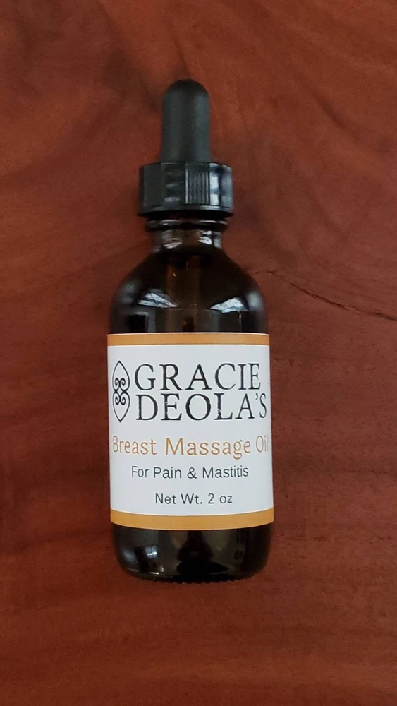 This Breast Massage Oil contains a proprietary blend of carefully selected herbs and oils that help stimulate, detoxify and decongest the lymphatic system while nourishing and protecting the breast tissue. This oil can be used to help alleviate breast pain, inflammation, clogged ducts, mastitis, and fibrocystic breast conditions. It is lightly scented with therapeutic essential oils which promote calm and lift the spirit. Directions: Warm a few drops in the palm of your hand and massage into your breasts with gentle circular motions. If breastfeeding, wipe off any excess oil before the baby's next feeding. Due to the handmade nature of the product and natural ingredients, there may be variations in color. Disclaimer: Statements on this site have not been evaluated by the FDA. Our products are not intended to diagnose, treat, cure or prevent any disease or illness. Thank you for visiting Gracie Deola's and thanks for your purchase.