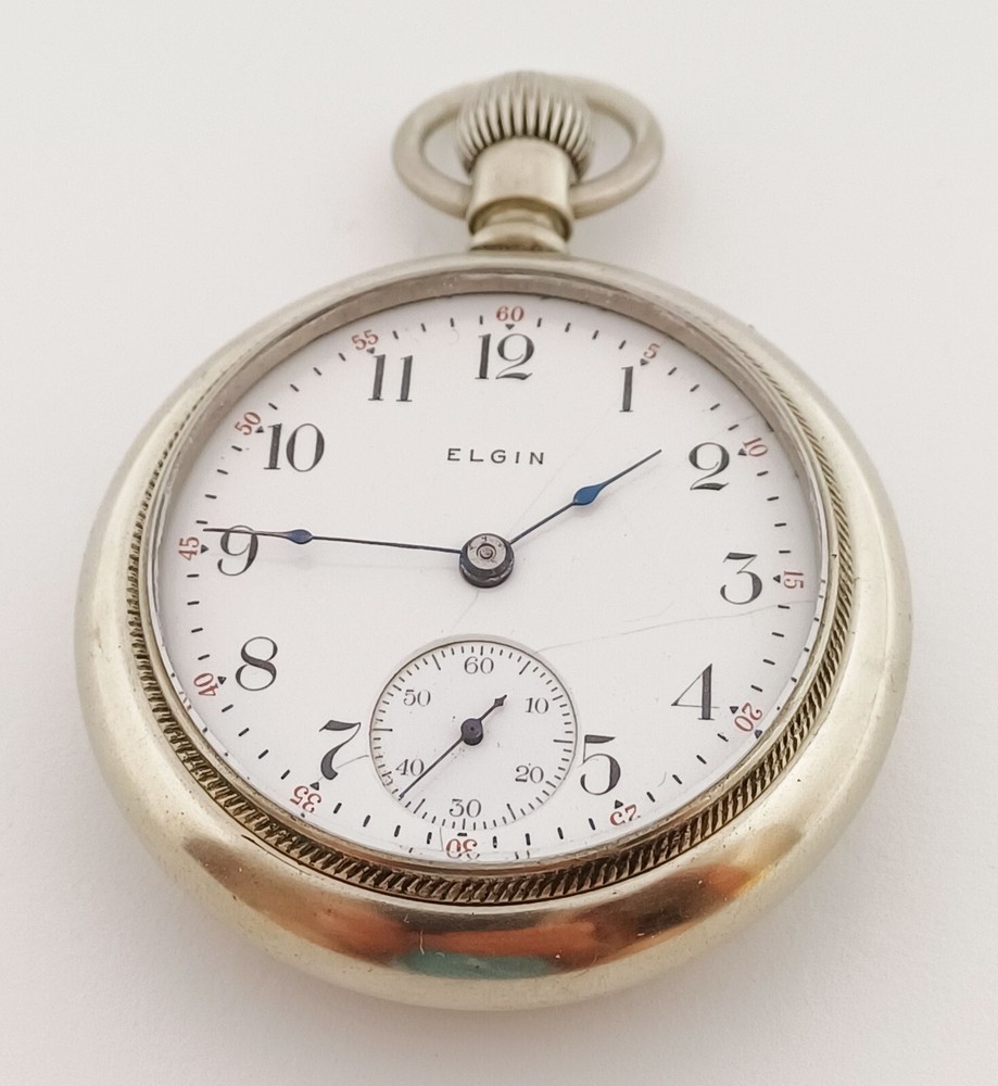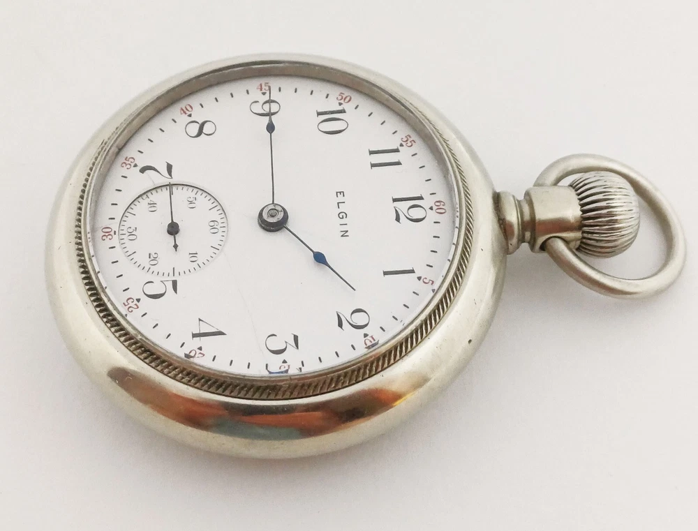 Elgin American Antique mechanical pocket watch Case size (without crown) - 58 mm Dial size - 46 mm Case thickness - 18 mm 100% original mechanical watch Please note the size of the watch. This is a rather large watch. The case diameter is 58 mm (2.32") For vintage watches, a movement error of approximately 5 minutes per day is allowed. This difference is due to the fact that in a mechanically wound watch, the parts are subject to wear and tear, which affects the accuracy of the movement. Owners of vintage watches usually accept such an error, as the historical and aesthetic value of the watch is more important to them than absolute accuracy. The watch has been serviced by a watchmaker and is in excellent working condition. Shipping Items are shipped worldwide by airmail with a tracking number. Delivery period US, Europe - 10-15 business days Australia, New Zealand - 20-30 business days Other countries - 10-20 business days