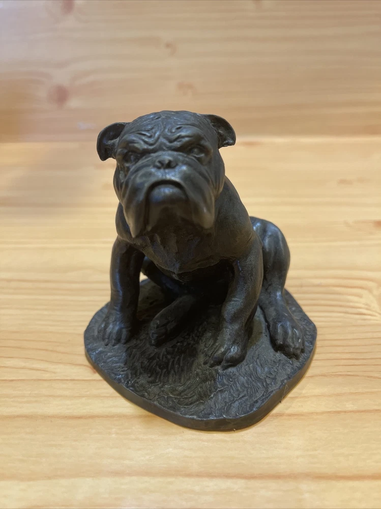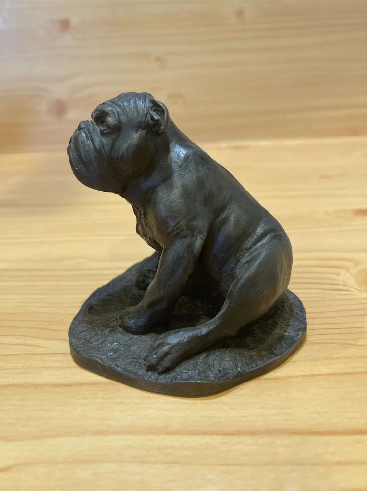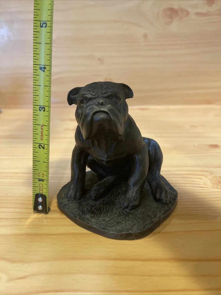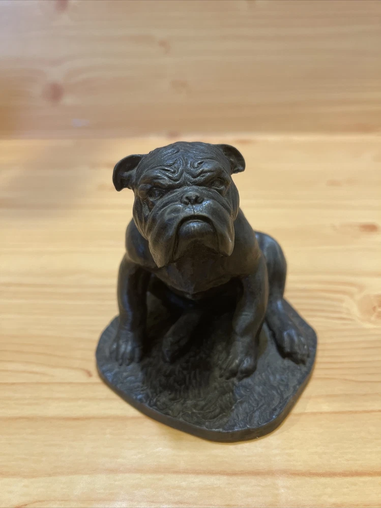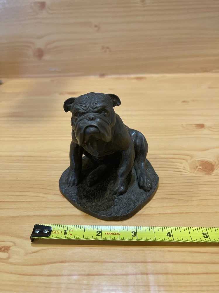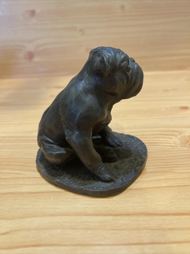 Heredities Bulldog Figurine by Jean Spouse, Cold Cast Bronze Resin. Heredities sculpture of a bulldog. very good quality and lifelike features. figurine / statue / sculpture. The statue measures almost 3.5" tall, and approximately 3 1/4" wide and 3 3/4" deep. Weighs almost 12.5 oz. It is vintage item in excellent condition.