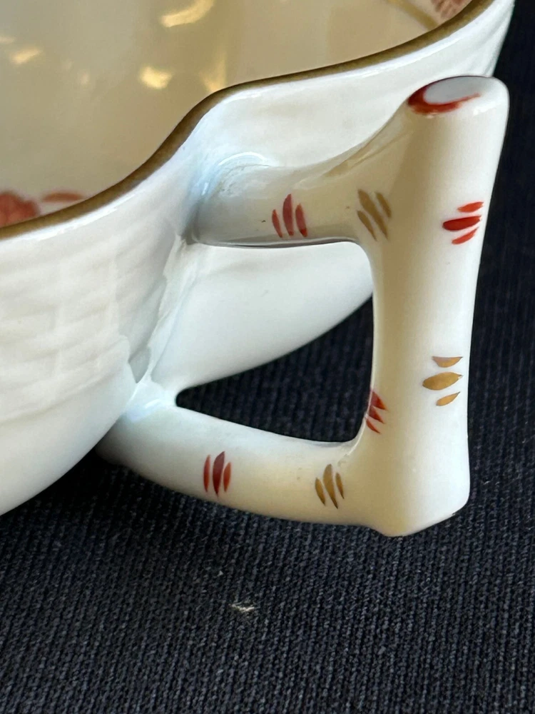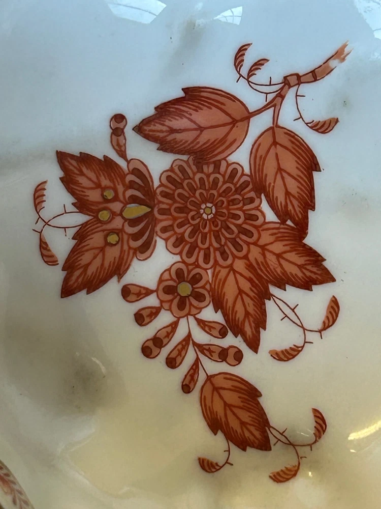 Brick House Antiques of Lewisburg, WV is pleased to offer a Herend Porcelain Lead Dish Small leaf shaped dish with handpainted orange and gold decoration. Basket weave texture on outside rim. Great as a display piece. BUYER PAYS SHIPPING AND HANDLING. WE COMBINE SHIPPING. Local pick up is always welcome!