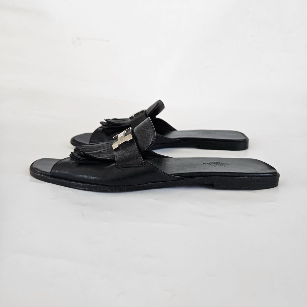 bopf Visit thebusinessofprelovedfashion store to see all the catalogue ABOUT US CUSTOMER FEEDBACK CONTACT US Hermès Auteiul sandal in goatskin with fringe detail check_circle Handling Time: 4 days check_circle Additional custom duties may apply check_circle 100% Authentic Hermes Auteiul sandal in goatskin with fringe detail and palladium plated signature "H" detail. Attributes Material : Leather Color : Black Size: 38.5 Condition Desc. : Gently used, tarnished hardware, scuffed on side Inclusions: bopf packaging About This Item Style: Sunglasses Department: women Upper Material: Leather Brand: Hermès US Shoe Size: 38.5 Color: Black How we list items 1. METICULOUS INHOUSE AUTHENTICATION PROCESS Our in-house luxury consignment experts offer a combined experience of over 8 years in the fashion resale industry enabling them to carefully inspect all items listed online to ensure they are authentic 2. VERIFY AUTHENTICITY USING ENTRUPY AI TOOL We use Entrupy: The world's first and only on-demand authentication solution for high-value goods as an additional layer of authenticity ventication. 3. THIRD PARTY PROFESSIONAL AUTHENTICATION SERVICES We use Entrupy: The world's first and only on-demand authentication solution for high-value goods as an additional layer of authenticity ventication. Customers with frequent return orders will incur a restocking fee of 30$ per order. This policy helps cover administrative costs es thoughtful purchases. About the Seller Shipping Policy Description Payment Policy Description Return Policy Description Welcome to The Business of Preloved Fashion (BOPF) – your trusted source for authentic, preloved luxury fashion. Founded in Dubai in 2021 by Hadiza Ibekwe, who brings over 10 years of experience in luxury resale, BOPF is committed to making luxury fashion more accessible and sustainable. Why Shop With Us? Authenticity Guaranteed: Every item is carefully inspected and authenticated by our experts. New Treasures Weekly: Our collection is updated weekly with carefully curated preloved designer pieces, including preloved bags, clothing, shoes , accessories and jewelry. Luxury for Less: Find high-end designer items at a fraction of their original prices. Quick Shipping: Enjoy fast, reliable shipping with every purchase. Sustainable Fashion: Join us in promoting a more sustainable fashion future by choosing preloved. Have questions? Reach out via eBay messaging – we're readily available! • We will use DHL courier for safe and fast delivery. • Import duties, taxes and charges are the buyer's responsibility. Please check with your country's customs office to determine what these additional costs will be prior to bidding or buying. • We accept only online payment method. • We accept payment by PayPal and Credit / Debit cards entered on eBay only. Customers with frequent return orders will incur a restocking fee of 30$ per order. This policy helps cover administrative costs and encourage thoughtful purchases.