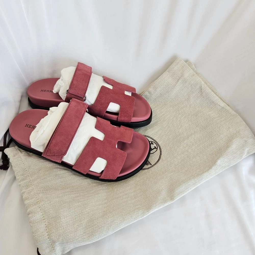 bopf Visit thebusinessofprelovedfashion store to see all the catalogue ABOUT US CUSTOMER FEEDBACK CONTACT US Hermès Chypre Pink Suede Sandals, 36 check_circle Handling Time: 4 days check_circle Additional custom duties may apply check_circle 100% Authentic Hermes Chypre Pink Suede Sandals These chypre sandale Hermes are a must-have in your closet. The iconic H cut-out will add a signature finish to your look. Make it yours today to compliment all your casual looks in the most luxurious way. Attributes Material : Suede Color : Pink Condition Desc. : Brand new Size : 36 Inclusions: Dust bag About This Item Style: Sunglasses Department: women Upper Material: Suede Brand: Hermès US Shoe Size: 36 Color: Pink How we list items 1. METICULOUS INHOUSE AUTHENTICATION PROCESS Our in-house luxury consignment experts offer a combined experience of over 8 years in the fashion resale industry enabling them to carefully inspect all items listed online to ensure they are authentic 2. VERIFY AUTHENTICITY USING ENTRUPY AI TOOL We use Entrupy: The world's first and only on-demand authentication solution for high-value goods as an additional layer of authenticity ventication. 3. THIRD PARTY PROFESSIONAL AUTHENTICATION SERVICES We use Entrupy: The world's first and only on-demand authentication solution for high-value goods as an additional layer of authenticity ventication. Customers with frequent return orders will incur a restocking fee of 30$ per order. This policy helps cover administrative costs es thoughtful purchases. About the Seller Shipping Policy Description Payment Policy Description Return Policy Description Welcome to The Business of Preloved Fashion (BOPF) – your trusted source for authentic, preloved luxury fashion. Founded in Dubai in 2021 by Hadiza Ibekwe, who brings over 10 years of experience in luxury resale, BOPF is committed to making luxury fashion more accessible and sustainable. Why Shop With Us? Authenticity Guaranteed: Every item is carefully inspected and authenticated by our experts. New Treasures Weekly: Our collection is updated weekly with carefully curated preloved designer pieces, including preloved bags, clothing, shoes , accessories and jewelry. Luxury for Less: Find high-end designer items at a fraction of their original prices. Quick Shipping: Enjoy fast, reliable shipping with every purchase. Sustainable Fashion: Join us in promoting a more sustainable fashion future by choosing preloved. Have questions? Reach out via eBay messaging – we're readily available! • We will use DHL courier for safe and fast delivery. • Import duties, taxes and charges are the buyer's responsibility. Please check with your country's customs office to determine what these additional costs will be prior to bidding or buying. • We accept only online payment method. • We accept payment by PayPal and Credit / Debit cards entered on eBay only. Customers with frequent return orders will incur a restocking fee of 30$ per order. This policy helps cover administrative costs and encourage thoughtful purchases.
