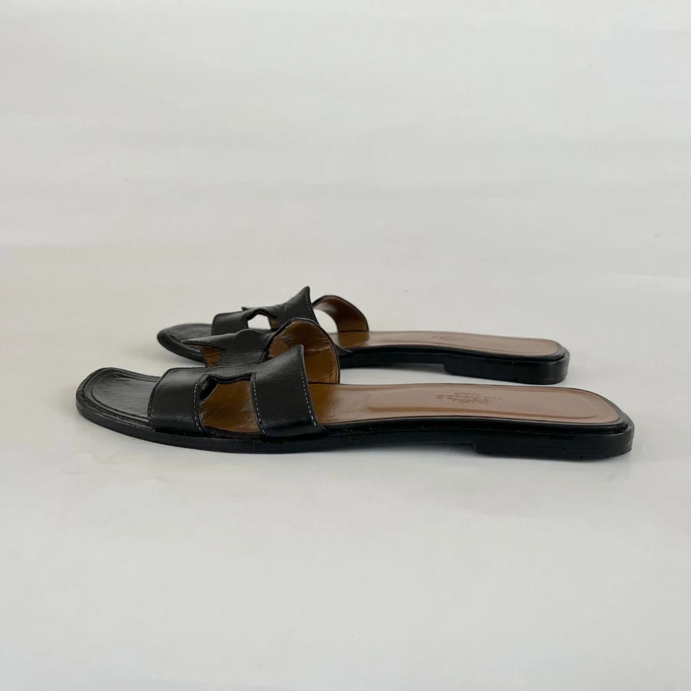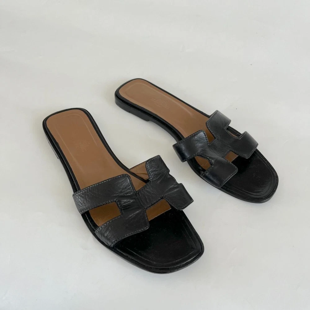 bopf Visit thebusinessofprelovedfashion store to see all the catalogue ABOUT US CUSTOMER FEEDBACK CONTACT US Hermès black leather classic oran sandals, size 38.5 check_circle Handling Time: 4 days check_circle Additional custom duties may apply check_circle 100% Authentic Hermes black leather classic oran sandals Attributes Material : Leather Color : Black Condition Desc. : Very good; creases on leather Size : 38.5 Inclusions: dust bag About This Item Style: Sunglasses Department: women Upper Material: Leather Brand: Hermès US Shoe Size: 38.5 Color: Black How we list items 1. METICULOUS INHOUSE AUTHENTICATION PROCESS Our in-house luxury consignment experts offer a combined experience of over 8 years in the fashion resale industry enabling them to carefully inspect all items listed online to ensure they are authentic 2. VERIFY AUTHENTICITY USING ENTRUPY AI TOOL We use Entrupy: The world's first and only on-demand authentication solution for high-value goods as an additional layer of authenticity ventication. 3. THIRD PARTY PROFESSIONAL AUTHENTICATION SERVICES We use Entrupy: The world's first and only on-demand authentication solution for high-value goods as an additional layer of authenticity ventication. Customers with frequent return orders will incur a restocking fee of 30$ per order. This policy helps cover administrative costs es thoughtful purchases. About the Seller Shipping Policy Description Payment Policy Description Return Policy Description Welcome to The Business of Preloved Fashion (BOPF) – your trusted source for authentic, preloved luxury fashion. Founded in Dubai in 2021 by Hadiza Ibekwe, who brings over 10 years of experience in luxury resale, BOPF is committed to making luxury fashion more accessible and sustainable. Why Shop With Us? Authenticity Guaranteed: Every item is carefully inspected and authenticated by our experts. New Treasures Weekly: Our collection is updated weekly with carefully curated preloved designer pieces, including preloved bags, clothing, shoes , accessories and jewelry. Luxury for Less: Find high-end designer items at a fraction of their original prices. Quick Shipping: Enjoy fast, reliable shipping with every purchase. Sustainable Fashion: Join us in promoting a more sustainable fashion future by choosing preloved. Have questions? Reach out via eBay messaging – we're readily available! • We will use DHL courier for safe and fast delivery. • Import duties, taxes and charges are the buyer's responsibility. Please check with your country's customs office to determine what these additional costs will be prior to bidding or buying. • We accept only online payment method. • We accept payment by PayPal and Credit / Debit cards entered on eBay only. Customers with frequent return orders will incur a restocking fee of 30$ per order. This policy helps cover administrative costs and encourage thoughtful purchases.