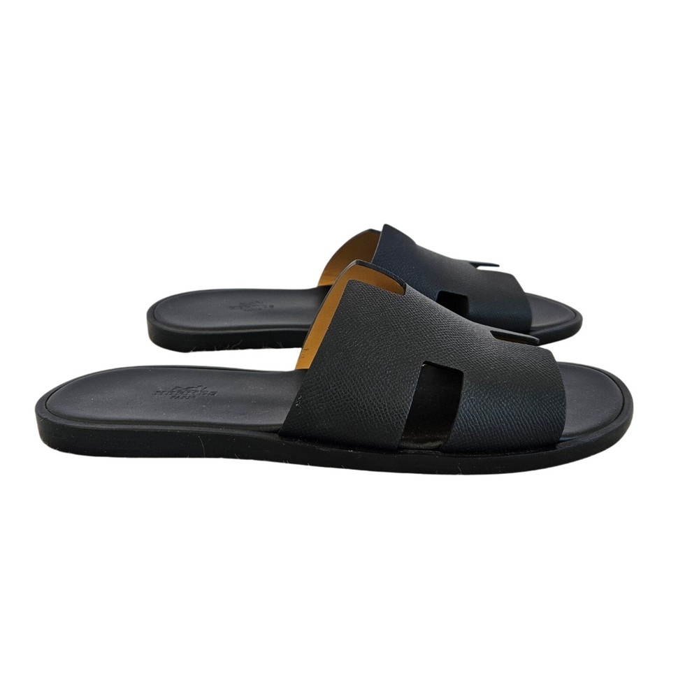 Hermes Black Leather Izmir Flat Sandal, 43 Attributes Material : Leather Color : Black Condition Desc. : Like New Size : 43