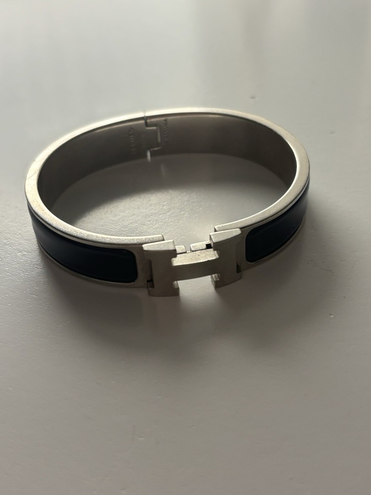 Main Stone Color:BlackMain Stone Creation:UnknownBase Metal:Stainless SteelShape:RoundColor:NavyStyle:Bangle, CuffSecondary Stone:No StoneMain Stone:No StoneNumber of Gemstones:0Country of Origin:FranceVintage:YesCharm Type:LocketTheme:BeautyBrand:HERMÈSMaterial:EnamelMain Stone Shape:noneCut Grade:ExcellentType:BraceletMetal:SilverClosure:TurnlockCustomized:No