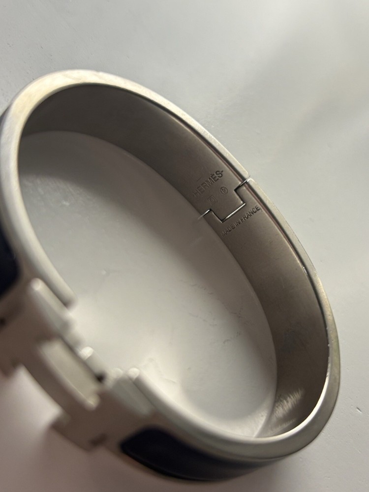 This Hermes Clic H Bracelet is absolutely stunning! The navy and silver combo is so elegant and versatile—it pairs perfectly with both casual and dressy outfits. The craftsmanship is top-notch, and the iconic H clasp adds a luxurious touch. It’s comfortable to wear all day and feels like a timeless piece. Definitely worth the splurge!