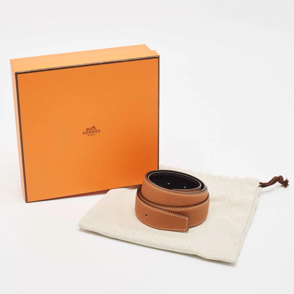 Upgrade your style with this Hermès belt strap in Gold and Noir. Made from premium Togo and Box leather, this reversible strap offers a luxe touch to any outfit.Certified by The Luxury Closet - This item has gone through a detailed authentication process overseen by our experts. We offer a lifetime guarantee of authenticity on all our items. Import duties, taxes and charges are not included in the item price. These charges are the buyers responsibility. Please check with your country’s customs office to determine what these additional cost will be prior to buying. Our eBay Store About Us Contact Us Add to Favorite Sellers Hermes Gold/Noir Togo and Box Leather Reversible Belt Strap 90 CM $503.8 Upgrade your style with this Hermès belt strap in Gold and Noir. Made from premium Togo and Box leather, this reversible strap offers a luxe touch to any outfit. Product Details Brand Color Brown Dimensions Width: 3 cm, Length: 90 cm Material Leather Size 90 CM Outsole Width Outsole Length Heel Height Includes Original Dustbag, Original Box Certified by The Luxury Closet This item has gone through a detailed authentication process overseen by our experts. We offer a lifetime guarantee of authenticity on all our items. How We Check The in-house team of experts at The Luxury Closet is highly trained to verify the authenticity and the condition of the luxury products. They ensure that only 100% authentic items are put on sale.The evaluation process is unique with its own mix of assessment criteria and differs according to the category. Each item is evaluated based on the following combination of hallmarks, hardware, stitching, symmetry, material, craftsmanship, stamping, codes, hologram stickers, and packaging. Our authenticators also check if the items have been modified or amended (e.g., aftermarket diamonds, replaced batteries, repaired bags, etc.) International Buyers Import duties, taxes and charges are not included in the item price. These charges are the buyers responsibility. Please check with your country’s customs office to determine what these additional cost will be prior to buying.
