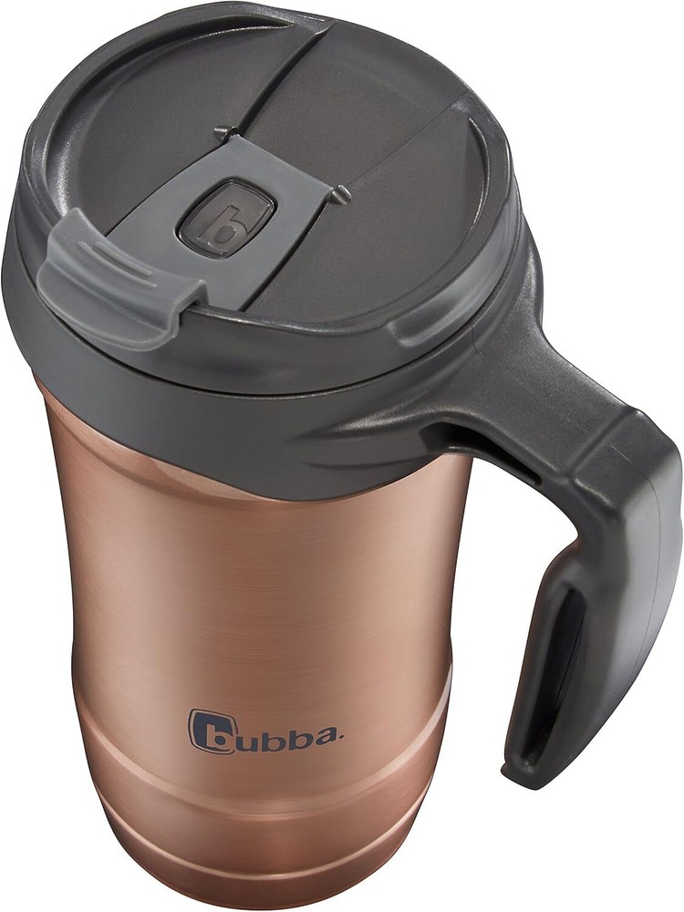 Bubba Hero Stainless Steel Travel Mug with Handle, 18 oz., Rose Gold Item Description About this item Drinks stay hot up to 6 hours or cold up to 24 thanks to dual-wall vacuum-insulated stainless steel Lid designed for a perfect-flow drinking experience and includes a lock to prevent leaks Silicone base keeps mug from sliding across hard surfaces or clanking against metal Top-rack dishwasher-safe; not for use in microwave › See more product details Save your workday from cold coffee with the bubba Hero Dual-Wall Vacuum-Insulated Stainless Steel Travel Mug, 18 oz. Your drink stays hot up to 6 hours or cold up to 24 thanks to vacuum-insulated stainless steel, perfect in case you get stuck in a meeting and can't get back to your beverage. Sip from the leak-proof lid just by flipping up the locking flap, and snap it shut when you're finished to lock in the heat. A silicone base keeps the travel mug from sliding across your desk. When you're on the move, grab the comfortable handle and go! With the Hero Dual-Wall Vacuum-Insulated Stainless Steel Travel Mug, you're ready to get a handle on your day. Payment Fast and Free Shipping Shipping safe payment via eBay . Return 30 Day's returns