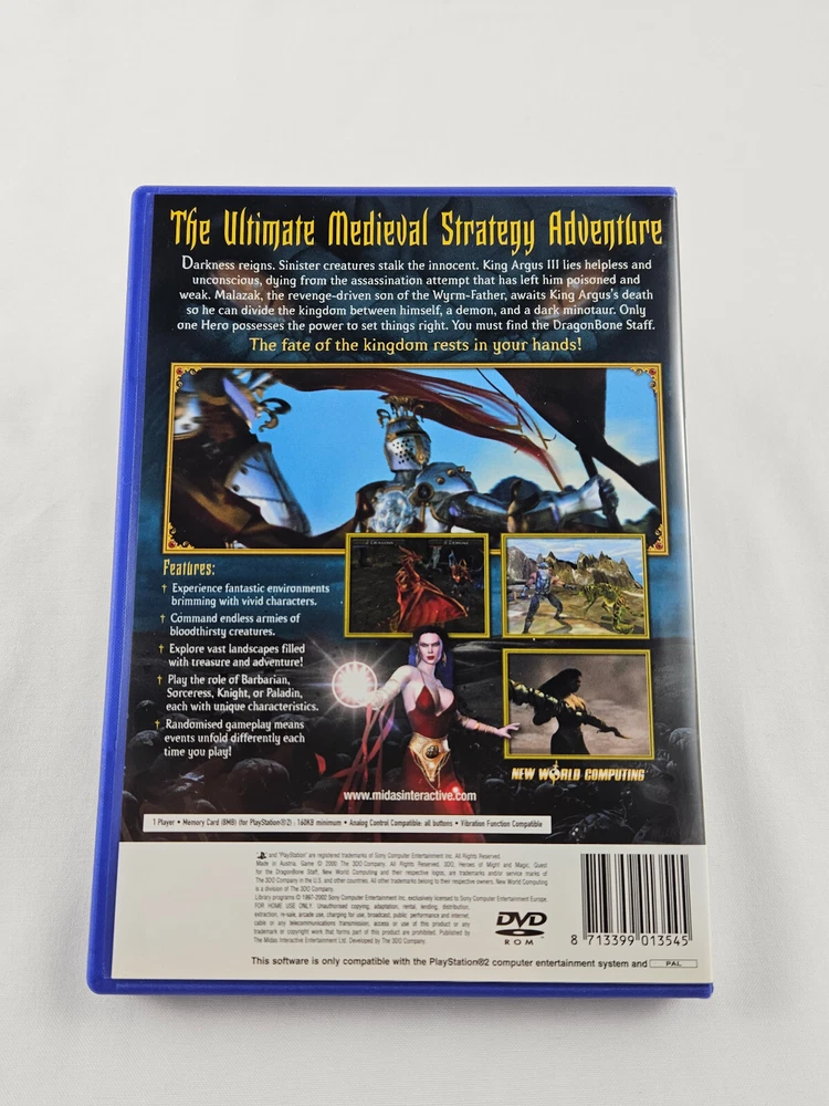 Heroes Of Might And Magic Picture #5 is of the playing side of the disc. Photo's are actual pictures of the item that you will receive. We work hard to bring you the best quality games to add to your collection. If you would like any more pictures or more details, contact us, we are here to help you with any questions you have. We have plenty more PS2 games in our store, check it out, stock is limited. Express postage available at the checkout. Orders are posted Monday through to Friday, same day shipping for orders placed before 8am. Orders placed after 8am will be posted on the next business day. Our premium service includes fast shipping, a new case & superior packaging to ensure safe delivery. How We Package Your Order To Ensure Safe Delivery: 1. A piece of bubble wrap is placed inside the case to prevent the game disc from coming loose in transit. 2. The game is then placed in a water-proof poly bag to prevent any water damage in transit. 3. The poly bag is sealed and placed into a bubble-padded envelope for extra padding. Photos are for illustration purposes only, to demonstrate our premium shipping service.
