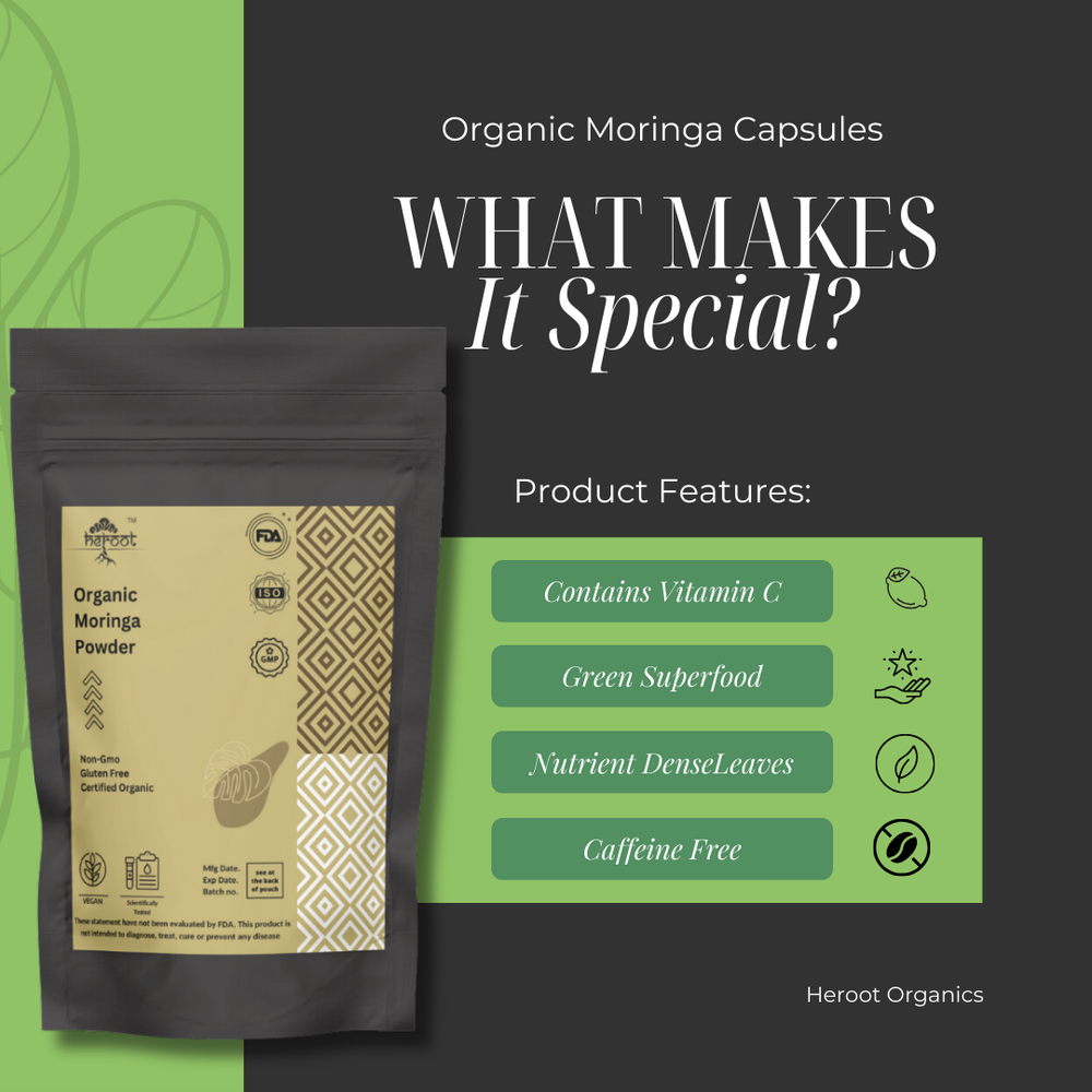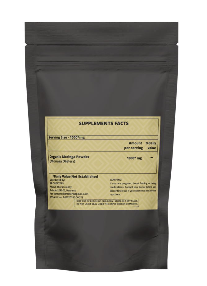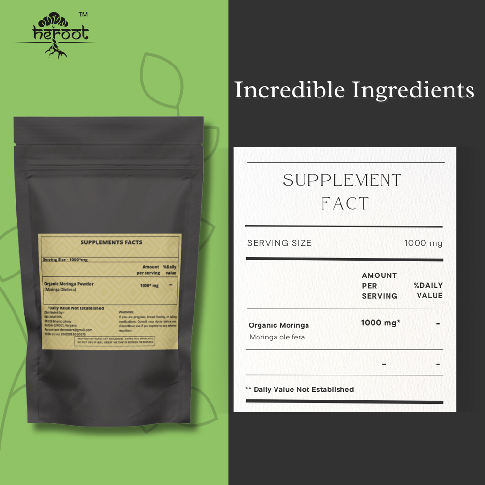Heroot Organic Moringa powder Moringa powder is Contains Organic Leaf Powder of Moringa oleifera (Sahijan) . The powder is produced by harvesting, drying then milling the the leaves of Moringa oleifera considered one of the most complete, nutrientdense plants on Earth. Its leaves have been eaten for thousands of years as a Superfood nutritional supplement. Key Ingredients: Organic Moringa Powder Key Benefits: It can help regulate hormone levels in the body It can help slow down ageing It helps increase digestive strength It protects and nourishes the skin It can support brain and heart health Directions For Use: As a dietary supplement, take one spoon per day with water or as recommended by your healthcare provider. Safety Information: Store in a cool dry place Keep out of reach of children If you are pregnant or lactating or prone to any food allergy or under any medical condition consult your healthcare practitioner before use Disclaimer The above description is for information and knowledge purpose, not a healthcare professional advice. Please consult your doctor and/or pharmacist before you take this vitamin. Pregnant or lactating women, diabetics, hypoglycemics, and people with known medical conditions and/or taking drugs, should consult with a licensed physician and/or pharmacist prior to starting any supplementation program. The above statements have not been evaluated by the Food & Drug Administration. Shipping and Handling Shipping time will be 1 business day after the cleared payment We will ship by Indian Post service Shipment will take 15-30 days. Few more days for your local customs delay and formalities. For Express service additional charges will be applied. For any reason you wish to leave Negative or neutral feedback, Please contact us first and let us mutually resolve it. We care for your satisfaction and will make sure that you are happy with the transaction to post us 5**** ratings in all areas. ***Customs Information*** Heroot will not be liable for packages refused or held by customs for delivery. We request that you contact customs office and ask about import regulations and restrictions before placing your order. It is importsnt for you to become familiar with customs policies for your specific country before ordering. Customs regulations differ by country and not knowing their regulations can result in your order incurring high import duties, the delivery being delayed or even returned. Please check with your customs office to see if your country permits the shipment of the products you are planning to order from us and if any additional licenses or permits are needed. Please note: if your order is returned to us due to banned/ restricted products policy, a wrong address, refusal to pay customs fees, refusal to accept the order or because no one was there to accept the delivery of your order, we will refund your order as follow: you will be refunded the total amount of the order, minus the original shipping charge.
