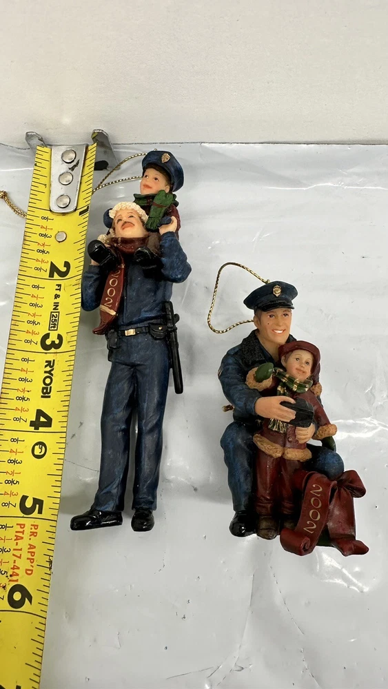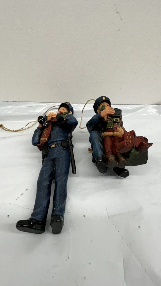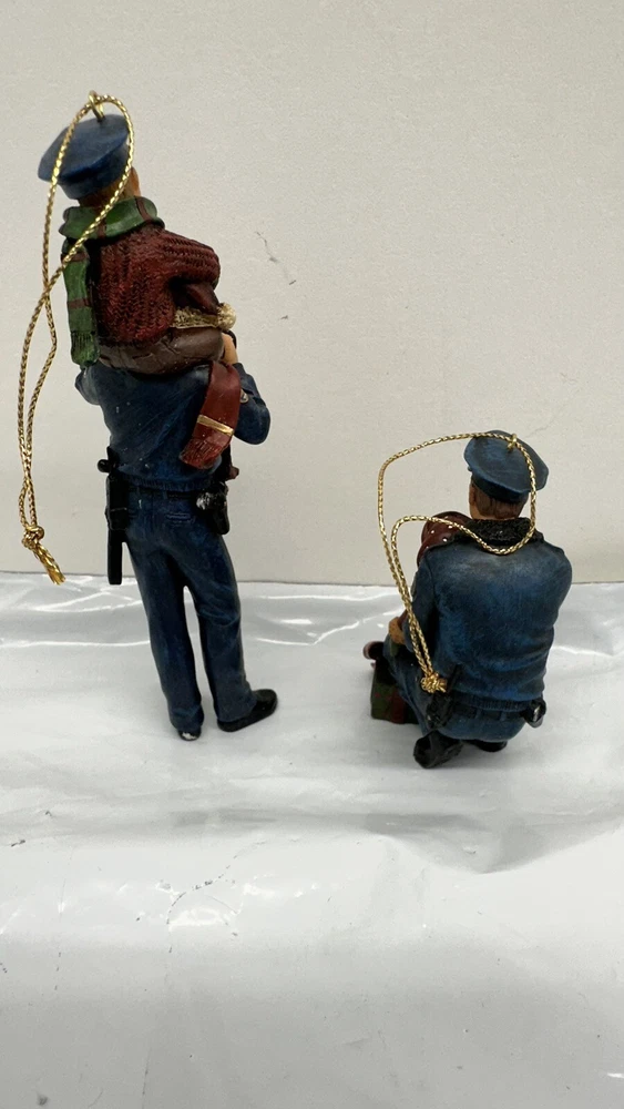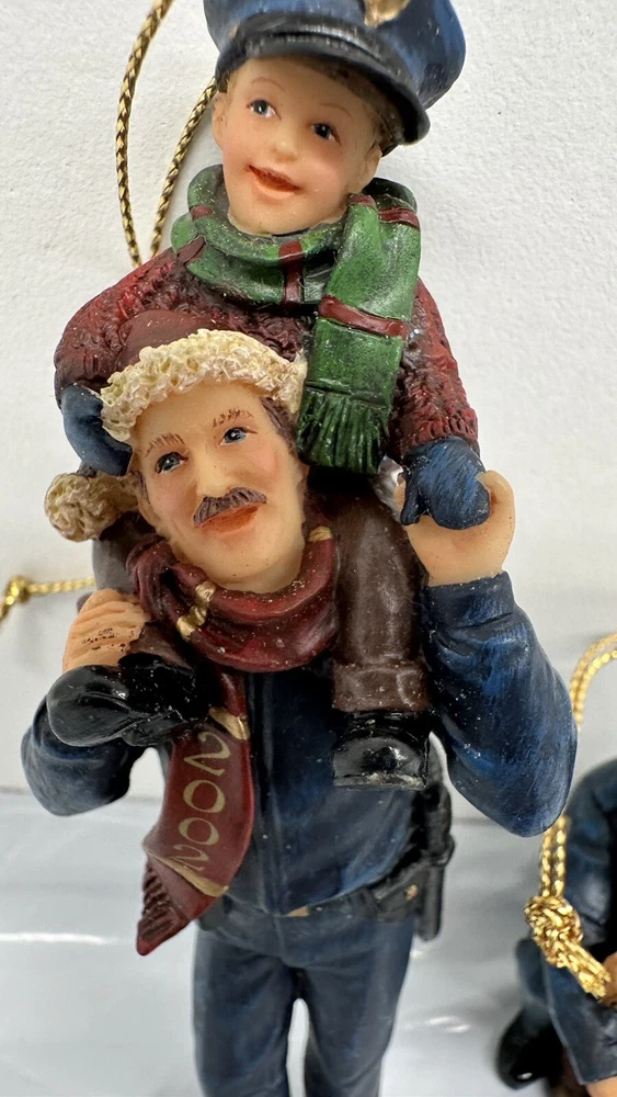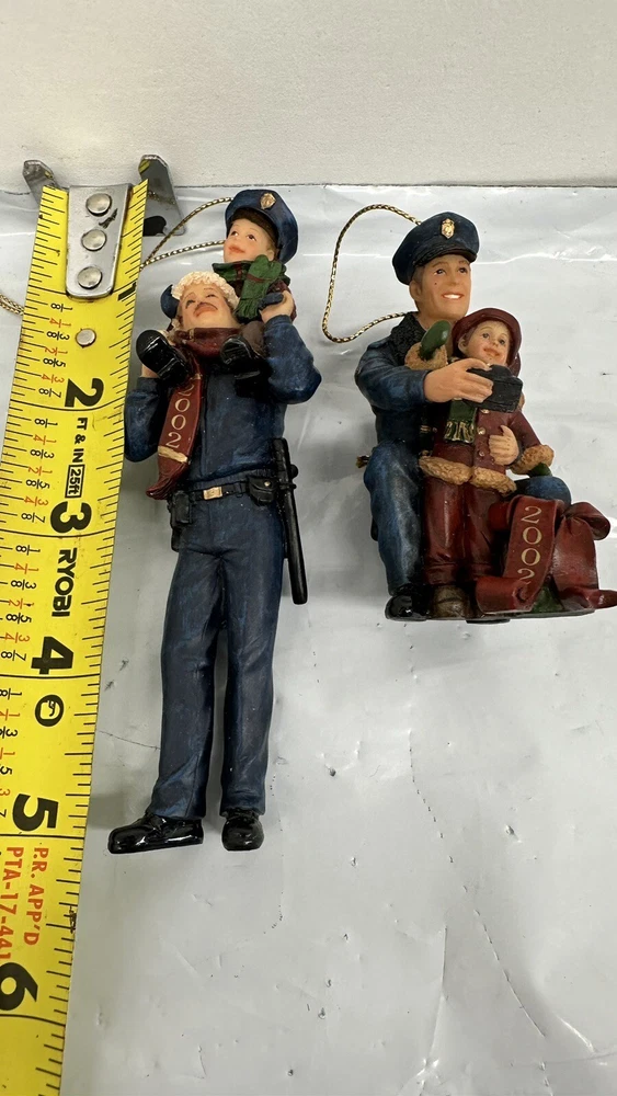 Add some heroism to your Christmas decorations with these 2002 Policeman with Little Boy Christmas Ornaments. This lot of 2 ornaments features plastic figurines of police officers and little boys as a 9/11 tribute. These ornaments are perfect for boys and collectors who love heroes and ornaments. The ornaments come from the Ornaments Collection and belong to the Decorative Collectibles category. They are suitable for Christmas decorations and other occasions. The ornaments are in good shape and can be a perfect addition to your collection.