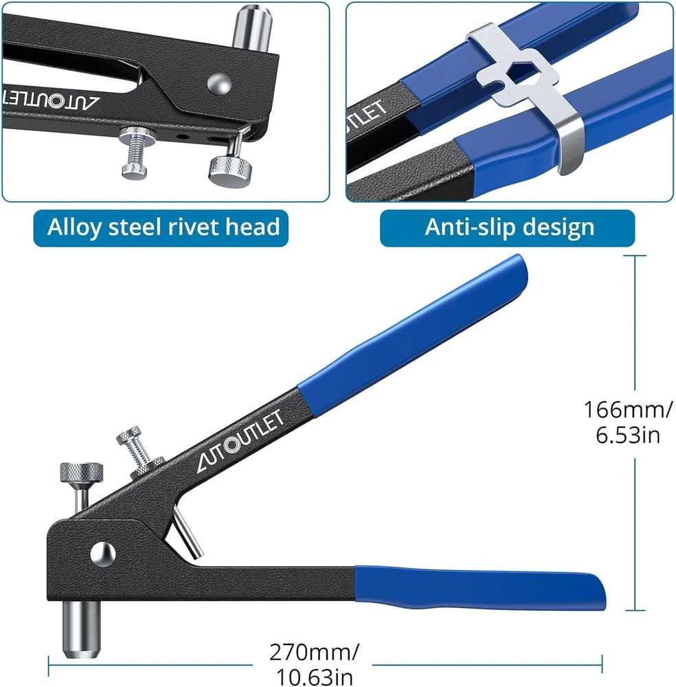 【Professional Rivet Gun】This 86 pcs rivet gun kit is suitable to be used in car, machine, trailers, and furniture repair, or even boat building. 【Complete Accessories】This rivet nut kit comes with 5 mandrels: M3/M4/M5/M6/M8, and 80 pcs rivet nuts: 20*M3, 20*M4, 20*M5, 10*M6, 10*M8. Meet your various needs. 【Apply for Alloy Nut and Iron Nut】The metric rivet tool does not apply for steel nut. Just for alloy nut(M3, M4, M5, M6, M8) and iron nut(M3, M4, M5, M6). 【Labor-saving Design】The robust, ergonomic rivnut tool is made of steel with non-slip handle. Wrench to hold handles and adjust mandrels is included in package. 【Portable Packing Storage Case】The functional rivnut tool kit is equipped with a sturdy carry case, easy to carry everywhere.
