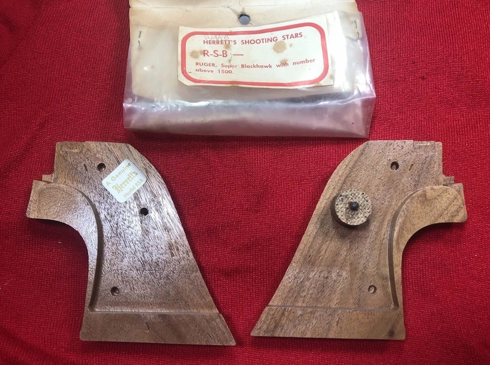 The product is a pair of Herrett Genuine Walnut stocks designed for a Ruger Super Blackhawk handgun in .44 Magnum caliber. The stocks are in a brown color and come in their original packaging. Made in the United States, these handgun stocks are crafted by Herrett, a reputable brand known for producing high-quality gun accessories. Perfect for enhancing the grip and aesthetics of the Ruger Super Blackhawk, these walnut stocks are a stylish and functional upgrade for any handgun enthusiast.