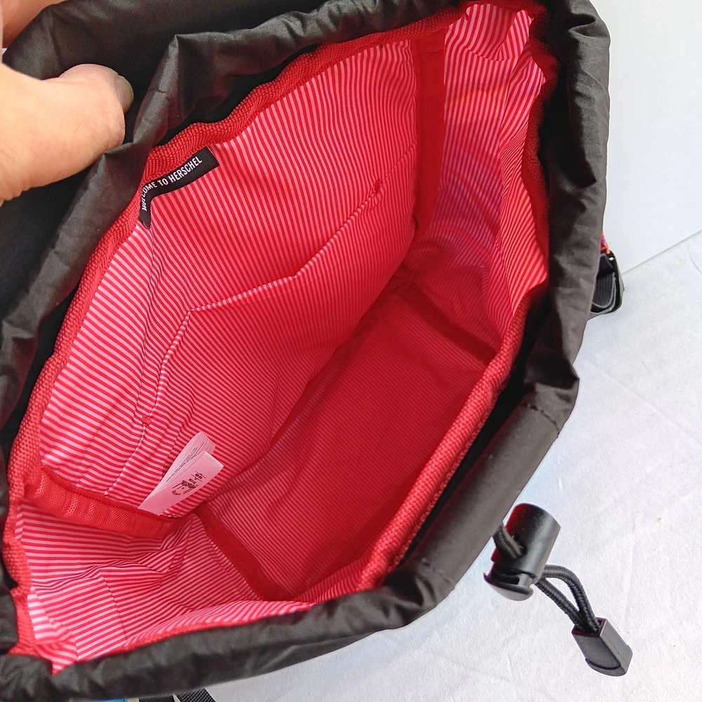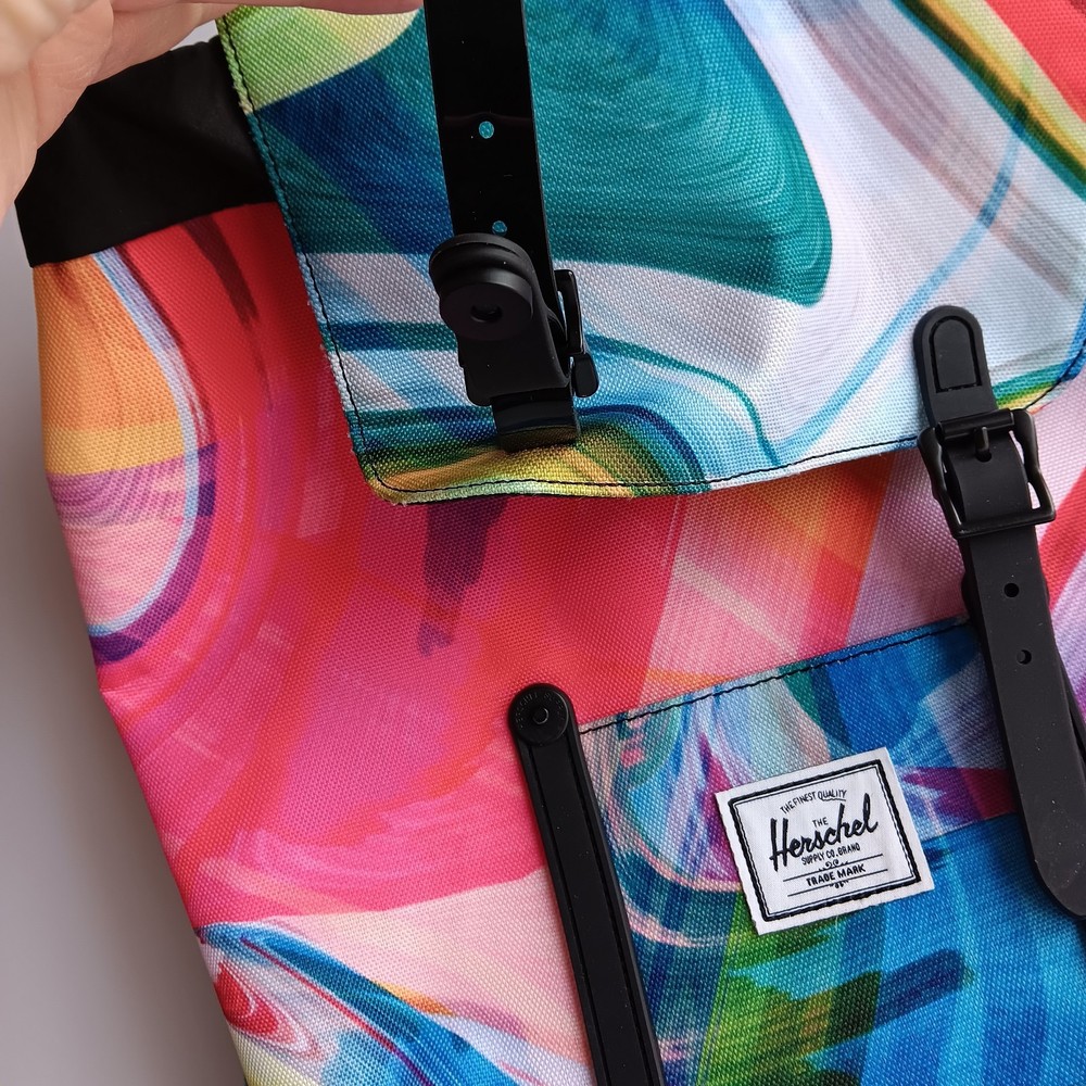 Love this Herschel backpack—stylish, durable, and perfect for daily use or travel! The vibrant paint pour design turns heads, while the drawstring and snap closure keeps everything secure. Two spacious pockets hold all my essentials without clutter. Easy to clean and built to last, it’s a must-have for anyone who wants both fashion and function. Highly recommend!