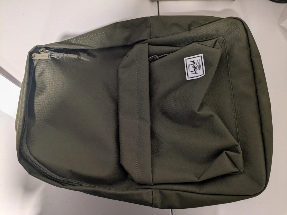 The Herschel classic backpack in Ivy Green is a timeless addition to any wardrobe. This standard size bag features a solid pattern with a zip closure, made from durable Otter material. The backpack has a classic design with a modern twist, perfect for everyday use. The canvas, cotton, and fabric lining provides comfort and durability, while the polyester and nylon handle/strap materials ensure easy carrying. Whether you're heading to school, work, or on a weekend adventure, this Herschel backpack is both stylish and functional. Get yours now with fast shipping!