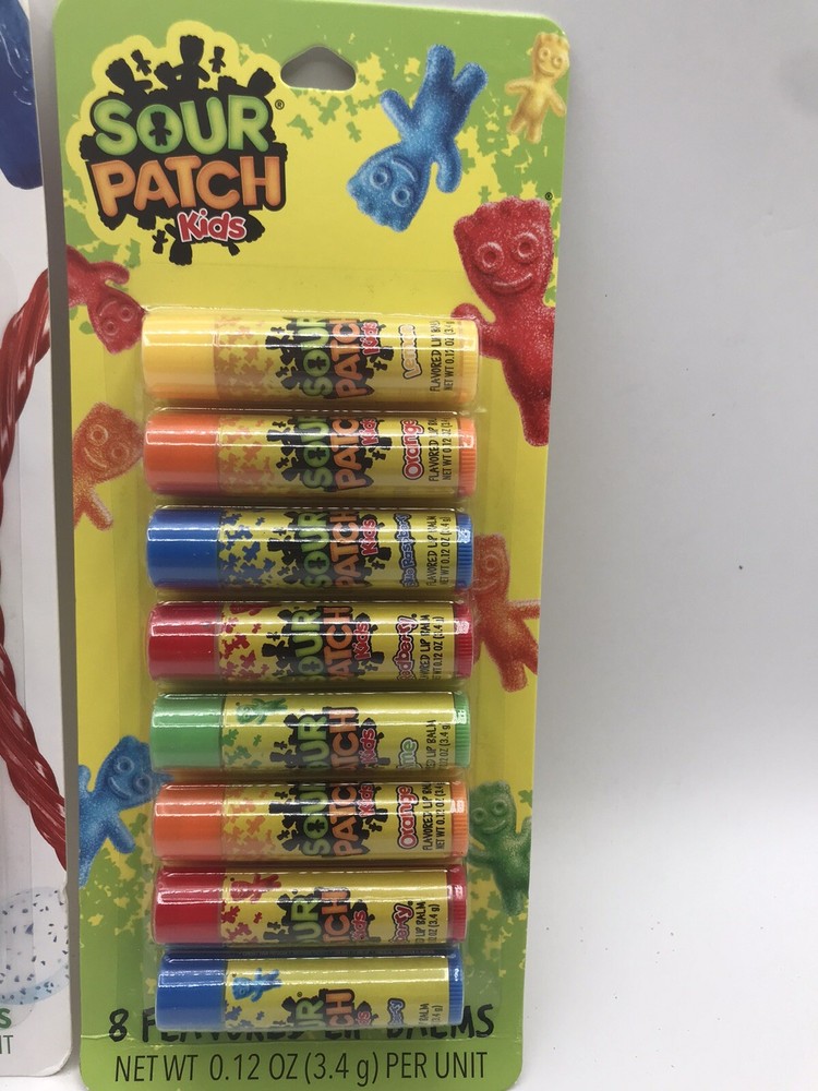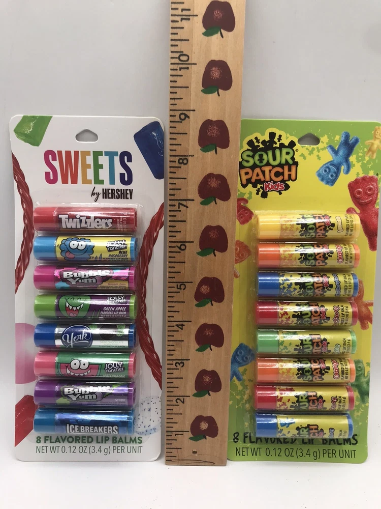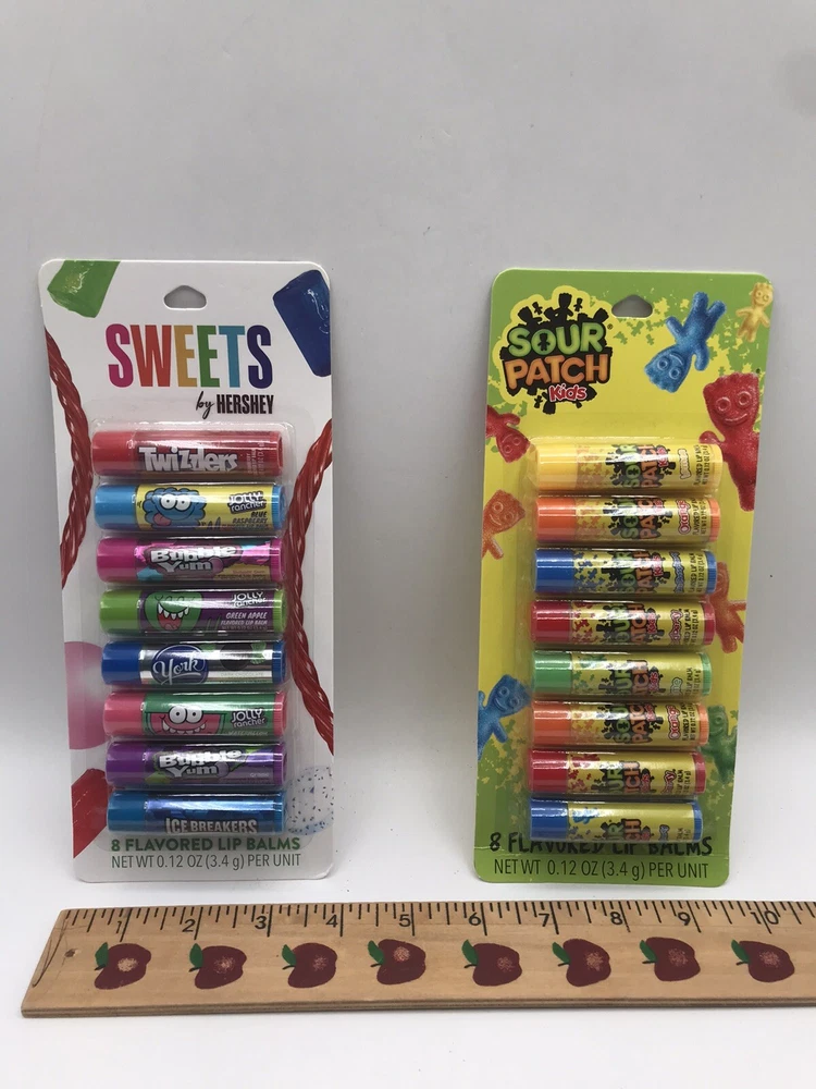 NEW Lot of 2 Flavored Lip Balm 8 Ct Sets ~ Hershey Sweets and Sour Patch Kids. New in original package. No return on this item.
