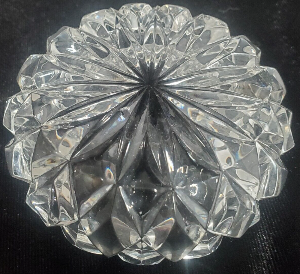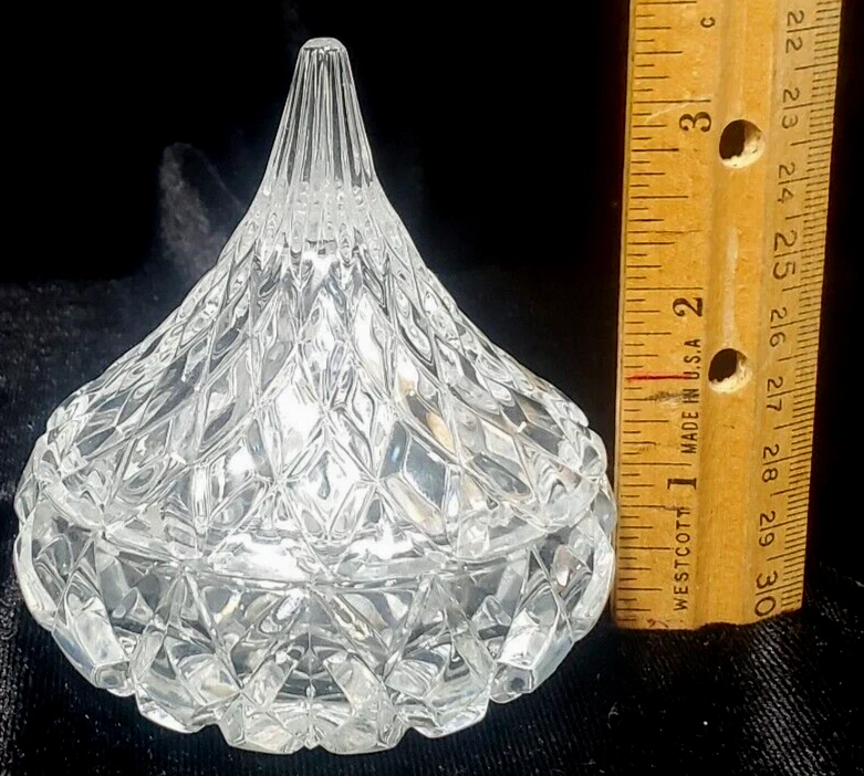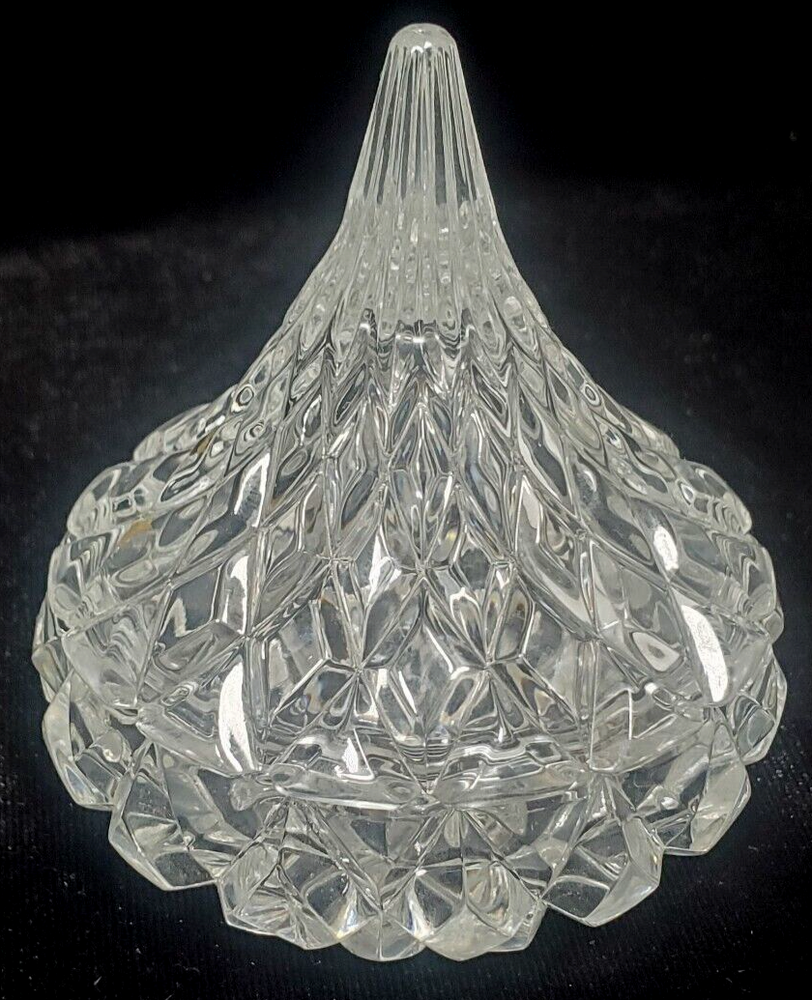 Hershey's Kiss Hfc or Leaded Cut Crystal Trinket Candy Dish with Lid 3.5" tall. Great vintage condition. Multiple possibilities of original manufacture are possible. I am not certified to make a decision on which production line made this, from my internet search. Please see pictures for a full description of physical condition. No chips or cracks. I do not see any scratches but minor flaws and imperfections are possible. Hi and welcome to my store. I always strive to offer the highest quality vintage, new, used or unique items I can find. Much of my inventory has been previously used. I always try to find the most gently used items I can find but this does mean that minor imperfections may be present. I will always try and put these imperfections in the item description. Please use the pictures as a guide to the item's condition. Be aware that due to camera limitations minor differences in color can occur. If you ever have any problems or issues with an item that you have purchased please do not hesitate to reach out to me so I can correct or address the situation. I always try and respond to or accommodate all questions about items I am selling. I will offer the fastest and safest shipping with care that I am able to. As a small reminder. I am a small one person business. I do my best to research all prices on the items I am selling. I always take condition into consideration when pricing. In most cases I welcome offers on merchandise. Please be considerate when sending offers. I have to compete with much larger organizations to stay in business. Thank you for your business and support. Have a great day I look forward to filling your order. Sincerely Coopadoopa