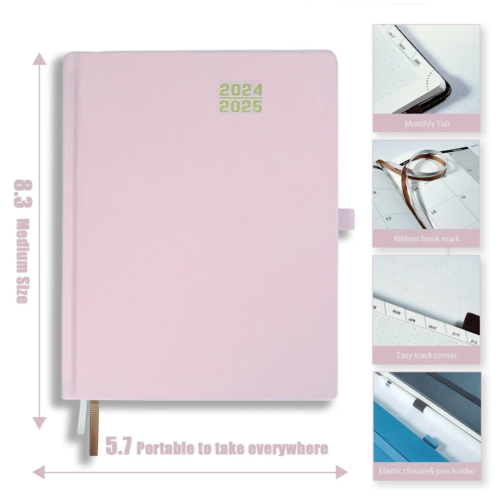 Heture Planner 2024-2025,Daily Weekly and Monthly Appointment Book 2025 , Medium Size (6.5" x 8.5"), Hard Cover Calendar Agenda with Hourly Schedule, Monthly Tabs, 100 GSM, Perfect for School Home Office Planning- Soft Pink 15-Months Weekly Calendar: October 2024- December 2025 academic planner with 15 months of monthly pages, which for easy academic planning and scheduling. The size (6.5" X 8.5") is portable and perfectly for students/teachers/officer to carry and fit in with their school schedule. Monthly Planning: Monthly view pages contain an overview of the month with large writing space to memo the important schedule,event and deadline , and a notes section for important projects; Major holidays listed for reminder. The Monthly tabs allow you to quickly browse and locate the current date Weekly Planning: Weekly view pages offer ample space to write (from from Jan 2025-Dec 2025 7:00am to 8:00pm) for more detailed planning, allowing you to keep track of your appointments, reminders, ideas and to-do lists every day of the week. Previous and next month reference calendars for long-term planning Extra Pages and Long-Lasting Details: This weekly planner also contains "2025-2026 Yearly Overview Calendar" Page + "2025-2026-2027 Holiday" Page + Monthly Expenses Record Page+ "Future Planning" Pages+ Memo Page to write down thoughts or any other important things in detail& Password Pages.The monthly planner includes a inner pocket and for storing sticky notes, receipts, and other small items. . Besides; The Tear-Off Corners and Bookmark Ribbons,are added to mark any wanted page of your choice. , making it a versatile tool for all aspects of life. Perfect Present: With high quality covers and 100GSM paper in a professional planning design.Heture monthly planners are ideal gifts for students, teachers,officers and homemakers, this monthly planner 2024-2025 helps manage schedules, work deadlines, and household tasks. 15-Months Weekly Calendar: October 2024- December 2025 academic planner with 15 months of monthly pages, which for easy academic planning and scheduling. The size (6.5" X 8.5") is portable and perfectly for students/teachers/officer to carry and fit in with their school schedule. Monthly Planning: Monthly view pages contain an overview of the month with large writing space to memo the important schedule,event and deadline , and a notes section for important projects; Major holidays listed for reminder. The Monthly tabs allow you to quickly browse and locate the current date Weekly Planning: Weekly view pages offer ample space to write (from from Jan 2025-Dec 2025 7:00am to 8:00pm) for more detailed planning, allowing you to keep track of your appointments, reminders, ideas and to-do lists every day of the week. Previous and next month reference calendars for long-term planning Extra Pages and Long-Lasting Details: This weekly planner also contains "2025-2026 Yearly Overview Calendar" Page + "2025-2026-2027 Holiday" Page + Monthly Expenses Record Page+ "Future Planning" Pages+ Memo Page to write down thoughts or any other important things in detail& Password Pages.The monthly planner includes a inner pocket and for storing sticky notes, receipts, and other small items. . Besides; The Tear-Off Corners and Bookmark Ribbons,are added to mark any wanted page of your choice. , making it a versatile tool for all aspects of life. Perfect Present: With high quality covers and 100GSM paper in a professional planning design.Heture monthly planners are ideal gifts for students, teachers,officers and homemakers, this monthly planner 2024-2025 helps manage schedules, work deadlines, and household tasks. Shipping from the USA All of our products are shipped from the USA, ensuring quick delivery to your destination. Payment We offer the following payment methods: PayPal, credit card, bank transfer, and eBay's secure payment system. Free Shipping & Free Returns Shipping within the USA is FREE. Additionally, any return is absolutely free for you. Risk-Free Purchase You have the option to return an item within 30 days without any justification. We cover the return shipping costs! Fast Shipping We ship immediately upon receipt of payment. Generally, the package is delivered within 2-3 days in the USA. If it takes longer, we will contact you. Quality and Costs Made in Europe, USA, China No customs fees or additional charges Total satisfaction guarantee Invoice with declared VAT available upon request in .pdf format Feedback Your feedback is very important to us. After you pay for your purchase, you will automatically receive positive feedback from us.