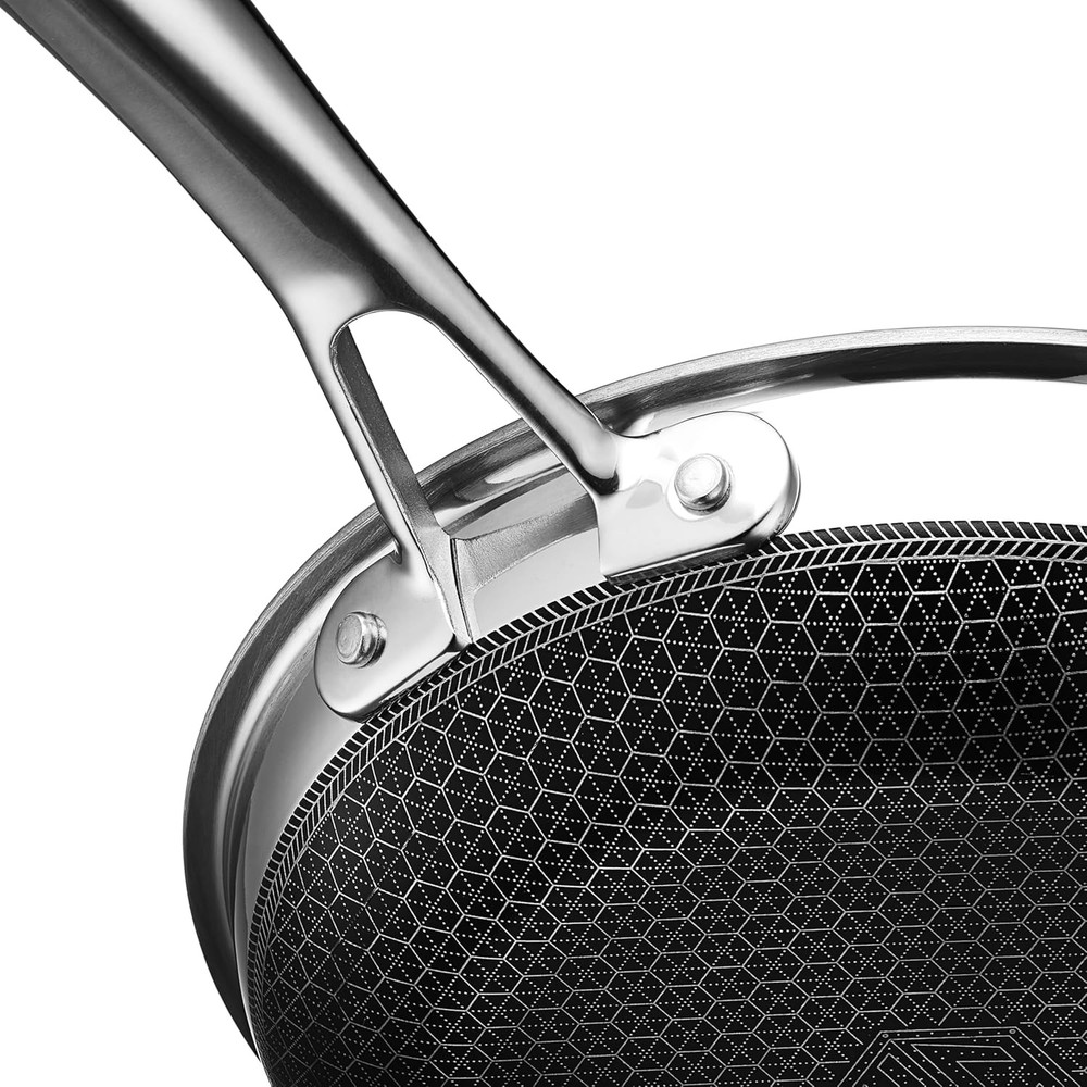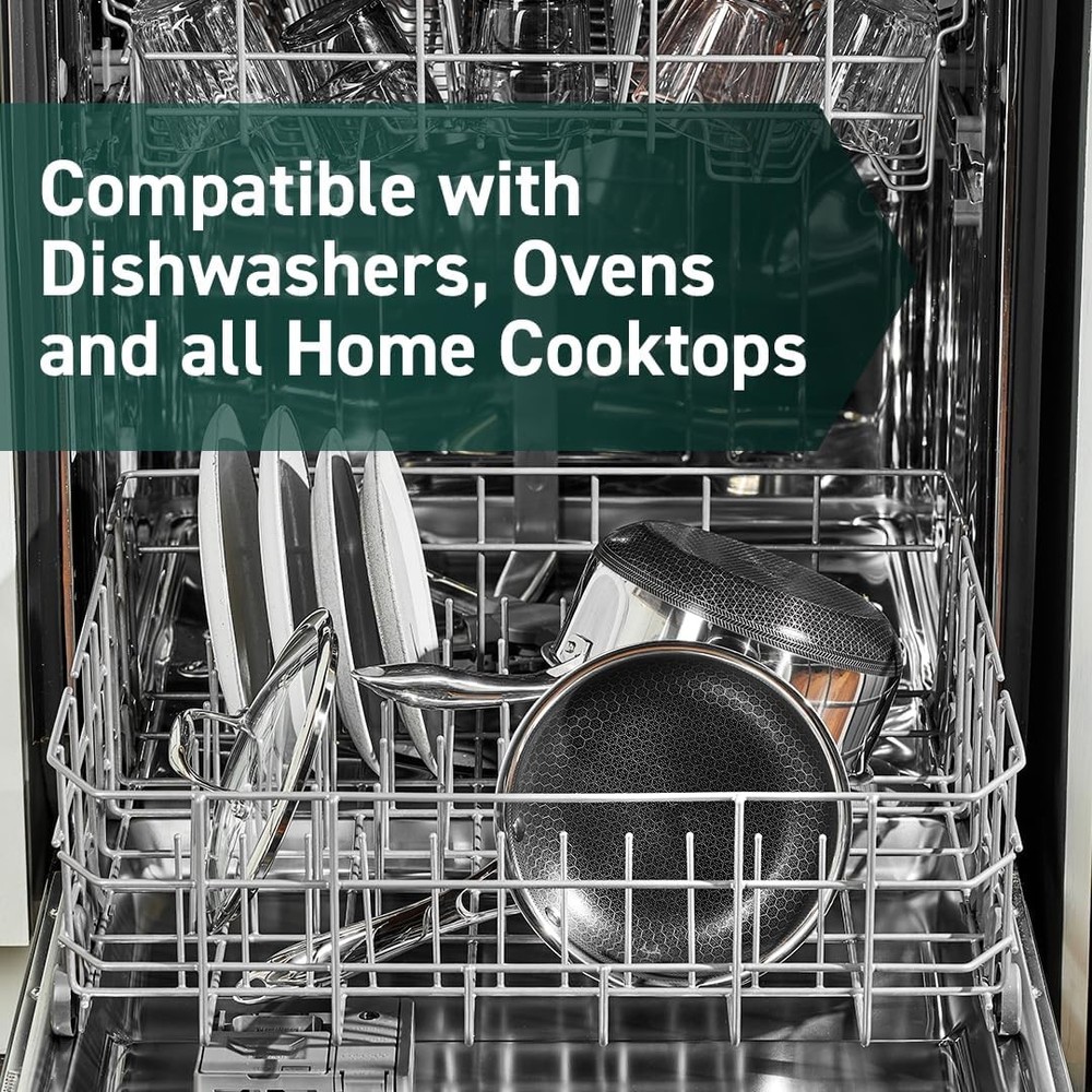 HexClad Hybrid Nonstick 7-Inch Frying Pan, Stay-Cool Handle, 7-inch, Silver Product Details Brand: HexClad Material: Stainless Steel Special Feature: Oven Safe Color: Silver Capacity: 770 Milliliters Compatible Devices: Electric Coil Product Care Instructions: Dishwasher-safe or wash with warm, soapy water. For tougher stains, soak for 10 min. and use an abrasive sponge like steel wool. Handle Material: Stainless Steel Item Weight: 1.5 Pounds Is Oven Safe: Yes Has Nonstick Coating: Yes Is Dishwasher Safe: Yes Recommended Uses For Product: Frying, sautéing, reducing sauces, toasting seeds or nuts, and melting butter UPC: 810140340009 Global Trade Identification Number: 00810140340009 Product Dimensions: 7 x 7 x 1.6 inches Item Weight: 1.5 pounds Department: unisex-adult Manufacturer: HexClad Country of Origin: China HexClad’s patented Hybrid technology features a laser-etched hexagonal nonstick surface that combines both stainless-steel and our TerraBond ceramic coating for the ultimate sear and easy cleaning. An excellent pan for small, individual servings, the Hybrid 7-inch pan also enables precise heat control making it ideal for reductions, toasting seeds or nuts and melting butter. Tri-ply construction with an aluminum core for quicker even heating, it’s safe to use on any home cooktop or stovetop, including induction. HexClad is metal utensil-safe, dishwasher-friendly, and oven-safe up to 900°F. (Tempered glass lids are oven-safe up to 400°F, while stainless steel lids are oven-safe up to 900°F.) Your purchase includes one HexClad 7-inch Pan. Please note that a lid is NOT included. The 7-inch Pan measures approximately 7 inches in diameter, 1.6 inches in height, and 1.5 pounds in weight.