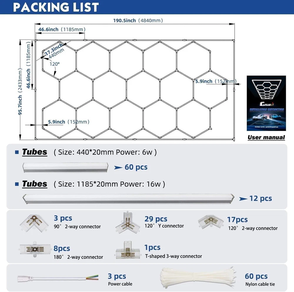 You may also like 14 Grid White Hexagon Garage Lights Led Hexagon Light DIY for Car Shop Gym p 186.99 USD Free shipping Twinkle Headliner Star Light Kit Car/Home RGBW Ceiling Fiber Optic Lights 2/3m P 58.99 USD Free shipping Hexagon Garage Lights Customize 28 Grids Led Hexagon Light for Car Shop Gym US!! 299.99 USD Free shipping 1600X CAR HEADLINER METEOR STAR LIGHT ROOF SHOOTING CEILING LIGHTS FIBER OPTIC p 129.99 USD Free shipping Hexagon Lights Garage 5-28 Grid System Honeycomb RGB LED Garage Light Hex Barbe 79.88 USD Free shipping 5 Grid Remote Hexagon LED Ceiling Light RGB DIY Shaped Detail Garage Lights p 79.88 USD Free shipping 600X Car/Home Headliner Star Light Roof Twinkle Meteor Ceiling Light Fiber Optic 105.99 USD Free shipping Twinkle Home Car Headliner Shooting Star Light Roof Ceiling Light Fiber Optic US 94.99 USD Free shipping 1300Pcs 32W RGBW Home Car Roof Ceiling Headliner Twinkle/Meteor Starlights Lamps 158.99 USD Free shipping Twinkle Meteor Headliner Star Light Car 1200pcs Ceiling Fiber Optic Lights 2/3m 135.99 USD Free shipping Hexagon Garage Lights Customize 14 Grid Led Hexagon Light Hex for Car Shop Gym 186.99 USD Free shipping Hexagon LED Lights 14 Hex Grid System with Frame for Garage, Shop, Basement USA 216.99 USD Free shipping Twinkle Headliner Shooting Star Light Roof Remote 650 Ceiling Light Fiber Optic* 94.99 USD Free shipping Hexagon Lights Garage 5-28 Grid System LED Car Detailing Shop Light Hex Barbe US 84.98 USD Free shipping 1200X Car Headliner Meteor Star Light Twinkle Ceiling Fiber Optic Lights 2/3m US 135.99 USD Free shipping 1300Pcs 32W RGBW Home Car Roof Ceiling Headliner Twinkle/Meteor Star Lights Set 158.99 USD Free shipping Product Description 2.4m x 4.8m - 14 Hexagon + Border 12 months limited warranty : Technical data/specifications: Color temperature (CCT): 5000K (daylight) CRI (Ra>): 90 Input voltage (V): AC 220V (± 10%) Light output ratio of the lamp (lm/w): 65 Warranty (year): 1 year Working time (hour): 50000H Working temperature (?): -20-45 Color rendering index (Ra): 60 Output color: White, edge blue/red/green Power supply: AC Light source: LED Support dimmer: NO Application: Office, hotel, residential, sports stadiums, AUTO workshop, beauty salon, retail, detail studio, etc. 14 Grids -LED Hexagon Lamp white light (with border) Payment Shipping Returns Contact Us Return Policy Feedback Here is a detailed description of the Payment policy. For Buy It Now item, an immediate payment is required (best offer items excluded). For Auction items, please paid within 5 days. We ship worldwide. Item will be shipped out 1 business day by Singpost after full payment received. Delivery Time: USA ------------------------------- 8-15 working days by China Epacket delivery. Australia ------------------------ 7-12 working days by AUpost-eparcel from China. UK/ Canada -------------------- 10-28 working days Europe -------------------------- 18-28 working days Italy/ South America ------ 28-40 working days I f you feel unhappy with your purchases, please contact us at first, we will work out the best solution for you immediately. All items can be returned, for refund within 7 days after delivery . But postage cost is on you own. You just mail the item back in the original condition and tell the tracking number, you will get your money back. If the item is defective or taking longer than usual to you, please do not leave us negative feedback. Send us a message through eBay and we will resolve the issue promptly. Thanks for your support and understanding! :) OUR WORKING Time(Beijing): 9:00am~6:00pm(Monday~Friday) If you have any questions, please contact us via ebay mail, we will reply you on the working day in China, and there will be no reply on the weekend, we will reply on Monday. Because the time zone between the seller and the buyer is different, please be patient and wait for your understanding. We will be happy to serve you. We must exchange the item(s) within 7 days after you received it if it is defective. Returns must have all original packaging and accessories. Opened or damaged merchandise are not eligible for returns/exchanges. Please allow up to 10 business days for returns to be processed. Shipping and handling charges are not refundable. 1 year manufactured warranty on all products , Warranty period starts from the date of purchase. Buyers need to responsible to pay for the returning package , pls make sure before you bid. For all orders, please note that: 1. Taxes and charges are not included in the item price or shipping charges. 2. Please check with your country's customs office to determine what these additional costs will be prior to bidding/buying. 3. If there is the cutsom fee casused by the cutsom detention, the buyer need to check with your country's customs and deal with it himself. Dear Buyer, We appreciate your business, if you are satisfied with our service, please leave us a positive feedback and rate the details of the transaction (Detailed Seller Ratings) with aPERFECT 5 STARS. Our goal is to make sure you are happy and have a pleasant shopping experience with us. Please email us before leaving any 1 or 2 ratings, neutral and negative feedback or open any ebay or paypal dispute. We will do our best to resolve the issues. Please give us the opportunity to resolve any problem. It is impossible to address issues if we do not know about them! Payment Here is a detailed description of the Payment policy. For Buy It Now item, an immediate payment is required (best offer items excluded). For Auction items, please paid within 5 days. Shipping We ship worldwide. Item will be shipped out 1 business day by Singpost after full payment received. Delivery Time: USA ------------------------------- 8-15 working days by China Epacket delivery. Australia ------------------------ 7-12 working days by AUpost-eparcel from China. UK/ Canada -------------------- 10-28 working days Europe -------------------------- 18-28 working days Italy/ South A