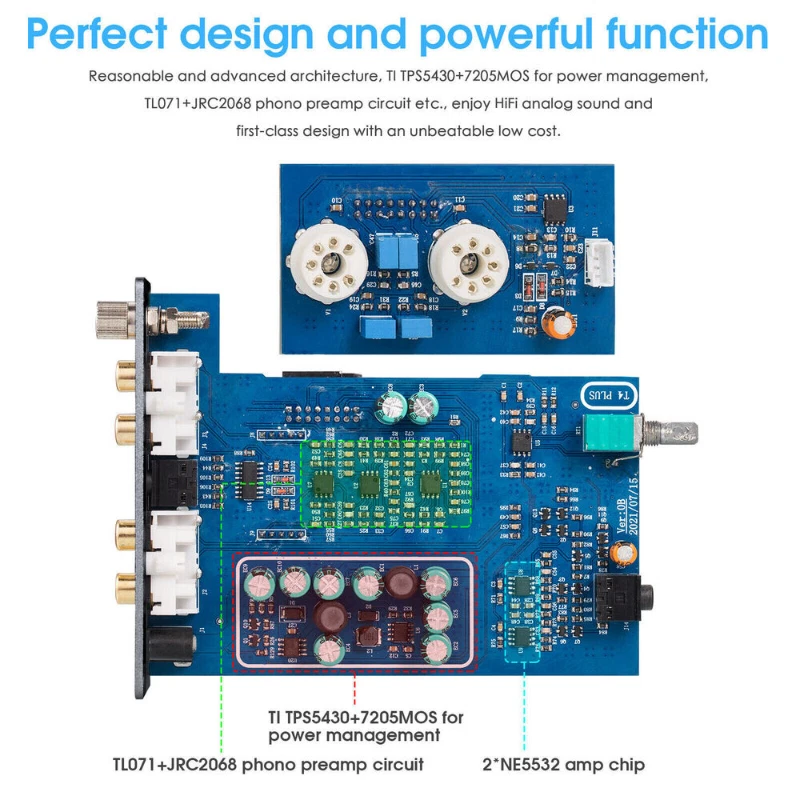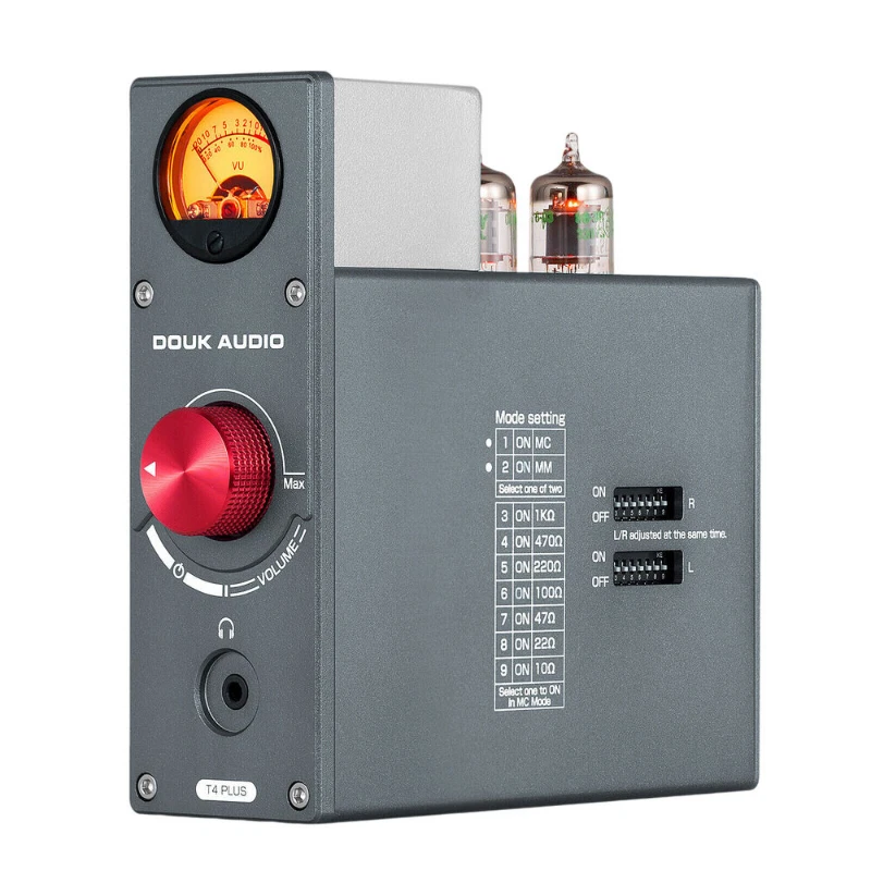 Description: Features T4 PLUS tube preamp meets more HiFi audio needs: MM /MC phono input, support multiple input impedance switch (1KΩ/470Ω/220Ω/100Ω/47Ω/22Ω/10Ω), converts phono signal to line level signal, low-noise integrated circuits and high-quality components to ensure clear sound. 3.5mm AUX input, amplify the low level audio signal from your phone, tablet, PC, MP3 etc., easier to drive amplifier or active speaker and greatly improve the sound quality.Unique and amazing combination in the appearance: integrated T4 PLUS preamp with retro tubes and VU meter into a whole, the pointer dancing in the warm light with strong vintage feelings when enjoy HiFi music, dynamically decorates the audio system and give you a different acoustic enjoyment with large dynamic and sweet tube sound even in limited space. Imported JAN5654 tubes and vintage warm sound: default comes with JAN5654 tubes, improves everything associated with your music such as detail, transparency, immediacy, richness, dynamic, tone etc., much better than 6J1 series especially in human voice. Pluggable tube socket for tube rolling and sound-shaping, easy to pick from and alter the sound signature to one's preference. 3.5mm headphone output and perfect circuit design: T4 PLUS also with built-in classic headphone amp circuit (2*NE5532), easily to drive 32-300 ohm headphones. Reasonable and advanced architecture, TI TPS5430+7205MOS for power management, TL071+JRC2068 phono preamp circuit etc., enjoy HiFi analog sound and first-class design with an unbeatable low cost. Mini size and excellent performance: all designs full of details, such as solid aluminum alloy knob, gold-plated terminals, grey integrated moulding aluminum alloy shell decorates with built-in VU meter, looks vintage and elegant. Not only a MM/MC phono preamp, but also a stereo audio preamp and headphone amplifier, especially designed for the audiophiles who pursue HiFi sound. Warm tips: 1. 3.5mm AUX input with priority, please make sure the AUX cable has been pulled out if want to use MM/MC phono input. 2. Stereo RCA and 3.5mm headphone jack can output at the same time, and the knob also controls the volume of two outputs simultaneously. ParametersBrand: Douk Audio Model: T4 PLUS Audio input: MM phono/turntable / 3.5mm AUX Audio output: stereo L/R RCA / 3.5mm headphone jack Max output power of headphone jack: 150mW@32Ω Matched headphone impedance: 32-300Ω AUX IN AUX input level: 0.775V RCA max output level: 1.5V Frequency response: 20Hz-20KHz (±0.3dB) S/N ratio: ≥110dB THD: 0.2% Phono IN Phono input level: 0.005V RCA max output level: 300mV (MM) / 3V (MC) Frequency response: conforms to RIAA characteristics (±3dB) S/N ratio: 71dB THD: 0.8% Working voltage: DC 12V Dimensions(W*D*H): 50*137*146mm / 1.97*5.39*5.75in Package dimensions(W*D*H): 300*230*65mm / 11.81*9.06*2.56in Net weight: 640g / 1.41lb Package weight: 1000g / 2.20lbPacking List1*T4 PLUS Preamp 2*JAN5654 Vacuum Tube 1*DC 12V Power Adapter 1*3.5mm to RCA Cable Note: Please allow minor errors due to manual measurement. Item color displayed in photos may be showing slightly different since monitors are not calibrated same. Payment: We only accept Payoneer . Payoneer is the only online payment method we accept. Please make sure you have a valid/confirmed Payoneer account prior bidding. And please make sure that your Payoneer registed address is the same with your eBay registed address. Shipping: It usually takes about 10-30 working days to arrive for economy shipping which not including tracking number; 7-15 working days for standard shipping which including tracking number. Transit time may be a little delayed because of the bad weather and customs inspection. If you do not receive your item within 30 working days since payment finished, please contact us immediately for further assistance. Note: It may takes more than 30 working days to other countries such as Mexico,Brazil,Chile,Peru, because they is far away from China. PS: We also offer faster shipping service (3-5 days to deliver), such as DHL,EMS, but buyers need to pay for the extra shipping cost. Please contact us if you need it. Customs Declaration: Import duties, taxes and charges are not included in the item price or shipping charges. These charges are the buyer's responsibility. Please check with your country's customs office to determine what these additional costs will be prior to bidding. Return Policy: If you are dissatisfied with our item or service, then please follow the good eBay practice to contact us by eBay message before leaving any feedback. We are committed to resolve all issues in a friendly and satisfactory manner. We always reply to eBay messages within 1-2 business days. If you do not get a response from us, then please check your eBay message. Only unused, undamaged and original condition item can be qualified for a return. Feedback: We strive for 100% customer satisfaction! Positive Feedback is very important to us. If you have any questions, please feel free to contact us instead of leaving negative feedback. We will reply your email within 24 working hours.