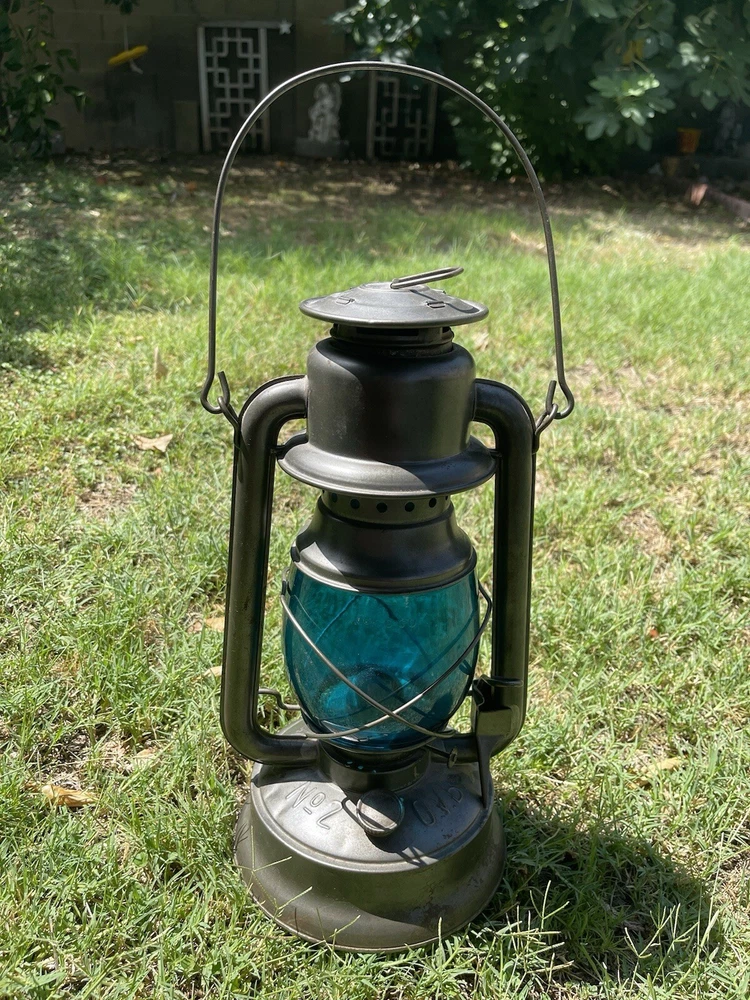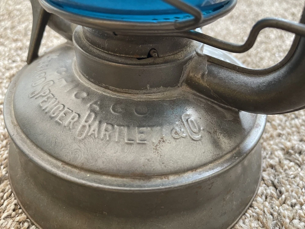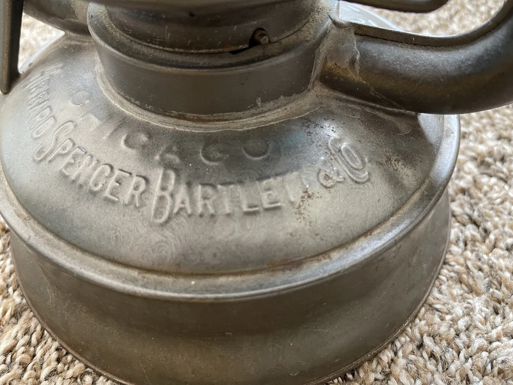 From our own family’s collection! HIBBARD SPENCER BARTLETT & CO CHICAGO OVB #2 TUBULAR LAMP BARN LANTERN This is our lovely antique lantern marked HIBBARD, SPENCER, BARTLETT & Co., No. 2 OVB in Very Good condition with minimal rust. Very surface stuff, nothing serious It has a super unique TEAL colored globe, which is marked MCK GC0. The metal base is marked No. 2, O.V.B. on one side & marked Chicago, Hibbard, Spencer, Bartlett & Co. The wick is included. We did make great efforts to upload clear pictures. Please, please, PLEASE inspect all of the pictures & ask all of the questions that you may have prior to making a purchase. For example, if you can’t quite tell the condition from the pictures, then please ask the appropriate questions. All of that being said, please don’t hesitate to reach out to us for anything, such as extra pics. Thank you for looking & look out for more to come! We’re also happy to combine shipping & your item will be very well packed for its journey to you. Smoke-Free Home!