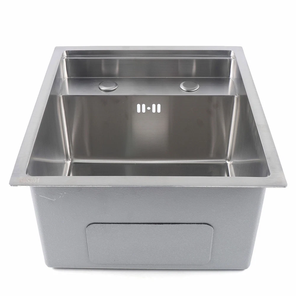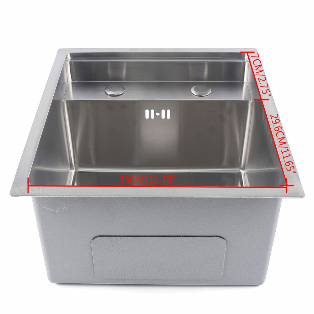 Features: Wear-resistant and scratch-resistant Multifunctional drain basket, double-layer edging, more convenient to use Easy to install and easy to clean Specifications: Features: With faucet Sink style: single bowl Material: Stainless steel Bowl Shape: Square Surface Treatment: Brushed Bowl size:35*29.6*23cm/13.78*29.6*9.06inch Cover size:38.8*34.8cm/15.28*13.7inch Over size:49*39cm/16.92*15.35inch Package: 1*sink 1*Folding faucet 1*Drain pipe 1*Cover 1*Strainer Hidden Bar Kitchen Sink Single Bowl Sink with Folding Faucet Drain Pipe + Cover Features: Wear-resistant and Scratch-resistant Multifunctional Drain Basket, Double-layer Edging, More Convenient to Use Easy to Install and Easy to Clean Specifications: Features: with Faucet Sink Style: Single Bowl Material: Stainless Steel Bowl Shape: Square Surface Treatment: Brushed Bowl Size:35*29.6*23cm/13.78*29.6*9.06inch Cover Size:38.8*34.8cm/15.28*13.7inch Over Size:49*39cm/16.92*15.35inch Package: 1*Sink 1*Folding Faucet 1*Drain Pipe 1*Cover 1*Strainer Payment Delivery details Terms of sales About us Contact us Payment We accept ebay payment 。 Fees such as import duties, taxes are not included in the item price or shipping costs. These charges are the buyer's responsibility. Delivery details Shipping: 2-9 working days to: USA Terms of sales We maintain high standards of excellence and strive for hundred percent customer satisfaction. Feedback is very important to us. We hope that you contact us immediately before you give neutral or negative feedback, so that we can address your concerns. It is impossible to address issues if we do not know about them! About us Your satis faction is our ultimate goal. We work hard to earn your trust and future business. Our certified technicians have tested each item before shipping. The unit comes with 1 year limited warranty on all manufacturing defects. a) If you receive a defective item, you may return it or ask for a discount. Please contact us within 14 days after you receive the package. b) What you returned must be intact and in its original packaging as re? u. Customer is responsible for shipping costs of the returned item. c) We will cover the cost of shipping back t with the shipping rate indicated in the registration page. We will send you a new unit or refund the full payment you paid. Thank you. Contact us Business Hour Business Hour: Monday To Friday: 8:30 AM to 5:00 PM (Beijing China time) Due to time zones, our reply to your questions may not be immediately. But within above working time, we will reply your email within 24 hours. If it's non-workdays, please kindly be patient and wait till Monday. Please contact us with ebay message. Please feel free to contact us if you have any questions. Monday To Friday: 8:30 AM to 5:00 PM (Beijing China time) Due to time zones, our reply to your questions may not be immediately. But within above working time, we will reply your email within 24 hours. If it's non-workdays, please kindly be patient and wait till Monday. Please contact us with ebay message. Please feel free to contact us if you have any questions.