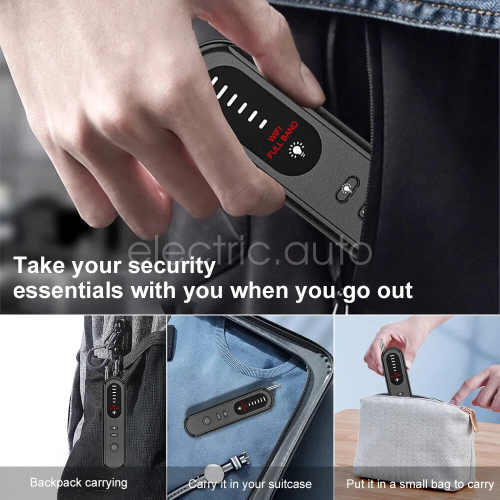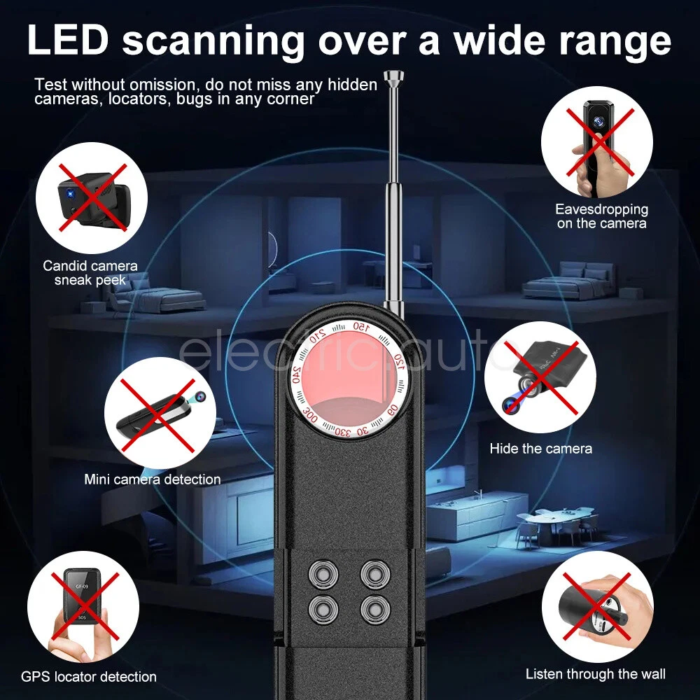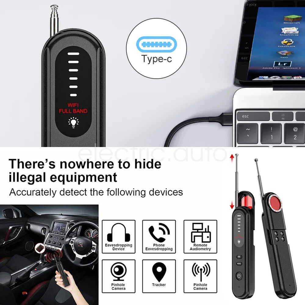 Product View Detail Features: 【Professional Anti-spy Detector】Adopting advanced AI chip, it can easily and quickly detect wireless cameras, VHF/UHF transmitters, GSM/3G/4G vulnerabilities, GSM/3G/4G GPS trackers, wired sources and strong magnetic field signals. 【 Wide Frequency Range】 The detection frequency range is from 1MHZ to 6.5GHZ, capable of detecting modern communications including GSM, 3G, 4G, 5G, Bluetooth and Wi-Fi 2.4G and 5.8G, 2 working modes: mute and siren sound, when the detector senses a signal, it will emit an alarm sound and the indicator light blinks to remind the user. 【 Adjustable Sensitivity 】 5-level adjustable threshold, wide range frequency detection.5-segment bar graph indicatorPhysical attenuator provides the ability to locate strong RF sources. 【Portable and Easy to Use】 The antenna is completely hidden inside this anti-spy camera detector with very small size. It is easy to carry. You can conduct covert operations, especially when sweeping sensitive areas with spy cameras. 【Stretch and Adjust】The color filter can be freely stretched and adjusted. When you need to use it, you can slide it upward to open the visual inspection lens. After use, you can slide down to hide it completely, very portable. 【COMPREHENSIVE PRIVACY PROTECTION】 Designed to target car trackers, cell phone spyware, wireless pinhole cameras, surveillance cameras, casino fraud and cheating devices on the market. The device meets the investigative needs of individuals and law enforcement agencies, protecting your privacy and security in all aspects. Specification: Product Name: Camera Detector Antenna signal: FPC gold-plated antenna Wireless sensitivity: 5-speed adjustable Signal detection range: 5cm-10 meters Detection Frequency Range:1MHZ~6.5GHZ Battery capacity: 500mAh Operating time: 30 days Charging interface: Type-C Operating Temperature: -20℃~50 Operating humidity: 20%-80 Product size: 110*28*13mm Package Included: 1* Detector 1* User manual 1* Type-C data cable Attention: 1.According to the light color may vary! 2.Please allow a slight 1cm difference due to manual measurement! 3. Thank you for your understanding and attention, wish you a pleasant shopping experience! Shipping Policy Payment Method Returns Policy Shipping Policy We only accept your Ebay Address ,Please Make sure it's 100% right. The items you ordered will be shipped out in 1 business day by Hong Kong Air Mail when your payment is clear. The arrival time is 5-20 business days to United States usually. We maintain high standards of excellence and strive for 100% customer satisfaction! Feedback is very important to us. We request that you contact us immediately BEFORE you give us neutralor or negative feedback, so that we can satisfactorily address your concerns. Payment Method Returns Policy Copyright © 2017 DataCaciques Anti-Spy Hidden Camera Detector Prevent Monitoring Wireless Signal Bug Detector Home Payment Shipping About us Contact us Store Categories Store Categories Consumer Electronics PC&Tablet Accessories Mobile Phone Accessories Sound&Vision Headphones Watches Camera Led Lights Others Auto Car Accessories Lights Others Motorcycle Motor Accessories Lights Others Headlamp&Torch Others Other Product View Detail Features: 【Professional Anti-spy Detector】Adopting advanced AI chip, it can easily and quickly detect wireless cameras, VHF/UHF transmitters, GSM/3G/4G vulnerabilities, GSM/3G/4G GPS trackers, wired sources and strong magnetic field signals. 【 Wide Frequency Range】 The detection frequency range is from 1MHZ to 6.5GHZ, capable of detecting modern communications including GSM, 3G, 4G, 5G, Bluetooth and Wi-Fi 2.4G and 5.8G, 2 working modes: mute and siren sound, when the detector senses a signal, it will emit an alarm sound and the indicator light blinks to remind the user. 【 Adjustable Sensitivity 】 5-level adjustable threshold, wide range frequency detection.5-segment bar graph indicatorPhysical attenuator provides the ability to locate strong RF sources. 【Portable and Easy to Use】 The antenna is completely hidden inside this anti-spy camera detector with very small size. It is easy to carry. You can conduct covert operations, especially when sweeping sensitive areas with spy cameras. 【Stretch and Adjust】The color filter can be freely stretched and adjusted. When you need to use it, you can slide it upward to open the visual inspection lens. After use, you can slide down to hide it completely, very portable. 【COMPREHENSIVE PRIVACY PROTECTION】 Designed to target car trackers, cell phone spyware, wireless pinhole cameras, surveillance cameras, casino fraud and cheating devices on the market. The device meets the investigative needs of individuals and law enforcement agencies, protecting your privacy and security in all aspects. Specification: Product Name: Camera Detector Antenna signal: FPC gold-plated antenna Wireless sensitivity: 5-speed adjustable Signal detection range: 5cm-10 meters Detection Frequency Range:1MHZ~6.5GHZ Battery capacity: 500mAh Operating time: 30 days Charging interface: Type-C Operating Temperature: -20℃~50 Operating humidity: 20%-80 Product size: 110*28*13mm Package Included: 1* Detector 1* User manual 1* Type-C data cable Attention: 1.According to the light color may vary! 2.Please allow a slight 1cm difference due to manual measurement! 3. Thank you for your understanding and attention, wish you a pleasant shopping experience! Shipping Policy Payment Method Returns Policy Shipping Policy We only accept your Ebay Address ,Please Make sure it's 100% right. The items you ordered will be shipped out in 1 business day by Hong Kong Air Mail when your payment is clear. The arrival time is 5-20 business days to United States usually. We maintain high standards of excellence and strive for 100% customer satisfaction! Feedback is very important to us. We request that you contact us immediately BEFORE you give us neutralor or negative feedb