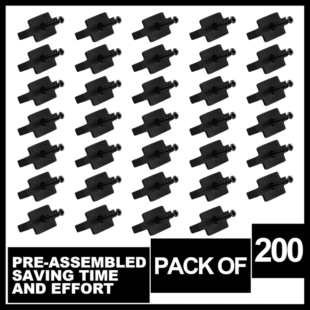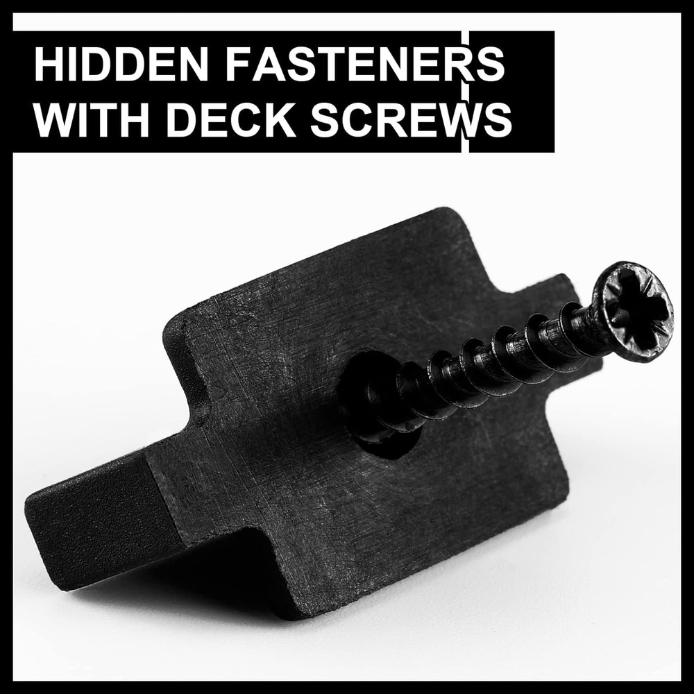 Hidden Fasteners Nylon Clips for Deck Fastening, Composite Decking Fasteners with Metal Deck Screws for Deck Boards, Nylon Plastic T Clips for Decking (200 Packs) Product Details Manufacturer: Bucherry Part Number: Bucherry-Fasteners Plastic Clips-11 Item Weight: 2.94 pounds Package Dimensions: 10.31 x 5.79 x 3.82 inches Country of Origin: China Item model number: Bucherry-Fasteners Plastic Clips-11 Item Package Quantity: 200 Measurement System: Metric, Imperial Batteries Required?: No Package Includes: you will receive 200 pieces of hidden fasteners in the package, and comes with 200 pieces of deck screws, enough quantity and a nice combination for your use and replacement Reliable to Use: the plastic decking clips are made of high density nylonethelene material, strong and sturdy, and they are adaptable, suitable for most decking panels hidden fastening Scope of Application: the hidden fasteners can be applied on the frame of the deck, making the deck more stable, and still look clean and compact, bringing you a nice using experience Easy Installation: these decking fasteners can be installed over wood deck frames, and can also be installed on a variety of grooved composite decks, which is easy and convenient to install Warm Tips: the plastic T clip measures approx. 35 x 20 mm/ 1.38 x 0.79 inch, the middle raised buckle part is 6 x 6 mm/ 0.24 x 0.24 inch, and the composite deck screws are about 30 mm/ 1.18 inch; Please pay attention to see the size, so as not to cause inappropriate situation