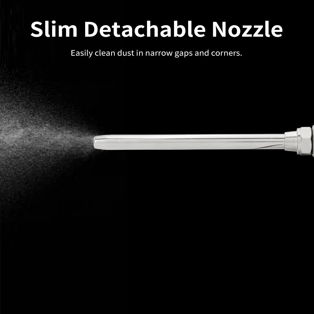 Features: Premium Material: The blow is made of alloy, ensuring a long lifespan and resistance to damage. Ergonomic Design: With its ergonomic handle design, the compressor blow provides a comfortable grip, reducing hand fatigue during prolonged use. Convenient Hook: The dust blow comes with a hook for easy storage when not in use, saving space and allowing for quick access. Slim Nozzle: The slim nozzle design allows for easy cleaning of narrow gaps and corners, ensuring a thorough cleaning process. Wide Application: The blower has a powerful dust-blowing capability, allowing for quick and effective cleaning of stubborn dust and dirt. It's perfect for cleaning computers, keyboards, electronic devices, vehicle interiors, and various other equipment. Specifications: Item Name: Blower Main Material: Alloy Product Color: Blue Product Size: 21*12cm/8.27*4.72inch Package Information: Package Size: 25*13*5cm Package Weight: 150g Package List: K23487 1 * Blower