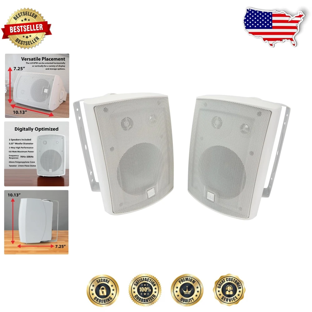 High Fidelity 3-Way Speakers with Swivel Mounts | Enjoy Expansive Sound Anywhere ‹ › ‹ › ‹ › ‹ › ‹ › ‹ › ‹ › ‹ › High Fidelity 3-Way Speakers with Swivel Mounts Experience expansive sound anywhere with our cutting-edge 5 ¼ INCH 3-WAY MULTIPURPOSE SPEAKER SET. Designed for both indoor and outdoor settings, these high-performance studio-quality speakers ensure sound integrity without compromise. Features: High Performance: 125 Watts of Peak Power and 60 Watts RMS with 4-6 Ohms. Digitally Optimized Sound: Frequency Range from 70Hz-20kHz ensures unrivaled audio quality. Enhanced Sound Clarity: Mix of 5 ¼ inch Woofer, 1.6 inch Midrange Polypropylene Cone, and a ¾ inch Tweeter for optimal sound production. Versatile Swivel Brackets: Install on walls or ceilings easily with a 120-degree range of motion and a 90-degree range for vertical or horizontal placements. Weather Resistant Coating: UV resistant resin and ABS enclosure protect your speakers from the elements, ideal for patio use. Warranty: Enjoy peace of mind with a 2-year warranty when registered online, alongside a 1-year standard warranty. Benefits: Studio-quality sound at your fingertips for any gathering or event. Perfect for any installation setup – customize sound placement to your desire. Durable design makes it your ideal outdoor companion, rain or shine. Simple integration with the top-selling Dual DBTMA100 Bluetooth Amplifier for an unrivaled acoustic experience. Why Choose Our 3-Way Speakers? Unleash your love for music and elevate your spaces with our High Fidelity 3-Way Speakers. Crafted by engineers with a focus on quality sound production, these speakers promise enhanced clarity and performance. Whether you’re hosting a summer party, enjoying a quiet evening in, or setting up the ultimate movie night, our speakers adapt effortlessly, providing the acoustic experience you deserve. Don't miss out on the chance to transform your audio experience – order your High Fidelity 3-Way Speakers today! Shipping Free & Fast Shipping - We offer free shipping to most of the USA with a normal delivery time of 3-7 days. However, due to the current situation, additional delivery time (up to 3 weeks) may be required for some items. Alternative Carriers - We may use alternative carriers (e.g. USPS, FedEx, UPS, etc.) to ensure your package arrives safely and on time. Due to the use of multiple carriers, we are unable to provide a tracking number automatically. Handling Time - Orders are processed and shipped within 1-2 business days of receiving cleared payment. Shipping Restrictions - Shipping to Alaska, Hawaii, Puerto Rico, Guam, and other US territories may incur shipping charges or delivery restrictions. Please contact us before ordering, or your order can be refunded/cancelled. State Restrictions - There may be restrictions based on your state of purchase. For example, certain items may not be shipped to California due to state regulations. Contact for Tracking Updates - If you require tracking updates or have any concerns about the delivery of your order, please feel free to contact us, and we will be happy to assist you. Return 30-Day Hassle-Free Returns - We want you to be completely satisfied with your purchase. If you are not, you can return the item within 30 days of receiving it for a full refund or exchange. Easy Return Process - To start a return, simply contact us and we will provide you with a prepaid return shipping label and detailed instructions. Restocking Fee - There are no restocking fees for returns. However, the buyer is responsible for return shipping costs if the return is not due to a seller's error. Refund Processing Time - Refunds will be processed within 5 business days of receiving the returned item in its original condition. Payment We accept all major credit cards, PayPal, and Apple Pay for your convenience. Your payment information is secure and encrypted to ensure a safe and seamless transaction. Please complete your payment within 3 days of purchase to avoid any delays in shipping. Feedback Your feedback is extremely important to us. We strive to provide the best products and customer service possible. If you are satisfied with your purchase, please take a moment to leave us a positive review. If you have any concerns or issues with your order, please contact us before leaving negative feedback. We are committed to resolving any problems and ensuring your satisfaction. Contact Us If you have any questions or concerns, please feel free to reach out to our customer support team. You can contact us through the eBay messaging system. We are available Monday to Friday, 9:00 am to 5:00 pm EST, and we will do our best to respond to your inquiry within 24 hours. Buy it now and enjoy a pleasant shopping experience! UPC: Not Set Unit Quantity: 7 lbs Item Height: Not Set Item Length: Not Set Item Width: Not Set Connectivity: Bluetooth,Wired Features: Weather Resistant,Swivel Mounts Audio Inputs: AUX Smart Home Compatibility: Not Set Surround Sound Formats: Not Set Compatible Brand: Not Set Compatible Model: Universal Brand: Unbranded Type: Outdoor Speakers Model: Outdoor Indoor Speakers Shape: Rectangular System Configuration: 3.0 Channel Color: White RMS Power: 60 W Driver Size: 5.25 in Impedance: 6 Ohms MPN: Not Set Unit Type: lb Material: Not Set Year Manufactured: Not Set Country/Region of Manufacture: Not Set Plug Regional Fitment: Not Set Item Weight: 7 pounds Manufacturer Warranty: Not Set Battery Capacity: Not Set