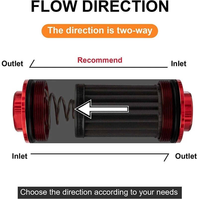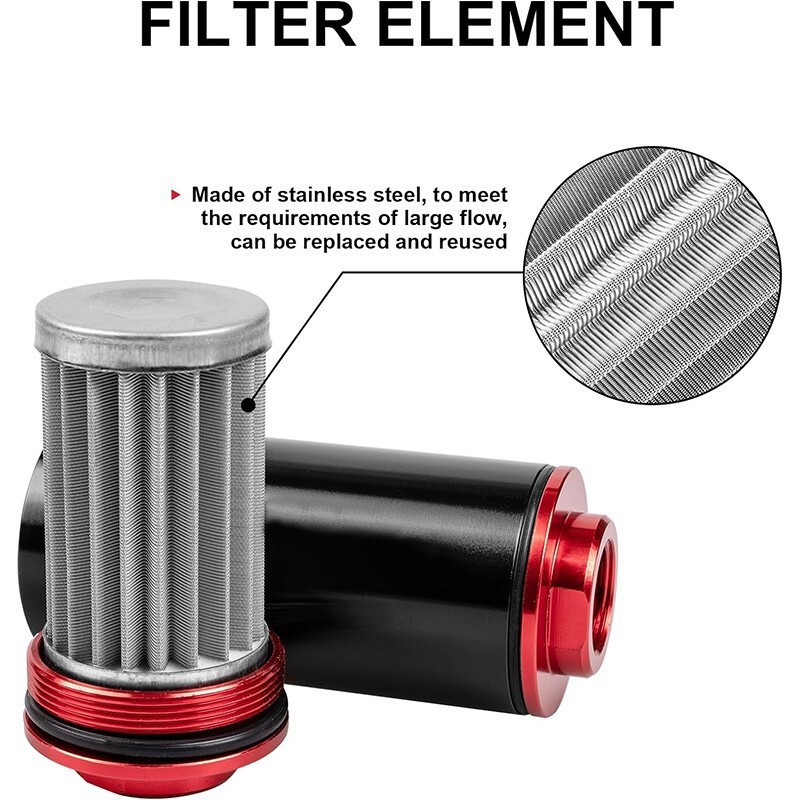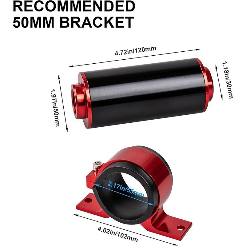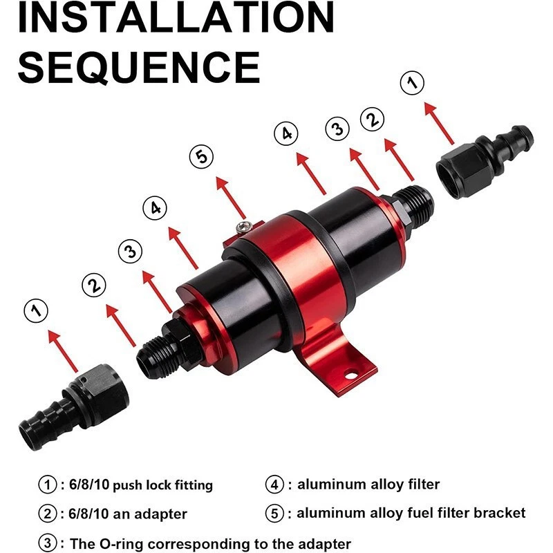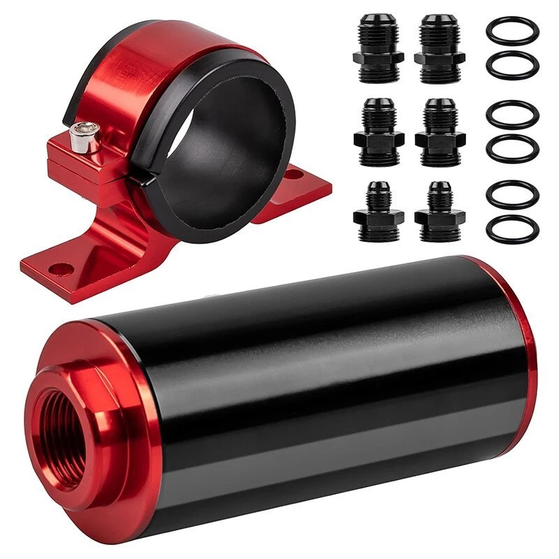 High Flow Inline Fuel Filter 100 Micron Cleanable AN6 AN8 AN10 Adapter Universal ⛽ Universal Inline Fuel Filter Kit – 100 Micron Stainless Steel | 6AN/8AN/10AN Adapters | Black/Red Options ⛽ 【High-Strength Aluminum Housing | Folded Filter Mesh | 50mm Mounting Bracket】Protects Carbureted/EFI Fuel Systems for Gasoline, E85, Diesel 1. Core Features 🔹 Universal Fit with 6AN/8AN/10AN Adapters Engineered as a versatile fuel filtration solution compatible with most aftermarket fuel systems—no strict make/model limits. Ideal for: Performance vehicles (hot rods, muscle cars, race cars) with AN-style fuel lines. Daily drivers, trucks, and SUVs using 3/8" or 1/2" fuel lines (adapters convert to 6AN/8AN/10AN). Carbureted or EFI (electronic fuel injection) systems—installs inline between the fuel tank and pump (primary filtration) or pump and injectors (secondary filtration). Key Compatibility : The kit includes 2 adapters each for 6AN, 8AN, and 10AN (6 total), covering the most common aftermarket fuel line sizes. Simply select the adapter that matches your existing lines for a seamless fit. 🔧 Premium Materials – Durable & Corrosion-Resistant Built to withstand harsh fuel system conditions (chemicals, pressure, vibration) while delivering reliable filtration: High-Strength Aluminum Housing : Forged aluminum construction is lightweight (reduces system weight) yet rigid—resists cracking, warping, and corrosion from gasoline, E85, or diesel. Available in black or red to match your engine bay aesthetic. 100 Micron Stainless Steel Filter Element : Folded mesh design expands the filtration area (vs. flat mesh) to trap more debris (rust, sediment, tank particles) without restricting fuel flow. Stainless steel resists rust and degradation—won’t break down like paper filters. Leak-Proof O-Rings : 6 included O-rings create a tight seal between adapters and the filter end caps—prevents fuel leaks (a critical safety hazard) and reduces vibration noise. 🌟 Folded Filter Mesh – Superior Filtration & Flow The filter element’s design solves a common tradeoff: maximum filtration without sacrificing fuel flow : Folded Stainless Steel Mesh : Increases surface area by 2–3x compared to standard inline filters, allowing more fuel to pass through while trapping 100-micron particles (small enough to protect fuel injectors, carburetors, and pumps). Reusable (Optional) : While designed for long-term use, the stainless steel mesh can be removed, cleaned with fuel system cleaner, and reinstalled—saves money on replacement filters (ideal for off-road or dusty environments). 🔩 Easy Installation with 50mm Mounting Bracket No extra hardware needed—this kit simplifies mounting and integration into your fuel system: 50mm Mounting Bracket : Sturdy steel bracket (included) lets you secure the filter to your vehicle’s frame or engine bay (away from hot components like exhaust manifolds). Pre-drilled holes for quick bolt-on installation. Tool-Free Adapter Swap : Adapters thread easily into the filter end caps—no specialized tools required. Simply select the correct AN size, attach the O-ring, and tighten by hand (finish with a wrench for a secure seal). 2. Technical Specifications Parameter Category Detailed Specifications Condition 100% Brand New Product Type Universal Inline Fuel Filter Kit Filter Rating 100 microns (stainless steel folded mesh) Housing Material Forged aluminum alloy Color Black or Red (specify at checkout; ships randomly if no preference is noted) Adapter Sizes 6AN, 8AN, 10AN (2 adapters per size) Included Seals 6 × O-rings (fuel-resistant rubber) Mounting Hardware 1 × 50mm steel mounting bracket Compatible Fuels Gasoline, E85, diesel, ethanol-blended gasoline Compatible Systems Carbureted and EFI (inline installation) Warranty 90-Day Manufacturer Warranty; 30-Day Free Return Shipping Origin CA or NJ warehouses (based on delivery address) 3. Package Included 1 × 100-Micron Inline Fuel Filter (aluminum housing) 2 × 6AN Fuel Line Adapters 2 × 8AN Fuel Line Adapters 2 × 10AN Fuel Line Adapters 6 × Fuel-Resistant O-Ring Seals 1 × 50mm Steel Mounting Bracket (As shown in product images) 4. Important Installation & Maintenance Tips Installation Guidelines Safety First : Relieve fuel pressure from the system (follow your vehicle’s manual) before disconnecting lines—fuel spray can cause fires. Step-by-Step Basics : Choose the correct AN adapter for your fuel lines and attach it to the filter end caps (with O-rings). Mount the filter to the engine bay/frame using the 50mm bracket (ensure it’s oriented vertically or horizontally—avoid upside-down mounting to prevent debris buildup). Connect the filter inline (primary: tank → filter → pump; secondary: pump → filter → injectors/carburetor). Tighten all connections and turn the ignition to “on” (no start) to check for leaks—fix any seepage before starting the engine. Maintenance Tips Inspect Every 15,000 Miles : Check the filter for debris buildup (visible through the aluminum housing). If clogged, replace or clean the stainless steel mesh. Replace O-Rings Annually : O-rings degrade over time—swap them out yearly to maintain a leak-free seal, especially if using E85 (which is more corrosive than gasoline). After-Sales Support Fitment Issues : If adapters don’t match your fuel lines, contact the seller for guidance on additional adapters. Defects : If the housing is damaged, adapters are stripped, or O-rings are missing, reach out for a free replacement (covered under warranty). The essential fuel system protector for any vehicle! This inline filter kit combines durability, versatility, and superior filtration—perfect for keeping your engine’s fuel components clean and reliable. 🚗⛽