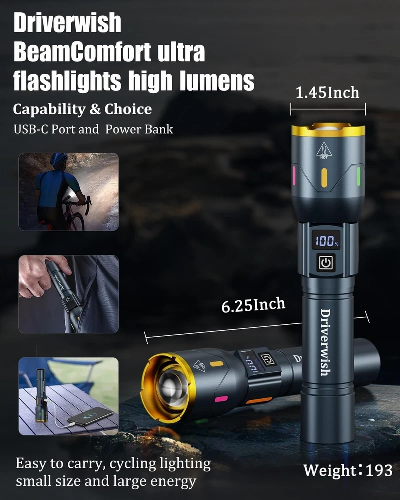High Lumens Rechargeable Flashlight Set - 3000 Lumens with Multi-Color Strip ‹ › ‹ › ‹ › ‹ › ‹ › ‹ › ‹ › ‹ › ‹ › High Lumens Rechargeable Flashlight Set - 3000 Lumens with Multi-Color Strip Illuminate Every Adventure Super Bright: The rechargeable flashlight delivers an astonishing 3,000 lumens, illuminating your path up to 980 feet. With a remarkable lifespan of 60,000 hours, this durable flashlight is designed to withstand extreme weather conditions - be it rain, sunlight, or freezing temperatures. The perfect companion for any outdoor enthusiast. Versatile Lighting Modes 3 Model & Zoomable: Choose from high, medium, or strobe lighting modes tailored to your needs. The flashlight offers convenient adjustment from clear to far light, ensuring visibility during emergencies and adventures alike. Multi-Color Night Light Feature Distinctive Color Strip: The cleverly designed lamp head features a multi-color light strip, allowing you to easily find your flashlight in the dark, whether at home or in the great outdoors. Built to Endure High-Quality Aluminum Material: Crafted from high-strength synthetic aluminum alloy, this flashlight not only boasts exceptional strength but also ensures optimal thermal conductivity, making it a reliable choice for all your needs. Quality Assurance 3-Year Guarantee: When you choose the , you benefit from a 3-year quality guarantee. Should you encounter any issues, we offer hassle-free exchanges and full refunds, ensuring your complete satisfaction. The Perfect Gift Searching for an ideal gift? The LED flashlight is perfect for fathers, mothers, husbands, sons, and boyfriends alike. This versatile flashlight makes an excellent present for Christmas, Father's Day, Valentine's Day, Easter, Halloween, and Thanksgiving! Why Choose the Flashlight? Don't settle for ordinary. Equip yourself with the super bright, multi-functional flashlight, designed to enhance your adventures while ensuring safety and reliability. Add this essential outdoor tool to your shopping cart today! Shipping Free & Fast Shipping - We offer free shipping to most of the USA with a normal delivery time of 3-7 days. However, due to the current situation, additional delivery time (up to 3 weeks) may be required for some items. Alternative Carriers - We may use alternative carriers (e.g. USPS, FedEx, UPS, etc.) to ensure your package arrives safely and on time. Due to the use of multiple carriers, we are unable to provide a tracking number automatically. Handling Time - Orders are processed and shipped within 1-2 business days of receiving cleared payment. Shipping Restrictions - Shipping to Alaska, Hawaii, Puerto Rico, Guam, and other US territories may incur shipping charges or delivery restrictions. Please contact us before ordering, or your order can be refunded/cancelled. State Restrictions - There may be restrictions based on your state of purchase. For example, certain items may not be shipped to California due to state regulations. Contact for Tracking Updates - If you require tracking updates or have any concerns about the delivery of your order, please feel free to contact us, and we will be happy to assist you. Return 30-Day Hassle-Free Returns - We want you to be completely satisfied with your purchase. If you are not, you can return the item within 30 days of receiving it for a full refund or exchange. Easy Return Process - To start a return, simply contact us and we will provide you with a prepaid return shipping label and detailed instructions. Restocking Fee - There are no restocking fees for returns. However, the buyer is responsible for return shipping costs if the return is not due to a seller's error. Refund Processing Time - Refunds will be processed within 5 business days of receiving the returned item in its original condition. Payment We accept all major credit cards, PayPal, and Apple Pay for your convenience. Your payment information is secure and encrypted to ensure a safe and seamless transaction. Please complete your payment within 3 days of purchase to avoid any delays in shipping. Feedback Your feedback is extremely important to us. We strive to provide the best products and customer service possible. If you are satisfied with your purchase, please take a moment to leave us a positive review. If you have any concerns or issues with your order, please contact us before leaving negative feedback. We are committed to resolving any problems and ensuring your satisfaction. Contact Us If you have any questions or concerns, please feel free to reach out to our customer support team. You can contact us through the eBay messaging system. We are available Monday to Friday, 9:00 am to 5:00 pm EST, and we will do our best to respond to your inquiry within 24 hours. Thank you for supporting our small family business! UPC: Not Set Voltage: 3.7 volts Item Height: Rechargeable Flashlights Item Length: Rechargeable Flashlights Item Weight: 7.68 ounces Item Width: Not Set Model: Not Set Lumens: 3000 lumens Number of LEDs: 1 Unit Quantity: 2 Features: Rechargeable,Waterproof,Zoomable,High Power,Adjustable Light Modes,Long Range,Weatherproof,Adjustable Focus Material: Aluminum Brand: Unbranded Type: Flashlight Lighting Technology: LED Power Source: Battery Operating Range: 980 feet MPN: Not Set Battery Technology: Lithium-ion Number of Batteries: 1 Color: Graphite Gray Country/Region of Manufacture: Not Set IP Rating: Not water resistant Operating Time: More Than 10 Hours Number of Lights: 1-3 Unit Type: oz Personalize: Not Set