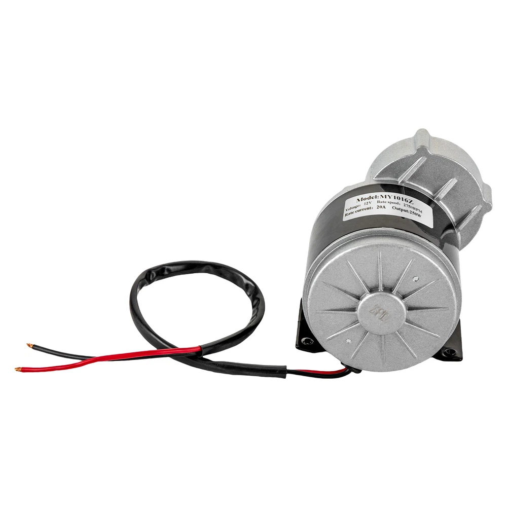 High Power 12V 250W Gear Reduction DC Motor For E-Bike Scooter ATV Description~ Description Our 12V gear reduction electric motor can help you achieve high-efficiency deceleration for your e-bike. It comes with a sturdy iron casing and a 250W high-efficiency copper wire motor with the advantages of fast heat dissipation, long service life, and sturdiness. It adopts gear transmission to reduce the speed of the high-speed motor to realize the smooth starting and low-speed riding of the e-bike, which can bring users a more convenient and comfortable riding experience. Specifications Model: MY1016Z Material: Iron, Pure Copper Color: Black, Silver Style: Modern Shape: Round Assembly Required: No Voltage: 12V Rate Speed: 2750RPM Rate Current: 20A Output: 250W Reduction Ratio: About 9:1 Motor Load Capacity: About 100kg/220lbs Gross Weight: 2.8kg/6.2lbs Gear Diameter: 95mm/3.74inch Mounting Foot Hole Spacing: 41mm/1.61inch Product Size: 95*75*128mm/3.74*2.95*5.04inch Package Size: 15*15*18cm/5.9*5.9*7.09in Key Features High-quality Material: The product is made of iron, with high hardness, high-temperature resistance, and corrosion resistance, ensuring a long service life. Excellent Performance : The 250W pure copper brushed motor has a 2750rpm speed and high torque to effectively decelerate and withstand high loads. Thoughtful Design: The gear DC motor can be changed to rotate clockwise or counterclockwise by reversing the motor's power cord to increase flexibility and extend the life of the motor. Large Load Capacity: Compared to high-speed motors, this gear motor produces greater low-end torque and can support a heavy load of up to 220 lbs, providing a more powerful operation. Smooth Operation: The pure copper brushed motor with low noise and a sturdy base makes the product operate more smoothly and quietly. Easy to Operate & Move: The compact(3.74*2.95*5.04inch), lightweight design makes it easy to operate and move everywhere. Assembly in a Breeze: A simple structure and pre-drilled holes allow you to complete the installation in a short time. Guaranteed Customer Service: Our friendly customer service team would be happy to solve your issues with our product. If you have any issues, feel free to contact us. Details Smooth Edges: The smooth and burr-free edges enhance the beauty of the product and better care for your skin when installing and cleaning it. Long Power Cable: The long power cable adds convenience and extraordinary mobility when using and installing this motor. Application It's suitable for motorized bicycles, mopeds, bikes, pocket bikes, electric dirt bikes, scooters, e-bikes, electric vehicles, electric vehicle modifications, and several small mechanical equipment. Package Included 1* Gear Reduction Electric Motor Notes Please note that if you need to adjust the speed, you need to use it with a controller (not included). Please note that this product does not contain a cooling fan, please do not use in a small confined space. Please allow the slight color difference caused by the shooting light and 1-3cm error due to manual measurement, and make sure you do not mind before you order. tu1 Payment Delivery details Terms of sales About us Contact us Payment We accept ebay payment 。 Fees such as import duties, taxes are not included in the item price or shipping costs. These charges are the buyer's responsibility. Delivery details Shipping: 2-9 working days to: USA Terms of sales We maintain high standards of excellence and strive for hundred percent customer satisfaction. Feedback is very important to us. We hope that you contact us immediately before you give neutral or negative feedback, so that we can address your concerns. It is impossible to address issues if we do not know about them! About us Your satis faction is our ultimate goal. We work hard to earn your trust and future business. Our certified technicians have tested each item before shipping. The unit comes with 1 year limited warranty on all manufacturing defects. a) If you receive a defective item, you may return it or ask for a discount. Please contact us within 14 days after you receive the package. b) What you returned must be intact and in its original packaging as re? u. Customer is responsible for shipping costs of the returned item. c) We will cover the cost of shipping back t with the shipping rate indicated in the registration page. We will send you a new unit or refund the full payment you paid. Thank you. Contact us Business Hour Business Hour: Monday To Friday: 8:30 AM to 5:00 PM (Beijing China time) Due to time zones, our reply to your questions may not be immediately. But within above working time, we will reply your email within 24 hours. If it's non-workdays, please kindly be patient and wait till Monday. Please contact us with ebay message. Please feel free to contact us if you have any questions. Monday To Friday: 8:30 AM to 5:00 PM (Beijing China time) Due to time zones, our reply to your questions may not be immediately. But within above working time, we will reply your email within 24 hours. If it's non-workdays, please kindly be patient and wait till Monday. Please contact us with ebay message. Please feel free to contact us if you have any questions. shipping notice Can not ship to Puerto Rico,Alaska/Hawaii 2.Feature Fast shipping Brand Unbranded MPN N/A Current Type DC