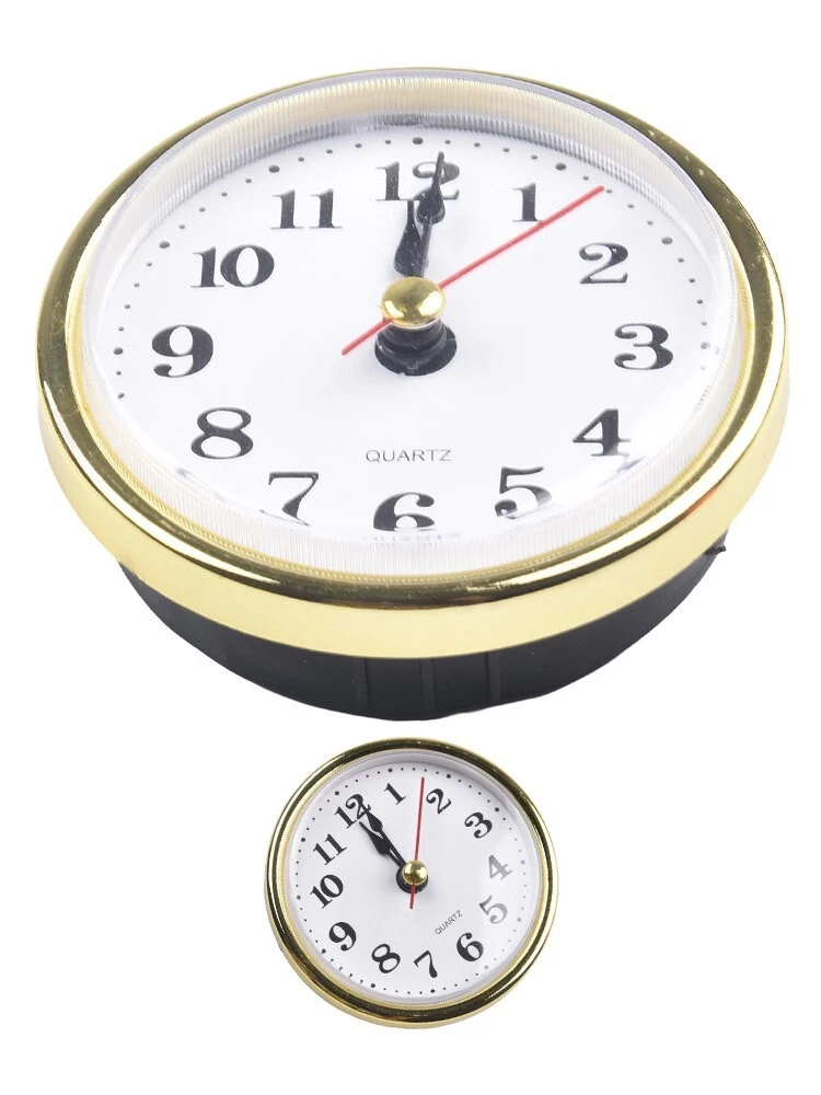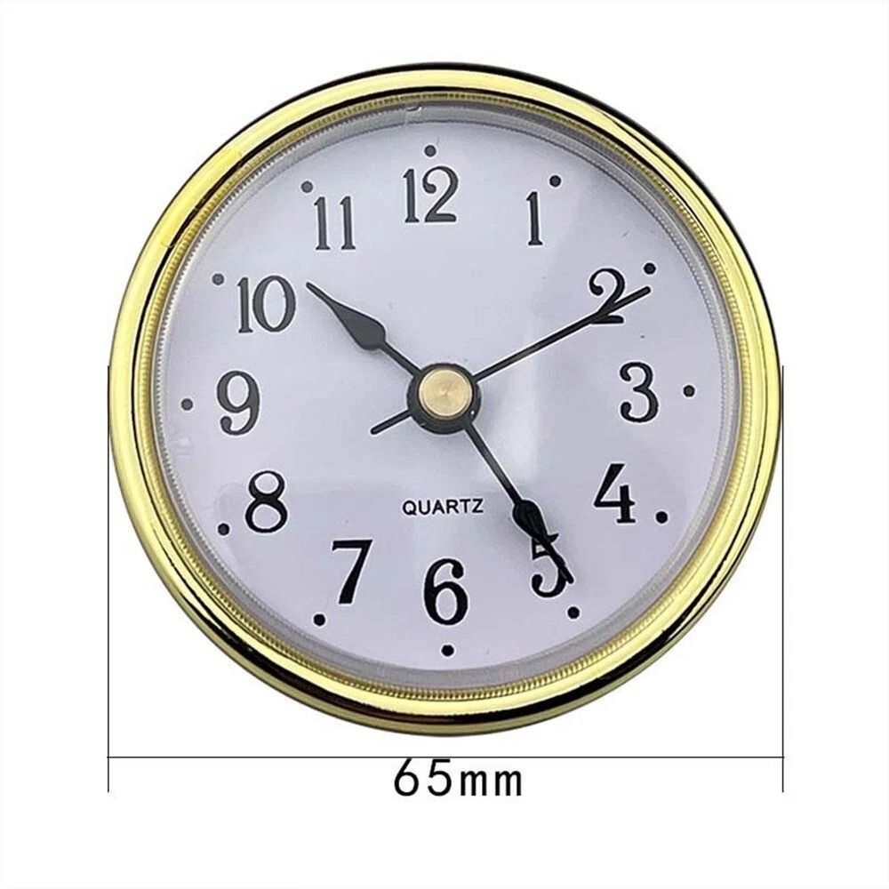 High Precision 65MM Quartz Clock Movement Replacement with Gold Numbers DESCRIPTION Features: *65MM Quartz Clock Inserts Movement Replacement: This clock insert has a diameter of 65mm and comes with a rubber ring to securely fix it onto a clock base. *Gold Silvery Arabic Numbers on White Dial: The white dial features Arabic numbers, transparent lens, and a gold border. *Precise and High-Quality Clock Movement: The clock movement ensures accurate timekeeping and is of superior quality. *Versatile Usage: It can be used for DIY clock projects or for repairing or replacing damaged clocks. *Suitable for Quartz Clocks: This clock insert is compatible with quartz clocks and serves as a perfect replacement part. Specifications: * Part Name:Quartz Clock Inserts *Material:Plastic+metal *Size:65mm diameter Back Cover Diame ter: 55mm Hour height 20mm Installation depth: 14mm *Color:Gold *Battery: 1*AAA battery not included Package Content: 1 * Quartz Clock Inserts Note: 1. The real color of the item may be slightly different from the pictures shown on website caused by many factors such as brightness of your monitor and light brightness. 2. Please allow slight manual measurement deviation for the data. POLICES Shipping Payment WARRANTY We only ship to confirmed ebay Order addresses. Please comfirm that your Order address is in line with your shipping address. Please kindly note that the c ombined shipping is not provided because the shipping fee is calculated by weight. Also, the each additional item means exactly the the same color and size. It takes about 7 -15 working days to US; about 10-30 working days to other countries. Transit time may be a little delayed because of the bad weather and customs inspection . If you do not receive your item within 30 working days since payment finished, please contact us immediately for further assistance. Payment must be completed within 5 days. If you have any problems about payment, please contact us via ebay message. We strive for 100% customer satisfaction! Positive Feedback is very important to us. If you have any questions, p lease feel free to contact us via "Ask seller a question" . We will reply your email within 24 working hours.