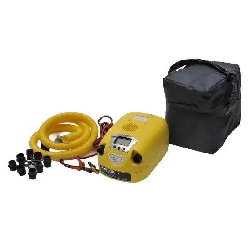 Inflatable Boat Electric Inflatable Pump High Pressure Inflatable Pump Power:240W. Voltage:DC12V. Pressure:10-80K PA. Flow rate:500L/min. Battery:No Mode:Automatic switching between high and low pressure, automatic shutdown. Weight:2.7KG. Pressure regulator: dial wheel regulator. Cable length:2.8 metres. Package:22*21*28CM