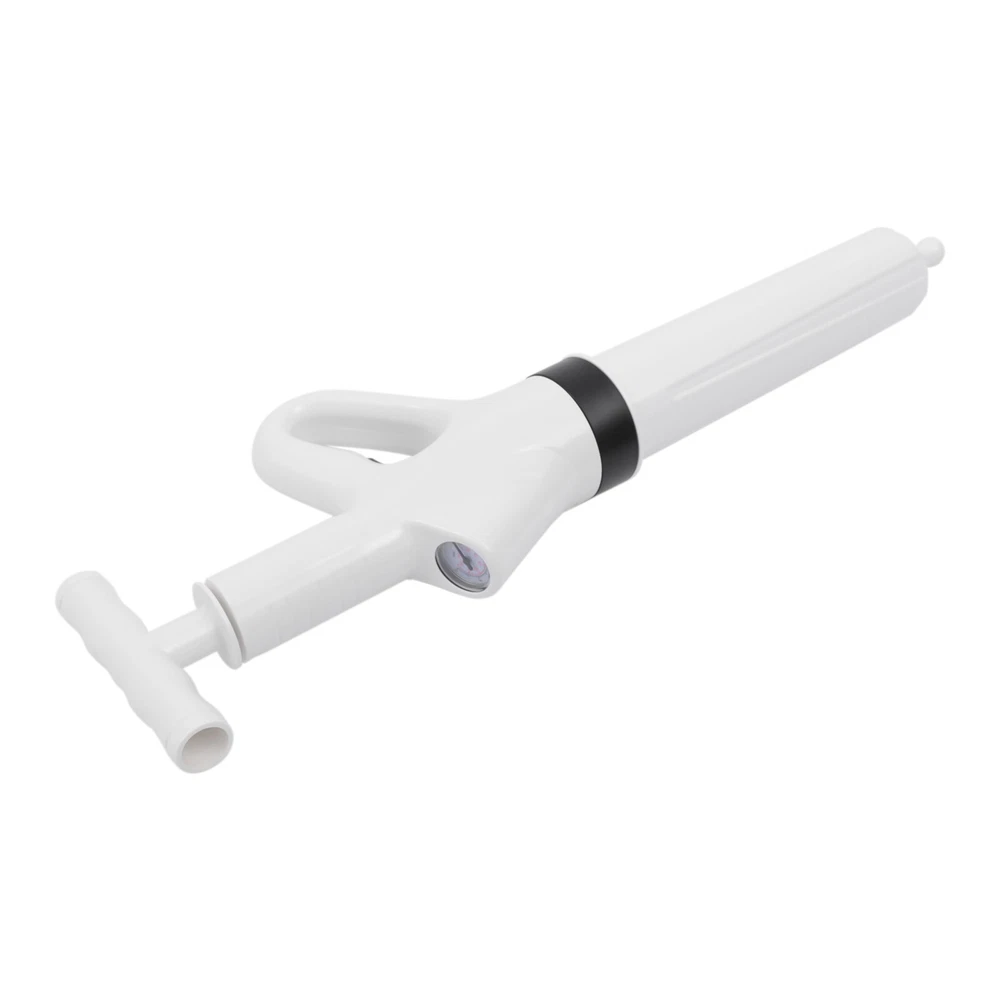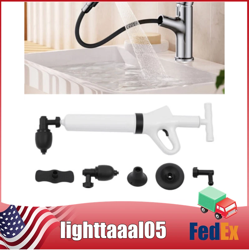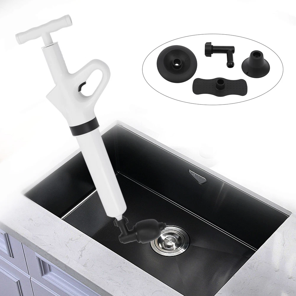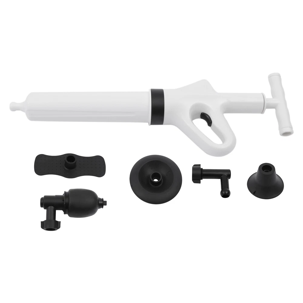 Specification Main Material: ABS Color: White Start Mode: Pneumatic Detachable Putter Size: 15.24*4.06cm/ 6*1.6in Toilet Plug Diameter: 8.89cm/3.5in Vegetable Pool Plug Size: 10.92*10.92cm/4.3*4.3in Converter Size: 8.89*8.38cm/3.5*3.3in Floor Drain Plug Size: 5.59*3.81cm/2.2*1.5in Rubber Inflatable Base Size: 5.84*15.24cm/2.3*6in Package Size: 60*19*9cm/23.62*7.48*3.54in Gross Weight: 1.05kg/2.31lbs How to Use 1. Remove the air plunger for toilet. 2. Insert inflatable base. 3. Insert the inflatable handle. 4. Start to inflate. 5. Install the toilet nozzle. 6. Pull the trigger to clean. Package Included 1X Air Plunger for Toilet 1X Converter 1X Base 3X Plunger Heads 1X English Manual High Pressure Toilet Plunger Air Drain Blaster Sink Dredge Pipe Clog Plumbing Toilet Drain Clog High Air Pressure Plunger Pipeline Dredge Remover Blaster Description You must also have a meltdown because of clogged pipes at home! This air plunger for toilet allows you to easily get rid of this embarrassing situation and no longer have to pay a huge amount of money to the repairman. You only need a short time to raise the pressure to 0.4MPA, then pull the trigger and release the high-pressure gas. It's that easy! Specification Main Material: ABS Color: White Start Mode: Pneumatic Detachable Putter Size: 15.24*4.06cm/ 6*1.6in Toilet Plug Diameter: 8.89cm/3.5in Vegetable Pool Plug Size: 10.92*10.92cm/4.3*4.3in Converter Size: 8.89*8.38cm/3.5*3.3in Floor Drain Plug Size: 5.59*3.81cm/2.2*1.5in Rubber Inflatable Base Size: 5.84*15.24cm/2.3*6in Package Size: 60*19*9cm/23.62*7.48*3.54in Gross Weight: 1.05kg/2.31lbs How to Use 1. Remove the air plunger for toilet. 2. Insert inflatable base. 3. Insert the inflatable handle. 4. Start to inflate. 5. Install the toilet nozzle. 6. Pull the trigger to clean. Package Included 1X Air Plunger for Toilet 1X Converter 1X Base 3X Plunger Heads 1 X English Manual Key Features Efficient Cleaning Power : The air plunger for toilet uses the power of high-pressure compressed air to blast clogs quickly and easily, with a plunger tip that ensures a seal for tremendous pressure. It is faster and more effective than traditional plungers. Easy to Operate : It's also great for beginners and master plumbers, allowing them to use it with less effort. It takes less time to raise the pressure to 0.4 MPA, then you pull the trigger to release the high-pressure gas. It's that simple! User-friendly Design : The reinforced handle, the threaded and the non-slip design make the air plunger for toilet easy to pump. The non-slip handle incorporates an ergonomic design for a comfortable grip. Quality Material : It is made of ABS plastic handle and natural rubber sealing head, reusable without asking for help from a plumber and easy to clean. The thick wall of the barrel is anti-cracking , further extending its service life. Fully Equipped : It has 3 replaceable plunger heads for unclogging all kinds of pipes, toilets, floor drains, bathrooms, sinks, washbasins, vegetable sinks, drains, etc. Therefore, it can meet almost most of your unclogging needs. Easy to Store : The ring trigger on the plunger can also be used as a hanging buckle, which can be hung on the wall after use to prevent the plunger from lying on wet surfaces. Anti-splash : It has a built-in expansion plug and is sealed, which allows it to expand before unclogging, seal the pipe opening and prevent wastewater backflow and splash. Energy-saving and Environmental Protection : It chooses the pneumatic method instead of electric drive, so it is very energy-saving. Besides, it makes you no longer need to use harmful chemicals, so it frees you from the danger of corroding pipes or endangering your family from now on. Details Air Pressure Meter : The air pressure meter is designed upward, making it easier to observe when you use it. It can accurately control the pneumatic activity and operating force. You can adjust the pressure according to different dredging requirements to avoid spillage and damage. Removable Putter: Connecting the putter can easily fill to 6BRA pressure, so you can get rid of the difficulties of one-handed inflation from now on. Toilet Plug : It is a plug specially designed for the toilet. The elbow design facilitates a tight fit and will not damage the glaze of the toilet. Inflatable Base : The inflatable base on the top with a non-slip design is easy for you to step on. Therefore, it is more convenient for you to inflate. Application It is suitable for all occasions, such as toilets, squats, kitchens, swimming pools, and wash basins. It can deal with various blockages caused by various garbage such as hair, cloth, tea leaves, leaves, grease, and oil. Notes 1. Unclogging toilets, kitchen sinks, floor drains, bathtubs require the pointer of the barometer to reach 4-5. Please use the appropriate plunger head to clean up, and try to insert the rubber plunger head tightly into the pipe. Do not leave a gap, otherwise the water may splash out with the air. 2. When unclogging the toilet, please pay attention to the fit with the toilet surface. Just tilt 45 degrees when using. It is suitable for siphon toilets, not for direct flush toilets and squatting toilets. 3. Do not point the air release button at the mouth, nose, ears and eyes. 4. Use it with parents when underage. 5. If the pipe is in a semi-clogged state, it is recommended to put some toilet paper and debris to make the pipe nearly fully clogged so that the product can be used more effectively. 6. Using more water will not be easy to splash. When using this product for the first time, it is recommended to use other items to cover up so as not to splash themselves. 7. Try not to use more than 10 times in a row so as not to damage the machine by high temperature. Let it dry for more than 30 minutes before use. 8. Please allow the slight color difference caused by the shooting light and 1-3cm error due to manual measurement, and make sure you do not mind before ordering. Paymen