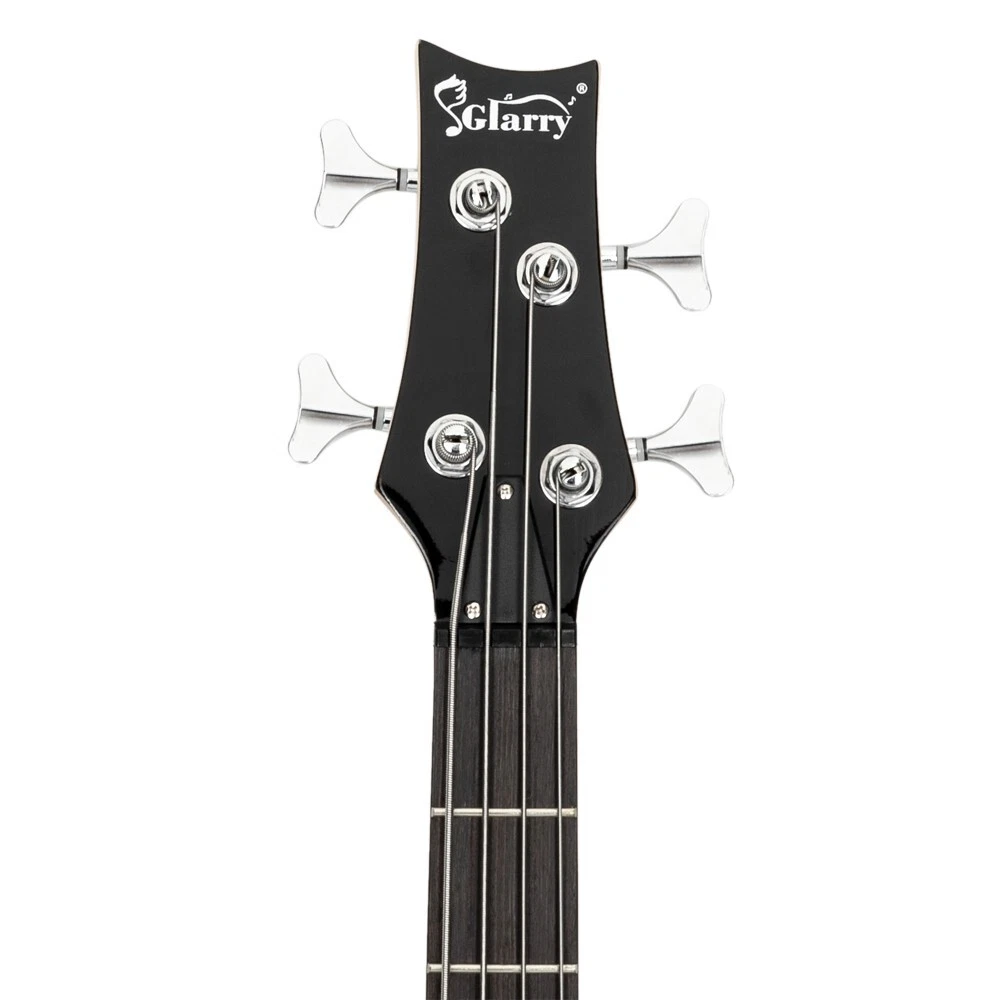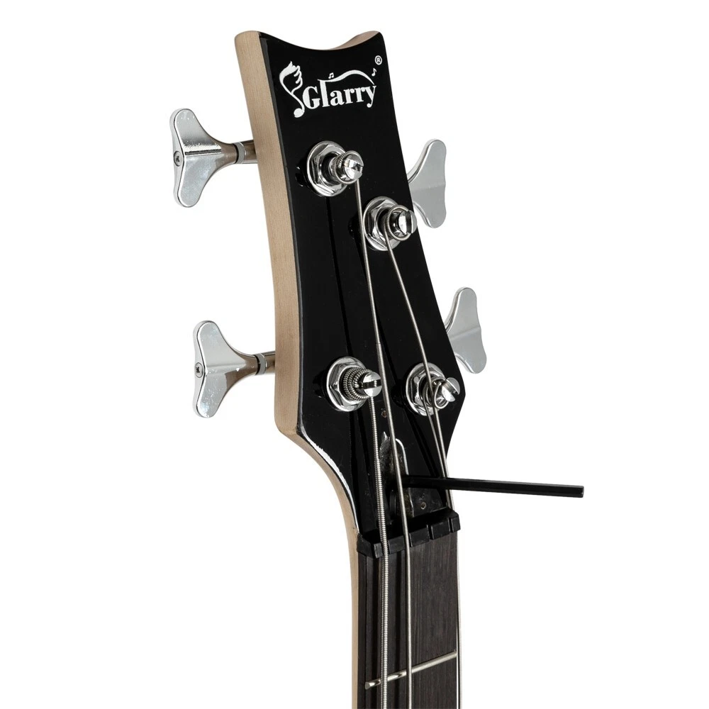 High Quality Glarry GIB Electric Bass Guitar Set Black with Bag Strap Cable Kit