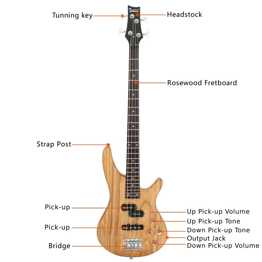 Body Material: Basswood Set Includes: 1 x Bass 1 x Bass Bag 1 x Guitar Strap 1 x Amp Wire, 1 x Wrench Tool, 1 x Plectrum Neck: Maple Model: GIB Electric Bass Guitar Pickups: Split Single-Coil Pickup; Single-Coil Pickup Hardware: Fixed(Chrome) Jack: 1/4" Model Year: 2022 Fingerboard: Rosewood Guitar: (44.1 x 12.8 x 1.65)" / (112 x 32.5 x 4.2)cm(L x W x H) Performance Level: Professional Handedness: Right-Handed Guitar Weight: 5.95lb /2.7kg Style: Bass Guitar Size: 4/4 Fretboard Material: Rosewood String Configuration: 4 String UPC: Does not apply Neck Material: Maple Number of Frets: 24 Control: Two Volume Controls; Two Tone Controls gtin13: Does not apply Type: Electric Bass Guitar Body Colour: Burlywood Brand: Glarry