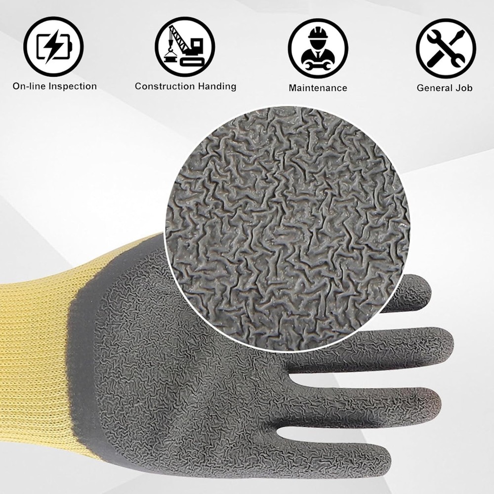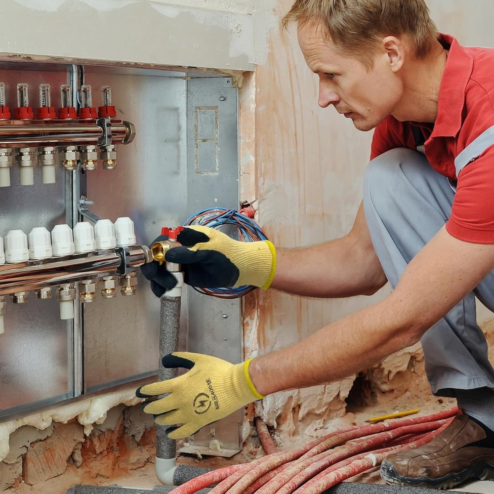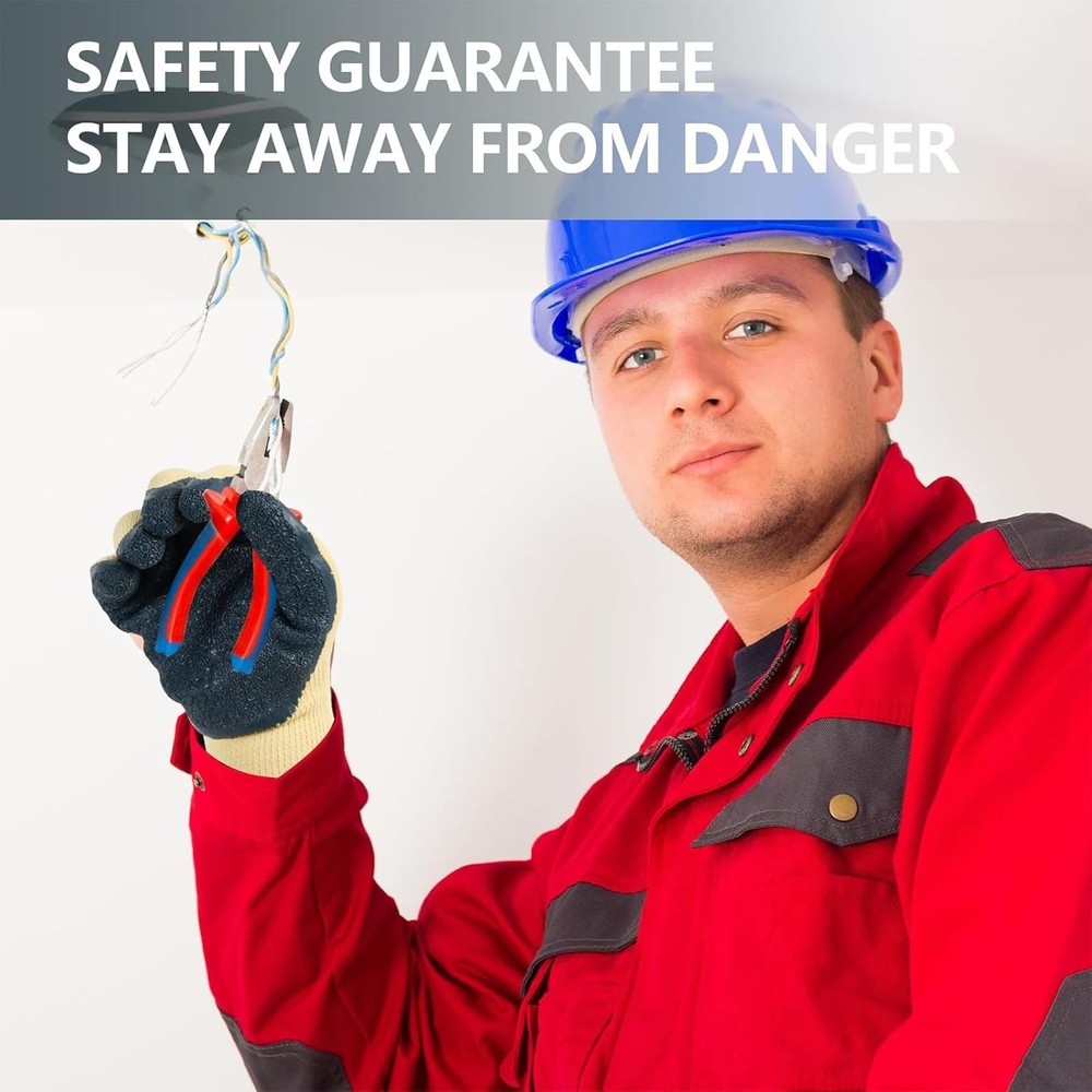 GOOD INSULATION: The work glove palm part is insulated, and suitable for use on electrical equipment up to 400V as an auxiliary security tool. RUBBER PALM: The gloves palm is made of rubber material, which has good insulation and flame retardancy, making them safe and reliable. NON SLIP TEXTURE: Wrinkles and non slip design on the palm, which increases grip strength, ensures flexible operation, and prevents work errors. NYLON FABRIC: The electrician gloves are made of nylon fabric, which is wear resistant and aging resistant, and has a long service life. APPLICABLE SCENE: This glove is suitable for installation and maintenance projects, such as instrument, home appliance, mechanical equipment, automobile, etc. Insulation Performance: The palm part of the work gloves is insulated, making them ideal for use as an additional safety measure when working with electrical equipment under 400V. Rubber Palm: The gloves have rubber palms that offer strong insulating and flame-retardant properties, providing safety and reliability during use. Anti-Slip Grip: The textured palms ensure a firm grip with anti-slip design, helping you handle tasks with confidence and prevent mistakes. Durable Nylon Fabric: Made from nylon fabric, the electrician's gloves are tough, resistant to wear and aging, and have a long-lasting lifespan. Versatile Use: These gloves are perfect for a range of home and professional tasks, such as handling instruments, appliances, mechanical equipment, automotive work, and other installation and maintenance projects.