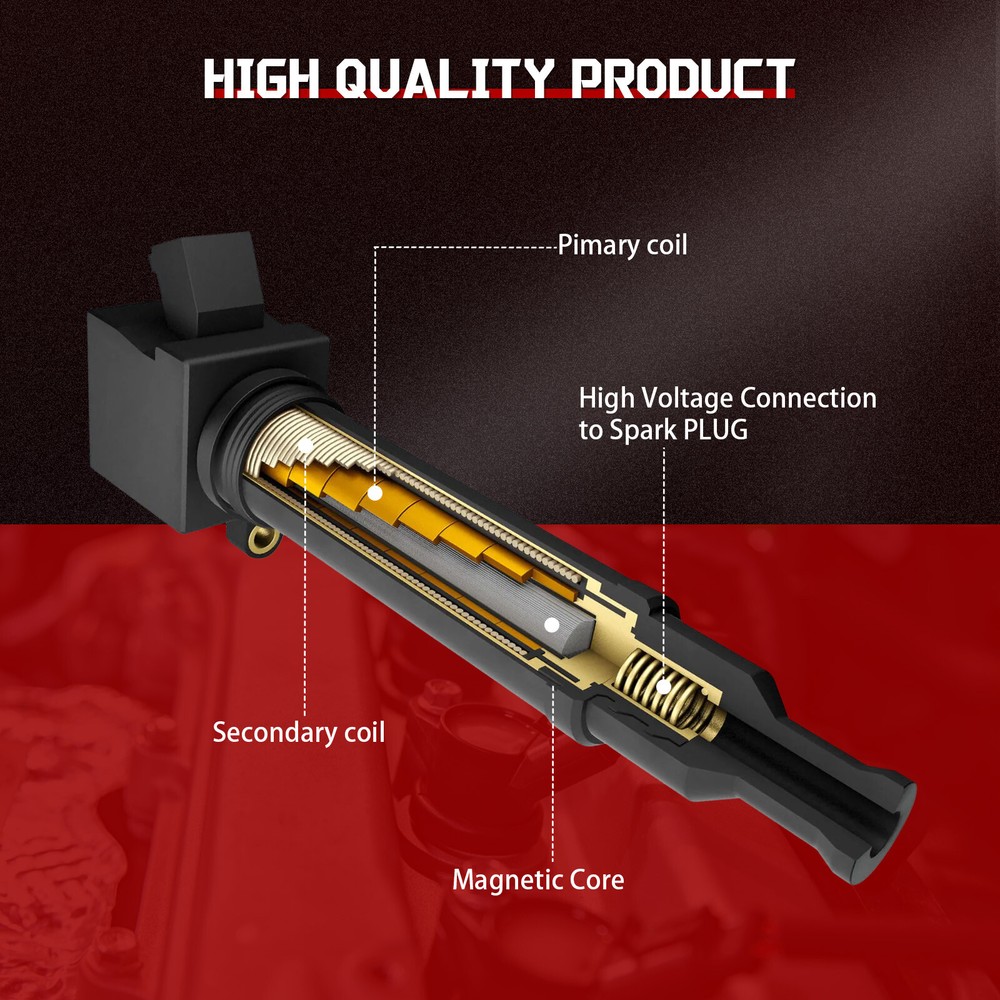 4Pcs Ignition Coils & Spark Plugs Compatible with Dodge Journey Jeep Compass 2L 2.4L UF557