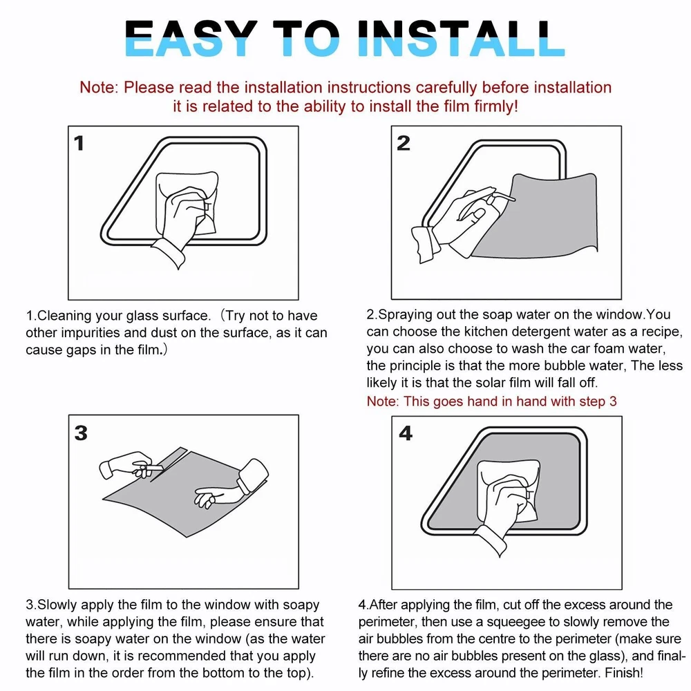 This window film is a game-changer! The easy adhesive backing makes installation a breeze, and the 5%-20% VLT gives just the right balance of privacy and visibility. It cuts glare and blocks harmful UV rays, making car rides or office spaces much more comfortable. The mirror black finish looks sleek while keeping interiors cooler. Perfect for side windows—highly recommend for both style and function!