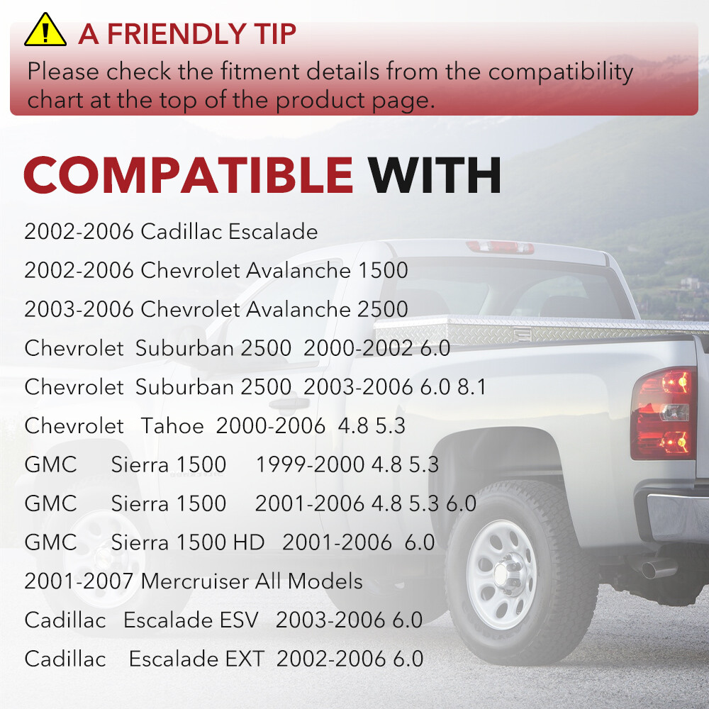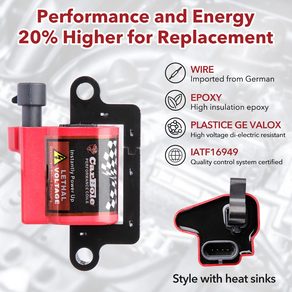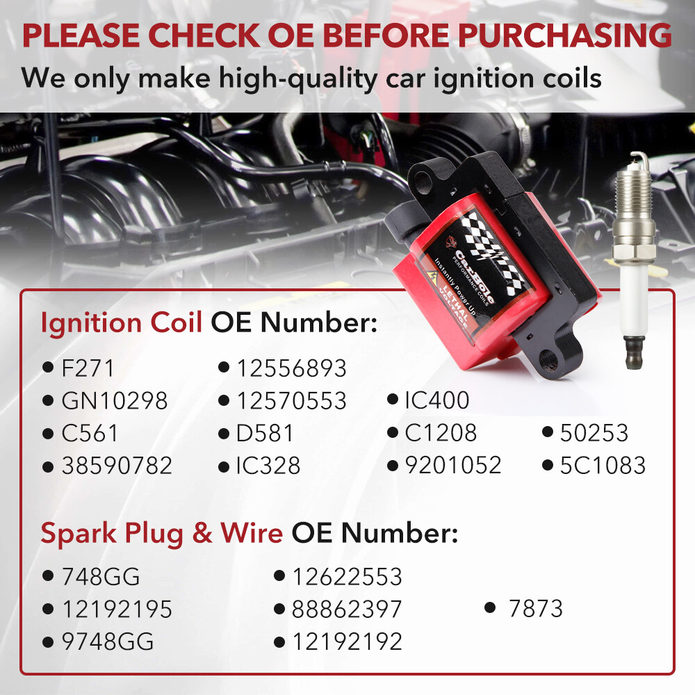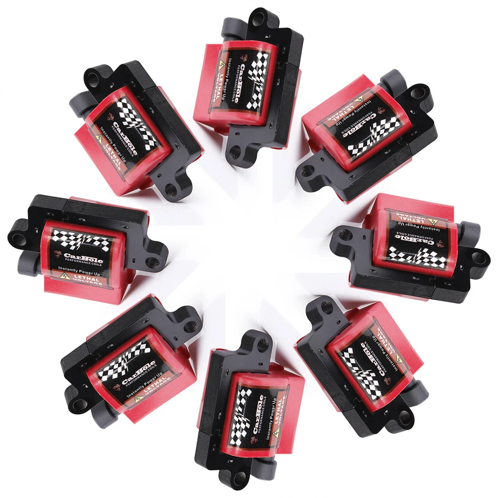 Power Up Your Vehicle With CarBole ® Coils CarBole is one of the most experienced manufacturers in performance fuel and ignition systems around the world, proving itself on the racetracks and drag strips of the world – and on the street. With an ever-expanding line of coils and all the spark plug wires, tune-up kits, and fuel injectors hot rodders have trusted and relied on for years, CarBole is constantly developing innovative new products designed to push power, speed, and performance to match advancements in automotive technology. As always, CarBole offers a comprehensive selection of performance products, including coils, digital fuel injection systems, fuel injectors, distributors, caps, rotors, ignition wires, spark plugs. Automotiveparts_aa Best choice of motor parts 8X UF271 Ignition Coil & Spark Plug & Wire Pack for Chevy GMC 4.8/5.3/6.0/8.1L Power Up Your Vehicle With CarBole ® Coils CarBole is one of the most experienced manufacturers in performance fuel and ignition systems around the world, proving itself on the racetracks and drag strips of the world – and on the street. With an ever-expanding line of coils and all the spark plug wires, tune-up kits, and fuel injectors hot rodders have trusted and relied on for years, CarBole is constantly developing innovative new products designed to push power, speed, and performance to match advancements in automotive technology. As always, CarBole offers a comprehensive selection of performance products, including coils, digital fuel injection systems, fuel injectors, distributors, caps, rotors, ignition wires, spark plugs. Description : 15% Higher Performance than Other Coils. TS16949 Certified Manufacture 1. Wire--Imported from German Elektrisoal,top quality in the world. 2. Epoxy-- Imported from German Elektrisoal,top quality high insulation epoxy. 3. Plastice GE Valox resin, professional high voltage di-electric resistant resin. 4. Manufactured in facility TS16949 quality control system certified. Feature: Brand new 100% Factory tested Superior quality parts Ready to use, Direct Replacement Built to strict quality control standards Coil Wire Included: Yes Ignition Lead Wire Separators Holders Included: Yes Wire Separators Color: Black Coil Color: Red Wire Color: Red Wire Length: 11.5 inch Coils Shape: Square Type Connector: 4 pins Connection gender: Female Terminal gender: Male Terminal type: Blade Voltage: 12V Secondary Resistance 3.7K ohms Inductance 4.2 mH Spark duration (mS) 1100 uS Peak Current 140 mA Maximum Voltage 42,000 Volt Ignition Coils part number: E226, D581, GN10298, IC328, IC400, 12556893, 12558693, 12570553, 3859078, 38590782, 392889925, D581, UF271 , 5C1083, GN10298, D581, 6737000 Spark Plug Wire Set part number: 12192195 9748GG 748GG 12622553 88862397 12192192 7873 Spark Plugs part number: 19299585 41-962 Fitting for the following vehicles: Fits models with square Mitsubishi style coils Does not fit models with round Delphi style coil Fits the GM, Hummer & Isuzu 8 cylinder engines as listed: V8 4.8L, 5.3L, 6.0L, 8.1L 2003-2005 Chevrolet Express 2500 4.8L V8 2004 Chevrolet Express 3500 4.8L V8 2003-2005 GMC Savana 2500 4.8L V8 2003-2005 GMC Savana 3500 4.8L V8 1999-2006 GMC Sierra 1500 4.8L V8 1999-2006 Chevrolet Silverado 1500 4.8L V8 2007 Chevrolet Silverado 1500 Classic 4.8L V8 2000-2006 Chevrolet Tahoe 4.8L V8 2000-2006 GMC Yukon 4.8L V8 2002-2006 Chevrolet Avalanche 1500 5.3L V8 2003-2004 GMC Envoy XL 5.3L V8 2004 GMC Envoy XUV 5.3L V8 2002-2005 Cadillac Escalade 5.3L V8 2003-2006 Chevrolet Express 1500 5.3L V8 2003-2005 Chevrolet Express 2500 5.3L V8 2006 Chevrolet Monte Carlo 5.3L V8 2003-2005 GMC Savana 1500 5.3L V8 2003-2005 GMC Savana 2500 5.3L V8 1999-2006 GMC Sierra 1500 5.3L V8 2000 GMC Sierra 2500 5.3L V8 1999-2006 Chevrolet Silverado 1500 5.3L V8 2007 Chevrolet Silverado 1500 Classic 5.3L V8 1999-2000 Chevrolet Silverado 2500 5.3L V8 2003-2004 Chevrolet SSR 5.3L V8 2000-2006 Chevrolet Suburban 1500 5.3L V8 2000-2006 Chevrolet Tahoe 5.3L V8 2003-2004 Chevrolet Trailblazer EXT 5.3L V8 2000-2006 GMC Yukon 5.3L V8 2000-2006 GMC Yukon XL 1500 5.3L V8 2002-2006 Cadillac Escalade 6.0L V8 2003-2006 Cadillac Escalade ESV 6.0L V8 2002-2006 Cadillac Escalade EXT 6.0L V8 2003-2005 Chevrolet Express 2500 6.0L V8 2003-2004 Chevrolet Express 3500 6.0L V8 2003-2007 Hummer H2 6.0L V8 2005 Isuzu NPR 6.0L V8 2003 GMC Savana 2500 6.0L V8 2003-2005 GMC Savana 3500 6.0L V8 2001-2006 GMC Sierra 1500 6.0L V8 2007 GMC Sierra 1500 Classic 6.0L V8 2001-2005 GMC Sierra 1500 HD 6.0L V8 1999-2004 GMC Sierra 2500 6.0L V8 2001-2007 GMC Sierra 2500 HD 6.0L V8 2002-2006 GMC Sierra 3500 6.0L V8 2007 GMC Sierra 3500 HD 6.0L V8 2003-2006 Chevrolet Silverado 1500 6.0L V8 2007 Chevrolet Silverado 1500 Classic 6.0L V8 2001-2005 Chevrolet Silverado 1500 HD 6.0L V8 2007 Chevrolet Silverado 1500 HD Classic 6.0L V8 1999-2004 Chevrolet Silverado 2500 6.0L V8 2001-2007 Chevrolet Silverado 2500 HD 6.0L V8 2002-2006 Chevrolet Silverado 3500 6.0L V8 2007 Chevrolet Silverado 3500 Classic 6.0L V8 2007 Chevrolet Silverado 3500 HD 6.0L V8 2002 Chevrolet Suburban 2500 6.0L V8 2001-2006 GMC Yukon 6.0L V8 2002-2006 GMC Yukon XL 1500 6.0L V8 2000-2004 GMC Yukon XL 2500 6.0L V8 2003-2008 Chevrolet C4500 Kodiak 6.6L V8 2003-2006 GMC C4500 Topkick 6.6L V8 2005-2008 GMC C5500 Topkick 6.6L V8 2007 GMC Sierra 3500 Classic 6.6L V8 2003 Chevrolet Avalanche 2500 8.1L V8 2003-2005 Chevrolet C4500 Kodiak 8.1L V8 2003 GMC C4500 Topkick 8.1L V8 2006-2009 Chevrolet C5500 Kodiak 8.1L V8 2003-2005 GMC C5500 Topkick 8.1L V8 2001 Chevrolet C7500 Kodiak 8.1L V8 2003 Chevrolet Silverado 2500 HD 8.1L V8 2003-2006 Chevrolet Silverado 3500 8.1L V8 2005 Workhorse W22 8.1L V8 Compatibility is just for reference. Please compare with your original one before purchasing Package included: 8x Ignition Coils 8x Spark Plug Wire Set with Heat Shields 8x Spark Plugs 6pcs Spark Plug Wire Separators Notes: (1)Please make sure the part numbers matches the part you are replacing. Please