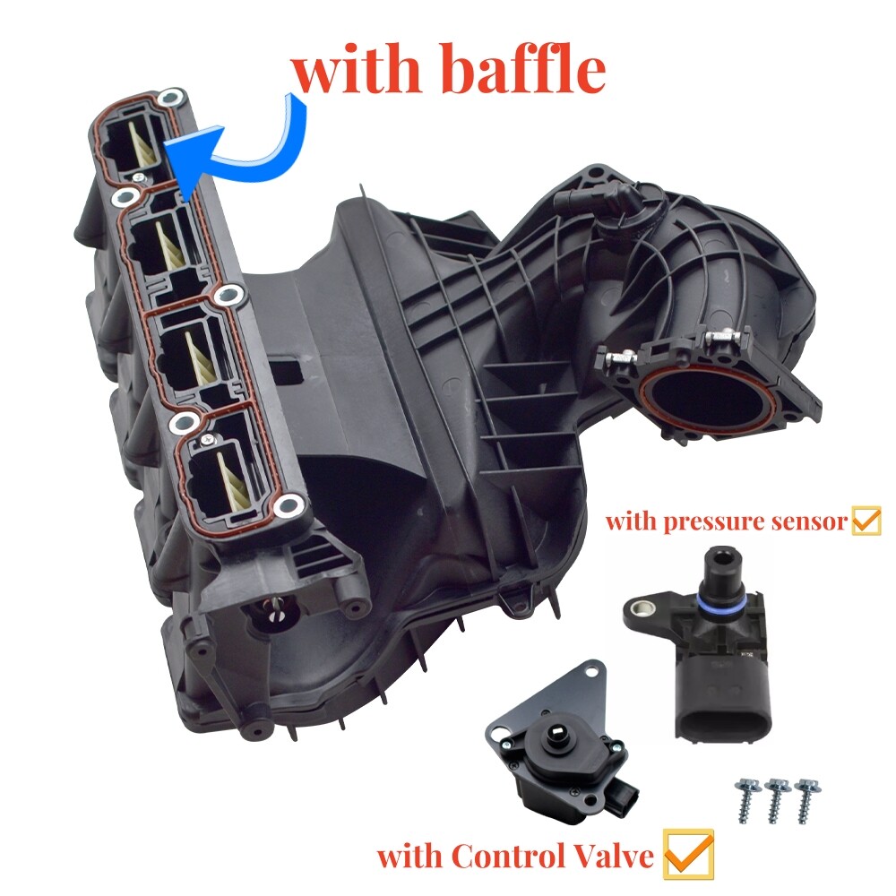 Intake Manifold w/ Runner Control Valve & Sensor for Jeep Patriot Compass 2.4L Replaces Part Numbers: 4884495AJ 4884495AK 4884495AH 911-902 4884549AD Fitment: 2008-2010 Chrysler Sebring L4 2.4L Petrol Convertible 2007-2010 Chrysler Sebring L4 2.4L Petrol Sedan 2008-2009 Dodge Avenger L4 2.4L Petrol Sedan 2007-2012 Dodge Caliber L4 2.4L Petrol Hatchback 2008-2010 Dodge Caliber L4 2.0L Petrol Hatchback 2008-2009 Dodge Caliber L4 1.8L Petrol Hatchback 2009-2011 Dodge Journey L4 2.4L Petrol Sport Utility 2007-2017 Jeep Compass L4 2.4L Petrol Sport Utility 2007-2011 Jeep Compass L4 2.0L Petrol Sport Utility 2007-2017 Jeep Patriot L4 2.4L Petrol Sport Utility 2007-2010 Jeep Patriot L4 2.0L Petrol Sport Utility NOTE :Please contact us if you are not sure about your car vehicle This intake manifold with baffle, not fit 4593915AB. Package Included: 1* Intake Manifold 1* Runner Control Valve 1* Pressure Sensor