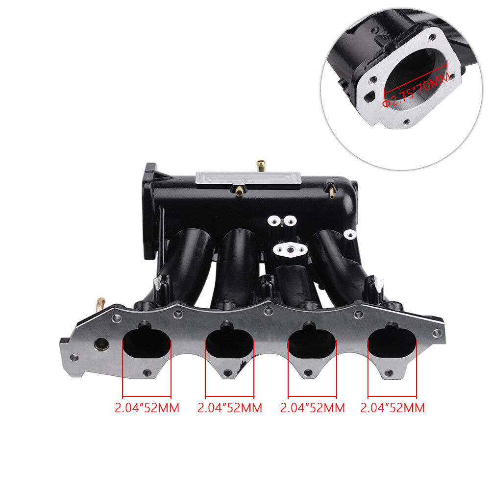 Description: 100% Brand New and Never Used or Installed Direct-fit replacement for engine and throttle body Compatible with OEM throttle cable. Increased airflow,enhanced Venturi effect Improved both mid-range and top-end power gains. Runners are similar in length to the OEM RBC's but with larger bores Special tapered and tapered plenum design that preserve mid-range power but accelerate airflow to allow for significant top-end power gains Sealed ball bearings for smooth operation.Retains IACV circuit Specifications: Type: Intake Manifold Material: Natural Aluminum Condition: 100% brand new Throttle Body Opening: 70mm [INSTALLATION STEPS] 1. Remove parts around the intake manifold for easyreplacement 2. Loosen bolts and hose on intake manifold to slide manifold out 3. Loosen bolts and hoses below manifold 4. Remove manifold base. 5. Install new intake manifold on 6. Bolt new throttle body on intake manifold. Compatibility: For Acura Integra 1992 - 2001 (Type R) For Honda Civic 1999 - 2000 (Si) For Honda Civic del Sol 1994 - 1997 (VTEC) For Honda B16A2 B16A3 For Acura B17A1 B18C5 !!!ATTENTION: this intake manifold doesn't fit for GS-R. Packing Included: 1x Intake Manifold Kit Payment Delivery details Return Policy About us Contact us Payment We will only ship to eBay confirmed shipping addresses. It is buyer responsibility to provide correct shipping address before purchasing. Buyer is responsible for any reshipping cost due to wrong or undeliverable addresses. Delivery details Items are shipped within 1-2 business days of receiving payment verification. Domestic shipping fees are applied to the lower 48 Continental States only (AK, HI, GU, PR, VI, Base Addresses, may require additional shipping cost) Please e-mail us for a shipping quote. INTERNATIONAL shipping available through eBay's global shipping. But Buyer might pay some VAT and Duties; seller is no responsible with any VAT and Duties. Deliveries are generally done within 3-5 business days nationwide and 10-20 days worldwide. Damaged item due to shipping must reported to us within 48 hours of delivery in order to place claim with shipping company. Return Policy No returns or exchanges once item has been installed, used or modified. We will exchange the item only if is defective or if customer receive the wrong parts. Returns and/or exchanges must be done within 30 days from delivery date. All returns and/or exchanges must be in brand new/uninstalled condition. About us Always Free Shipping with your Parts orders. Lowest price on brand new, in-the-box auto parts. Business time is Monday - Saturday 8:30 am to 5:30 pm HKT except all Holidays. Contact us Always Free Shipping with your Parts orders. Lowest price on brand new, in-the-box auto parts. Business time is Monday - Saturday 8:30 am to 5:30 pm HKT except all Holidays.