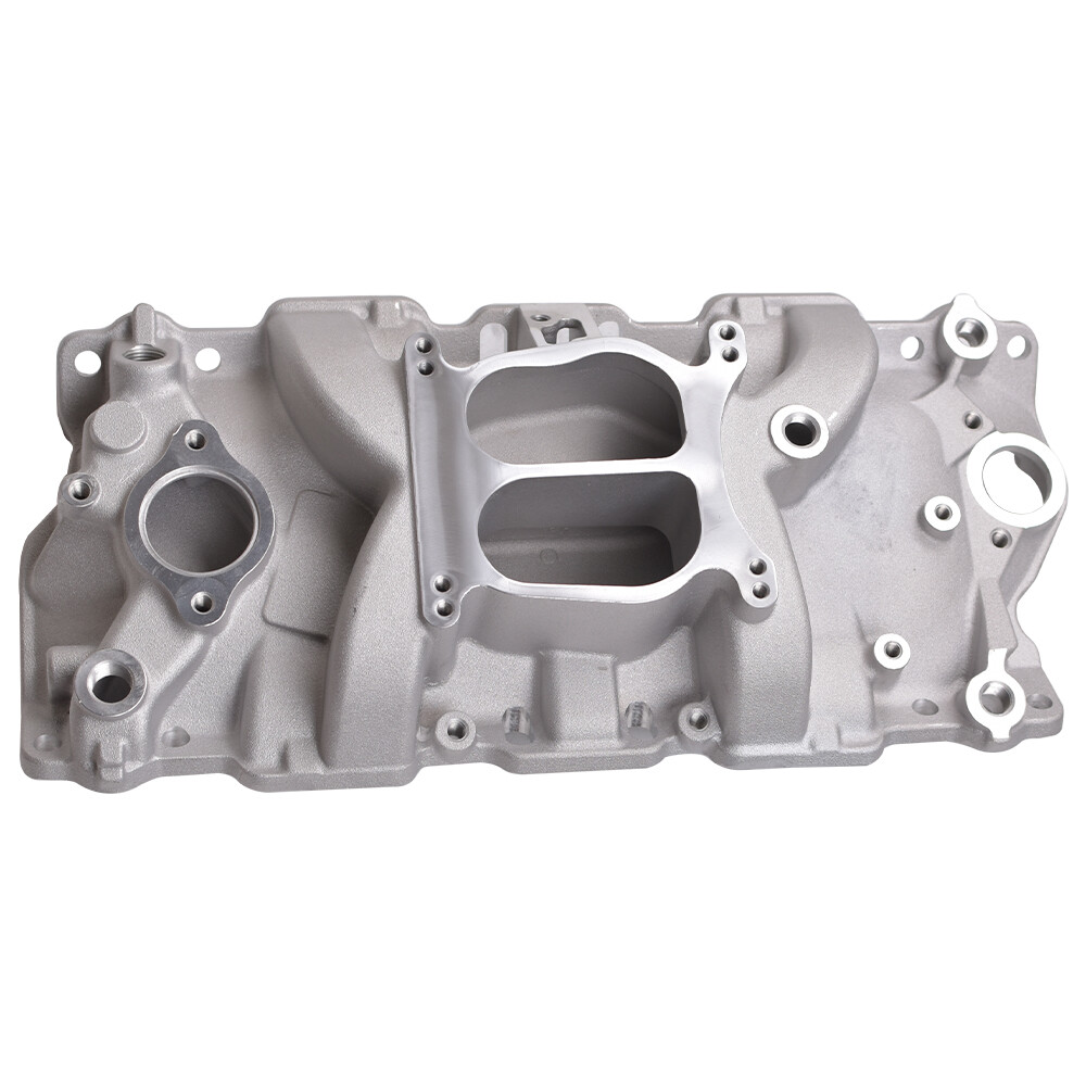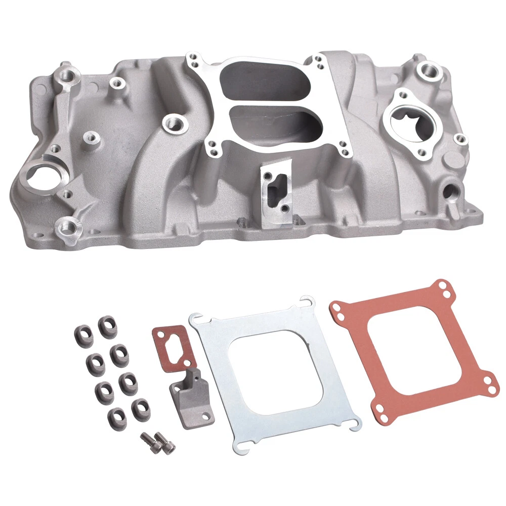 SBC Carb Dual Plane Satin Aluminum Intake Manifold for Chevy Non-Egr Engines Details: for Engine Make/Size: SBC 265 267 283 302 305 307 327 350 400 V8 Intake Stye: Dual plane RPM Range: ldle to 5500 RPM Bore: Square Bore Carburetor Mounting Style: 4bbl. Square/Spread Bore EGR Or Non EGR: Non EGR Material: Aluminum Finish: Satin Includes Gaskets. NO Port Size: 1.17"x1.90" Height: 5.31" Fitment: Make Year Engine Type Engine Family Engine Size Carburetor Mounting Cylinder Head Type Application Notes: CHEVROLET 1955-1957 V8 Chevy small block Gen I 4.3L/265 4-barrel spread bore/4-barrel square bore Stock configuration Includes head bolt adapters, choke block-off kit, and square bore carburetor adapter kit. CHEVROLET 1979-1982 V8 Chevy small block Gen I 4.4L/267 4-barrel spread bore/4-barrel square bore Stock configuration CHEVROLET 1957-1967 V8 Chevy small block Gen I 4.6L/283 4-barrel spread bore/4-barrel square bore Stock configuration CHEVROLET 1967-1969 V8 Chevy small block Gen I 4.9L/302 4-barrel spread bore/4-barrel square bore Stock configuration CHEVROLET 1976-1995 V8 Chevy small block Gen I 5.0L/305 4-barrel spread bore/4-barrel square bore Stock configuration CHEVROLET 1968-1973 V8 Chevy small block Gen I 5.0L/307 4-barrel spread bore/4-barrel square bore Stock configuration CHEVROLET 1962-1969 V8 Chevy small block Gen I 5.3L/327 4-barrel spread bore/4-barrel square bore Stock configuration CHEVROLET 1964-1967 V8 Chevy small block Gen I 5.4L/327 4-barrel spread bore/4-barrel square bore Stock configuration CHEVROLET 1967-1995 V8 Chevy small block Gen I 5.7L/350 4-barrel spread bore/4-barrel square bore Stock configuration CHEVROLET 1970-1980 V8 Chevy small block Gen I 6.6L/400 4-barrel spread bore/4-barrel square bore Stock configuration Package included: 1*Intake Manifold Mounting Hardware As shown in the picture above