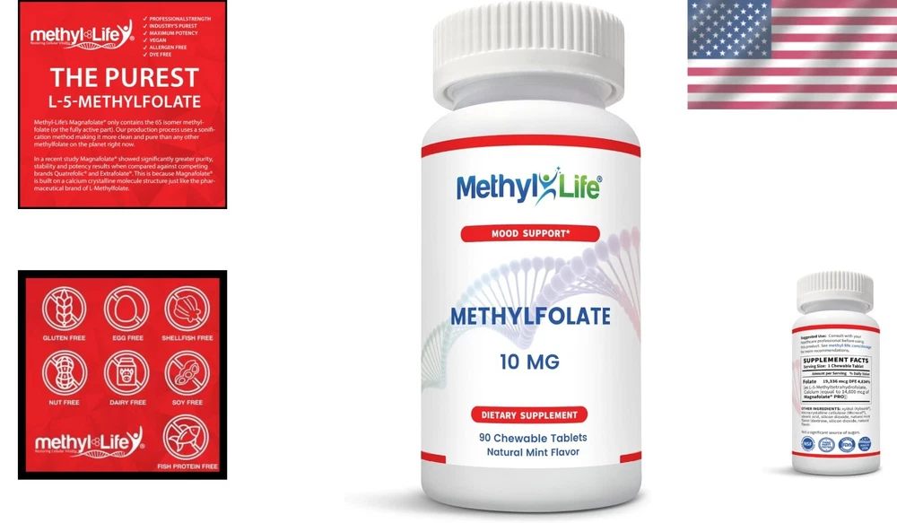 High-Purity L-Methylfolate 10mg Chewables - Mood & Energy Boost in 90 Tablets ‹ › ‹ › ‹ › ‹ › ‹ › ‹ › ‹ › ‹ › ‹ › ‹ › ‹ › High-Purity L-Methylfolate 10mg Chewables Boost Your Mood & Energy 90 Chewable Tablets The Purest Active Folate Experience the purest form of L-Methylfolate, boasting less impurities than the pharmaceutical version. Highly bioactive and immediately ready for your body’s cells to use. Therapeutic Strength Professional dosage levels ranging from 2500-15000 mcg (2.5-15 mg) for powerful mood elevation. Our highest product contains 15 mg for maximum effect. Mood & Cognitive Support Unique ability to cross the blood-brain barrier, enhancing neurotransmitter production (i.e., serotonin). Supports mood, energy, concentration, sleep, and cognitive functions. Pure & Clean Ingredients Non-GMO certified, dairy, and gluten-free chewables ensure optimal absorption. No dyes, allergens, or unnecessary fillers — just pure nutritional support. Cardiovascular & Nerve Support Helps maintain healthy homocysteine levels to support heart health and peripheral nerve function. Triggers the body’s most powerful antioxidant: glutathione, aiding cardiovascular and methylation processes. Why Choose Our L-Methylfolate? For those seeking to enhance their mood, energy levels, and overall mental clarity, look no further than our High-Purity L-Methylfolate Chewables. Tailored specifically for individuals with genetic sensitivities, dietary constraints, or those who may struggle with folic acid absorption, our supplement promises unparalleled health benefits. Each bottle contains 90 chewable tablets of 10 mg internationally patented L-Methylfolate, specially formulated for optimal effectiveness. Illuminate your day with focused energy, better mood, and cognitive support. Order now and embrace the transformative power of high-quality methylfolate! Shipping Free & Fast Shipping - We offer free shipping to most of the USA with a normal delivery time of 3-7 days. However, due to the current situation, additional delivery time (up to 3 weeks) may be required for some items. Alternative Carriers - We may use alternative carriers (e.g. USPS, FedEx, UPS, etc.) to ensure your package arrives safely and on time. Due to the use of multiple carriers, we are unable to provide a tracking number automatically. Handling Time - Orders are processed and shipped within 1-2 business days of receiving cleared payment. Shipping Restrictions - Shipping to Alaska, Hawaii, Puerto Rico, Guam, and other US territories may incur shipping charges or delivery restrictions. Please contact us before ordering, or your order can be refunded/cancelled. State Restrictions - There may be restrictions based on your state of purchase. For example, certain items may not be shipped to California due to state regulations. Contact for Tracking Updates - If you require tracking updates or have any concerns about the delivery of your order, please feel free to contact us, and we will be happy to assist you. Return 30-Day Hassle-Free Returns - We want you to be completely satisfied with your purchase. If you are not, you can return the item within 30 days of receiving it for a full refund or exchange. Easy Return Process - To start a return, simply contact us and we will provide you with a prepaid return shipping label and detailed instructions. Restocking Fee - There are no restocking fees for returns. However, the buyer is responsible for return shipping costs if the return is not due to a seller's error. Refund Processing Time - Refunds will be processed within 5 business days of receiving the returned item in its original condition. Payment We accept all major credit cards, PayPal, and Apple Pay for your convenience. Your payment information is secure and encrypted to ensure a safe and seamless transaction. Please complete your payment within 3 days of purchase to avoid any delays in shipping. Feedback Your feedback is extremely important to us. We strive to provide the best products and customer service possible. If you are satisfied with your purchase, please take a moment to leave us a positive review. If you have any concerns or issues with your order, please contact us before leaving negative feedback. We are committed to resolving any problems and ensuring your satisfaction. Contact Us If you have any questions or concerns, please feel free to reach out to our customer support team. You can contact us through the eBay messaging system. We are available Monday to Friday, 9:00 am to 5:00 pm EST, and we will do our best to respond to your inquiry within 24 hours. Thank you for supporting our small family business! UPC: Not Set Expiration Date: Not specified Unit Quantity: 90 Active Ingredients: 5-MTHF Formulation: Tablet Features: Allergen-Free,Dairy-Free,Gluten-Free,No Artificial Flavors,Non-GMO,No Dyes Main Purpose: Mood & Cognitive Support,Cardiovascular & Nerve Support Ingredients: Calcium,L-Methylfolate Department: Adult When to Take: Not Set Brand: Unbranded Type: Vitamin MPN: Not Set Number of Pills: 90 Dosage: 10 mg Country/Region of Manufacture: Not Set Flavor: Unflavored Item Weight: 1.27 oz Volume: Not specified Unit Type: oz