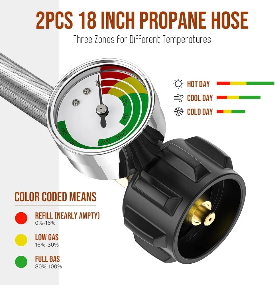 High-Quality 2-Stage Propane Regulator with Dual 18-Inch Pigtail Hoses & Gauge ‹ › ‹ › ‹ › ‹ › ‹ › ‹ › ‹ › ‹ › ‹ › High-Quality 2-Stage Propane Regulator Complete with Dual 18-Inch Pigtail Hoses & Gauge Key Features: Innovative Functionality: Effortlessly connect two propane tanks simultaneously. Automatic Switch: The regulator seamlessly transitions from the primary to the reserve tank when gas is depleted, ensuring uninterrupted service. Color-Coded Indicator: The rotary pointer lets you designate which tank is in use, with a color-changing gauge to signal when a refill is needed. Durability You Can Trust: Superior Materials: Crafted from 100% solid brass and stainless steel braided material for unmatched durability and longevity. CSA Certified: All fittings meet top safety standards, assuring you a secure connection. Specifications: Primary Cylinder Capacity: 210,000 BTU/hr Reserve Cylinder Capacity: 130,000 BTU/hr Inlet: 1/4" SAE Inverted Flare Outlet: 3/8" Female NPT Pigtail Hose: 1/4" Male Inverted Flare with QCC1 Fitting Versatile Applications: Ideal for RVs, campers, and travel trailers with dual propane tank systems. Compatible with 5-40 lb refillable propane tanks or LP gas tanks. Replace any existing automatic changeover regulator in your RV or camper systems to maintain constant gas flow. Packaging Includes: 1 x 2 Stage Auto Changeover RV Propane Regulator 2 x 18'' Stainless Braided QCC1 1/4" Inverted Male Flare RV Pigtail Propane Hoses with Gauge 1 x Roll Sealing Tape 1 x Wrench Customer Satisfaction Guarantee: Enjoy peace of mind with a 2-year satisfaction guarantee. If you are not completely satisfied with your purchase, contact us for a free replacement or refund. Our dedicated customer service team is available within 24 hours to assist with any inquiries. Shipping Free & Fast Shipping - We offer free shipping to most of the USA with a normal delivery time of 3-7 days. However, due to the current situation, additional delivery time (up to 3 weeks) may be required for some items. Alternative Carriers - We may use alternative carriers (e.g. USPS, FedEx, UPS, etc.) to ensure your package arrives safely and on time. Due to the use of multiple carriers, we are unable to provide a tracking number automatically. Handling Time - Orders are processed and shipped within 1-2 business days of receiving cleared payment. Shipping Restrictions - Shipping to Alaska, Hawaii, Puerto Rico, Guam, and other US territories may incur shipping charges or delivery restrictions. Please contact us before ordering, or your order can be refunded/cancelled. State Restrictions - There may be restrictions based on your state of purchase. For example, certain items may not be shipped to California due to state regulations. Contact for Tracking Updates - If you require tracking updates or have any concerns about the delivery of your order, please feel free to contact us, and we will be happy to assist you. Return 30-Day Hassle-Free Returns - We want you to be completely satisfied with your purchase. If you are not, you can return the item within 30 days of receiving it for a full refund or exchange. Easy Return Process - To start a return, simply contact us and we will provide you with a prepaid return shipping label and detailed instructions. Restocking Fee - There are no restocking fees for returns. However, the buyer is responsible for return shipping costs if the return is not due to a seller's error. Refund Processing Time - Refunds will be processed within 5 business days of receiving the returned item in its original condition. Payment We accept all major credit cards, PayPal, and Apple Pay for your convenience. Your payment information is secure and encrypted to ensure a safe and seamless transaction. Please complete your payment within 3 days of purchase to avoid any delays in shipping. Feedback Your feedback is extremely important to us. We strive to provide the best products and customer service possible. If you are satisfied with your purchase, please take a moment to leave us a positive review. If you have any concerns or issues with your order, please contact us before leaving negative feedback. We are committed to resolving any problems and ensuring your satisfaction. Contact Us If you have any questions or concerns, please feel free to reach out to our customer support team. You can contact us through the eBay messaging system. We are available Monday to Friday, 9:00 am to 5:00 pm EST, and we will do our best to respond to your inquiry within 24 hours. Thank you for supporting our small family business! Manufacturer Part Number: RV Propane Regulator and Hose UPC: Not Set MPN: Not Set Unit Quantity: 2 Brand: Unbranded Part Type: Accessories Country/Region of Manufacture: Not Set Warranty: 2 Year Unit Type: lb